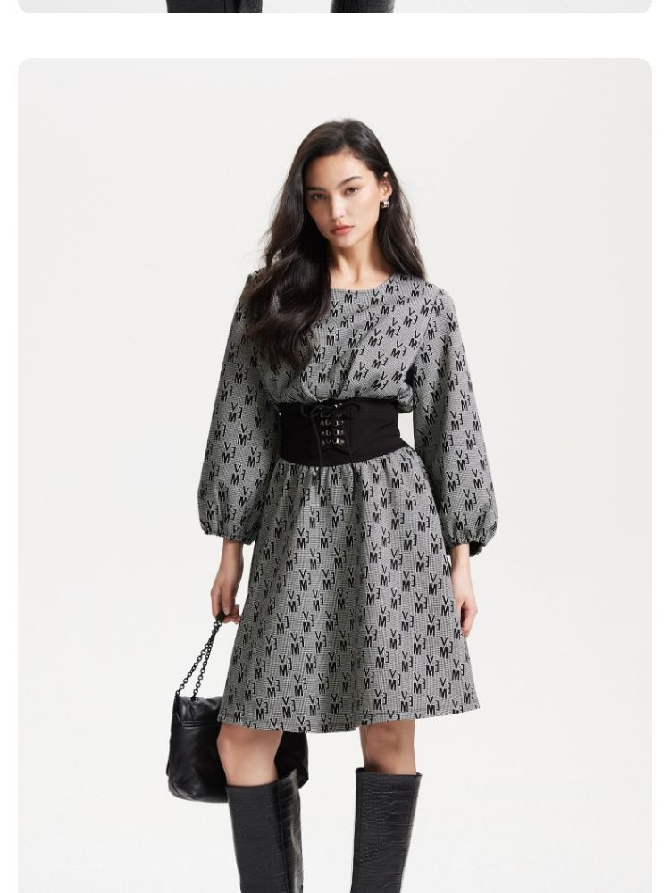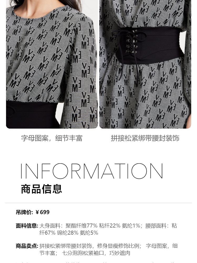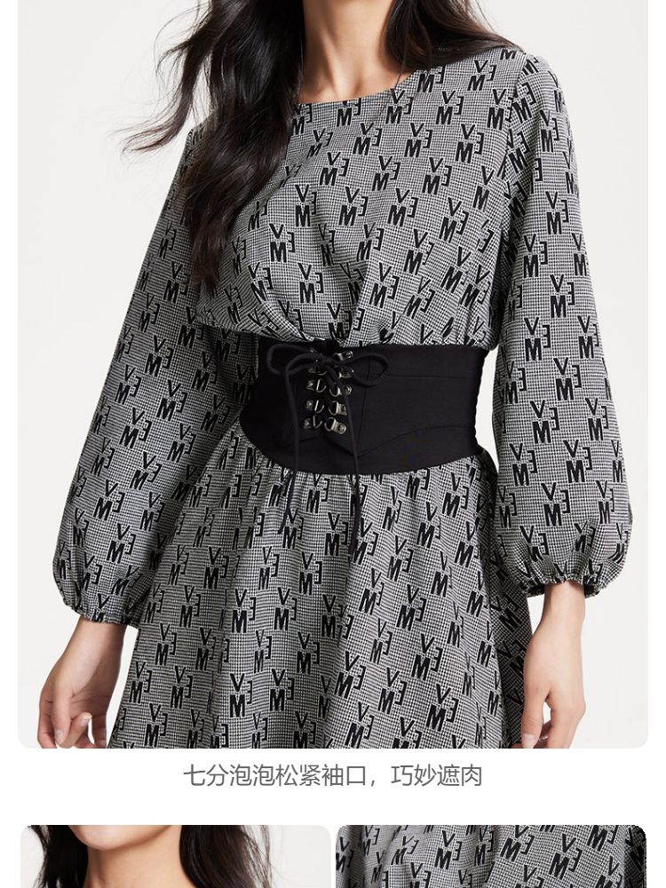 商品名称:【松紧绑带腰封】优雅通勤修身七分袖连衣裙 112913
