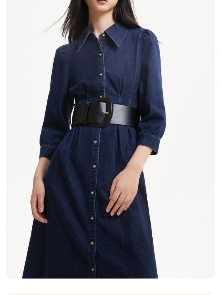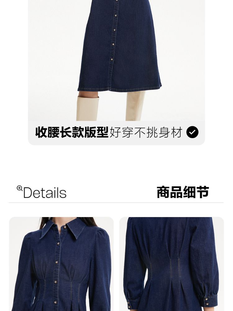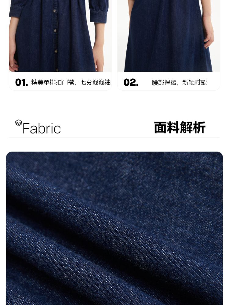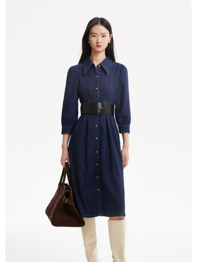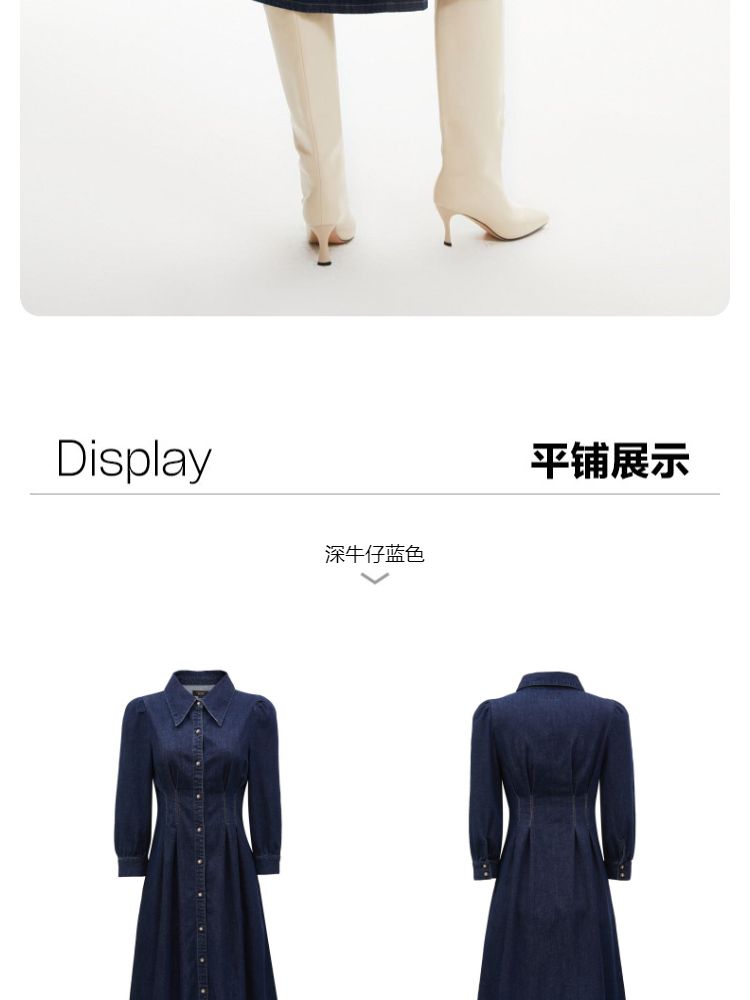 商品名称:连衣裙收腰泡泡袖牛仔衬衫裙 231313