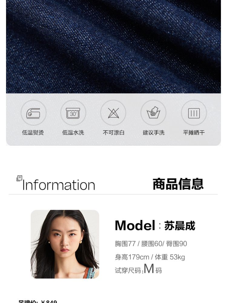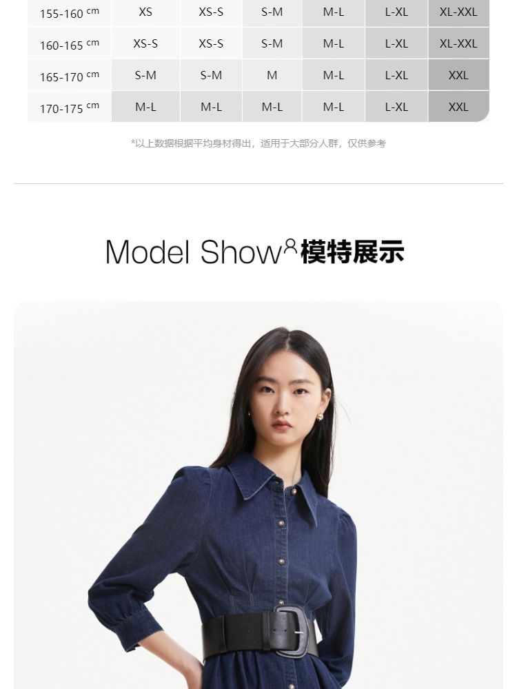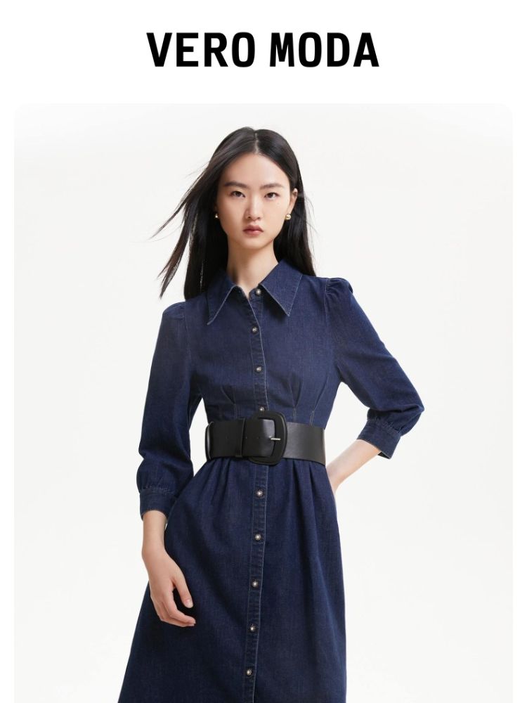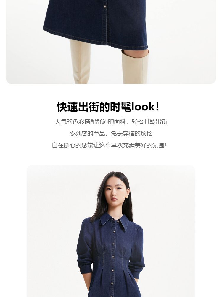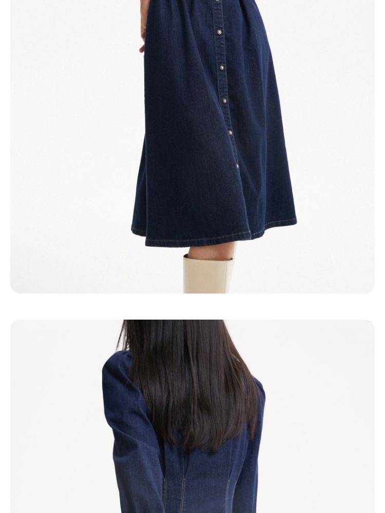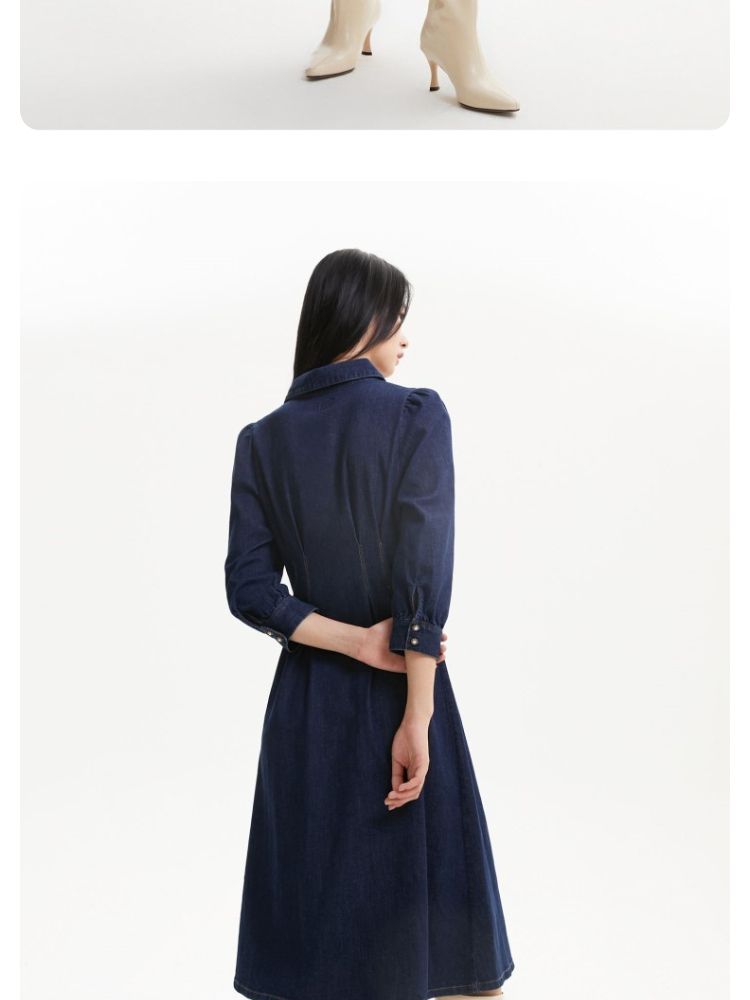 商品名称:连衣裙收腰泡泡袖牛仔衬衫裙 231313