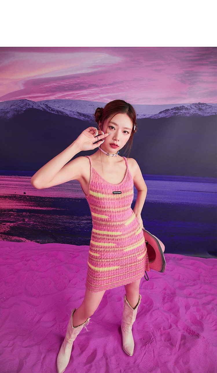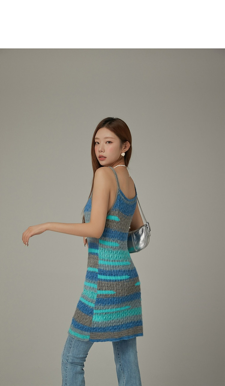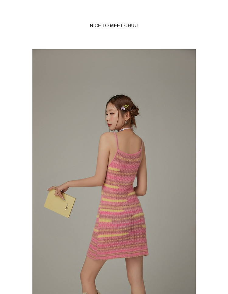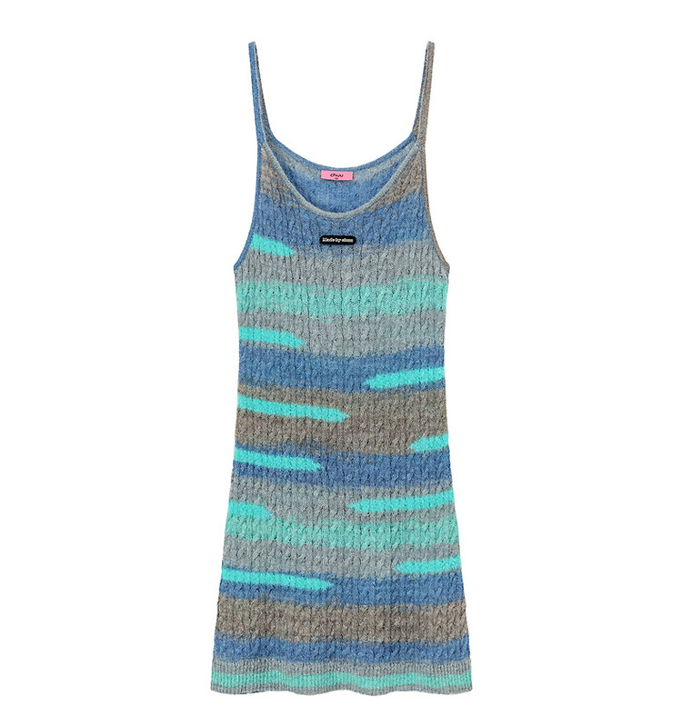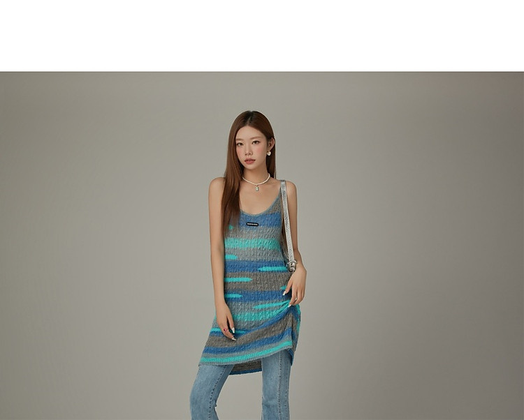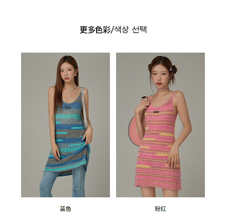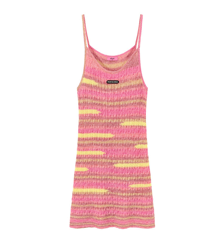 商品名称:撞色条纹吊带背心女春港风针织中长修身无袖上衣 510995