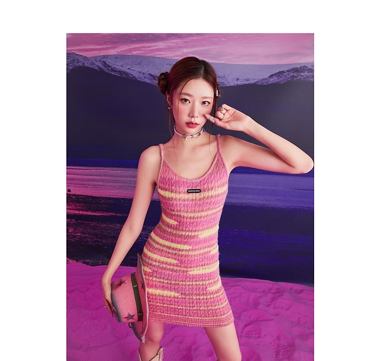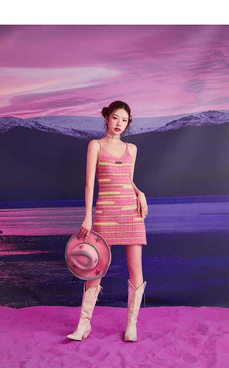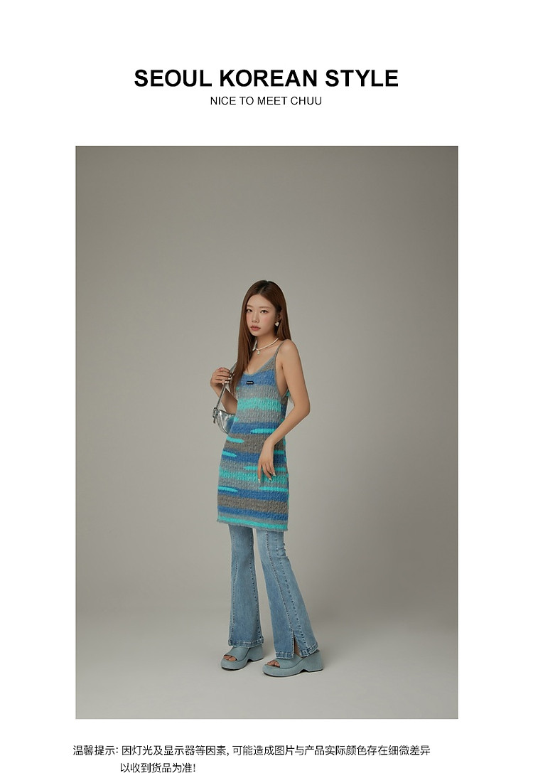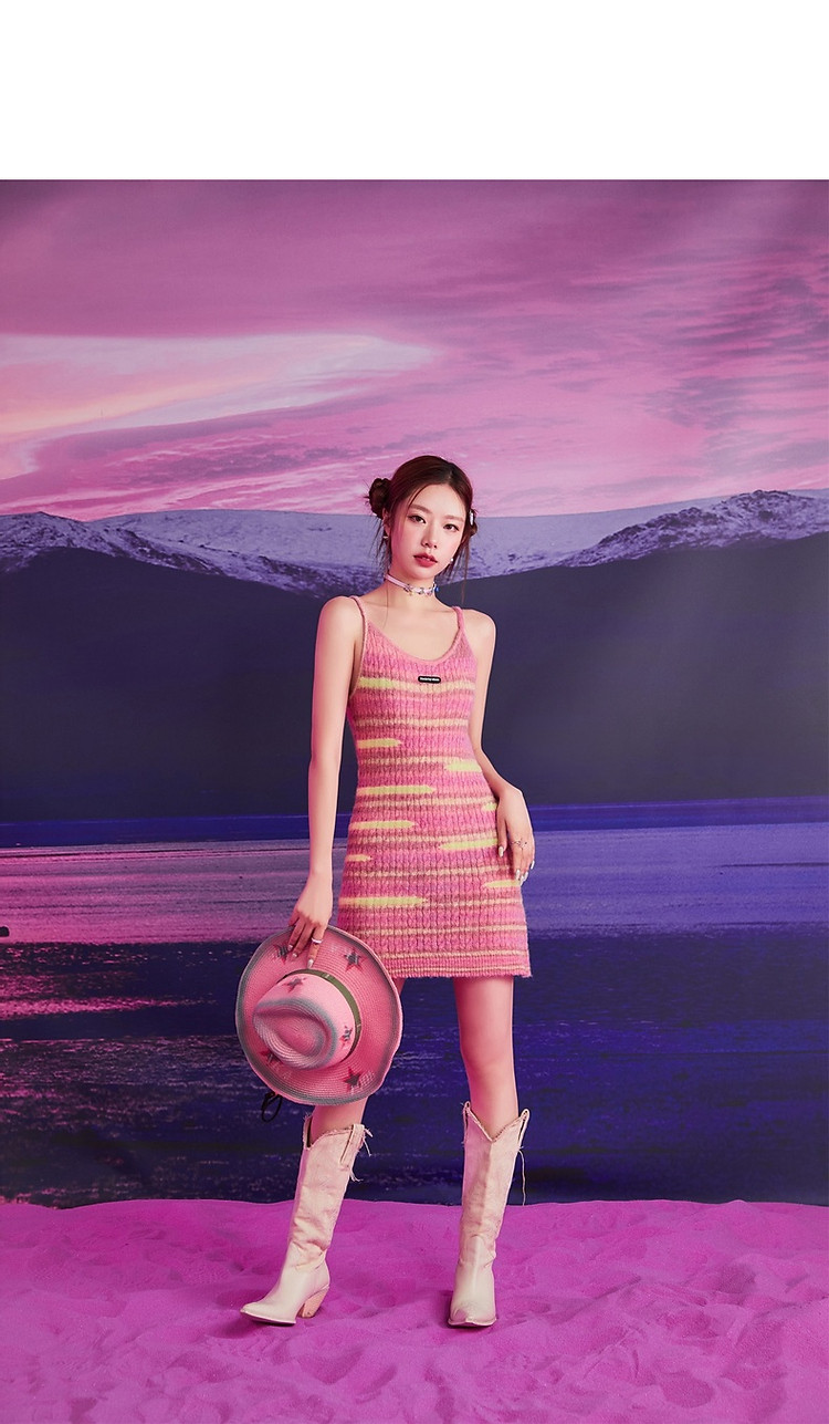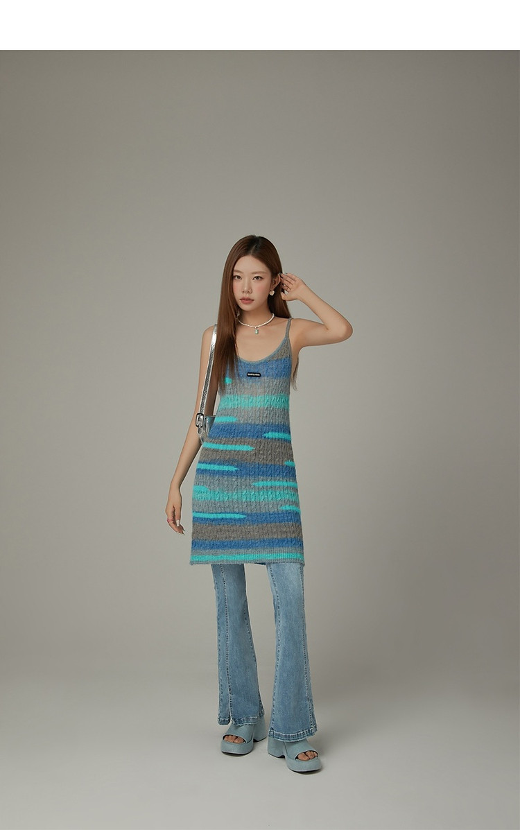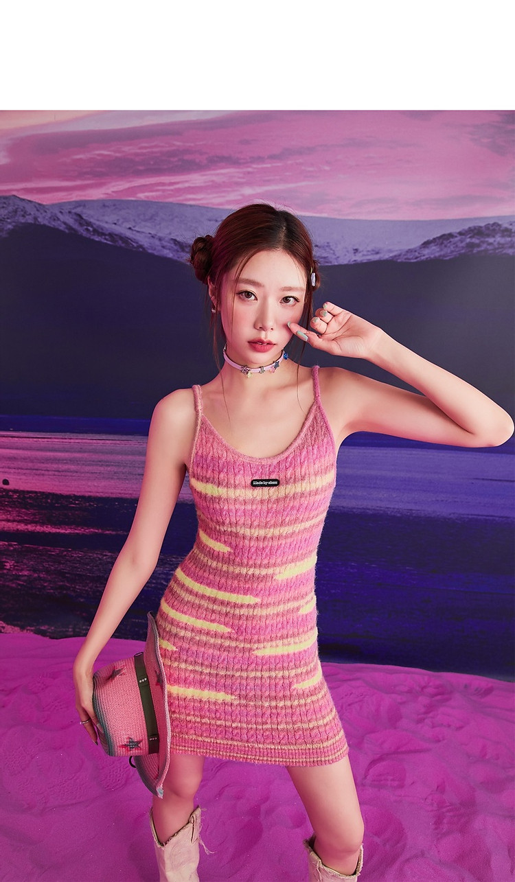 商品名称:撞色条纹吊带背心女春港风针织中长修身无袖上衣 510995