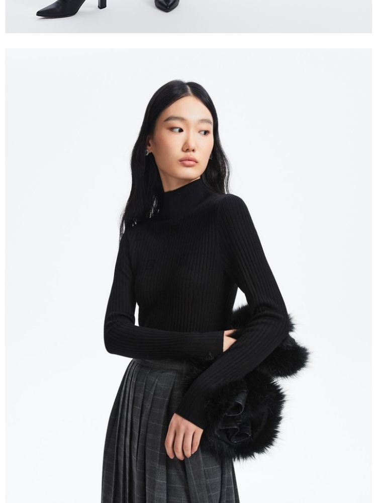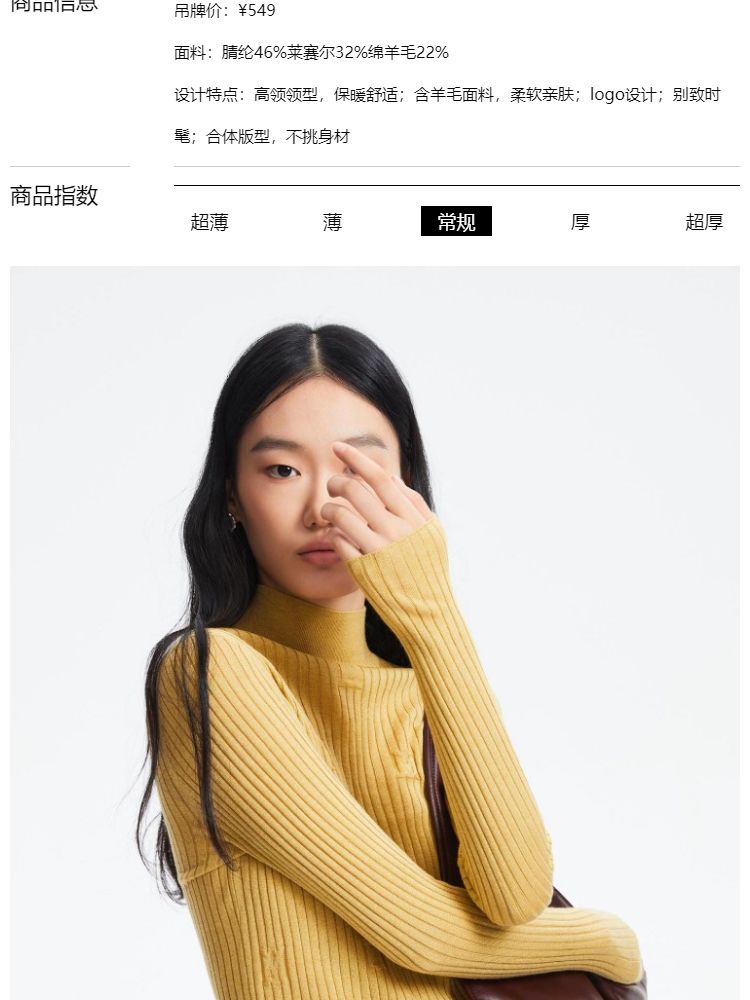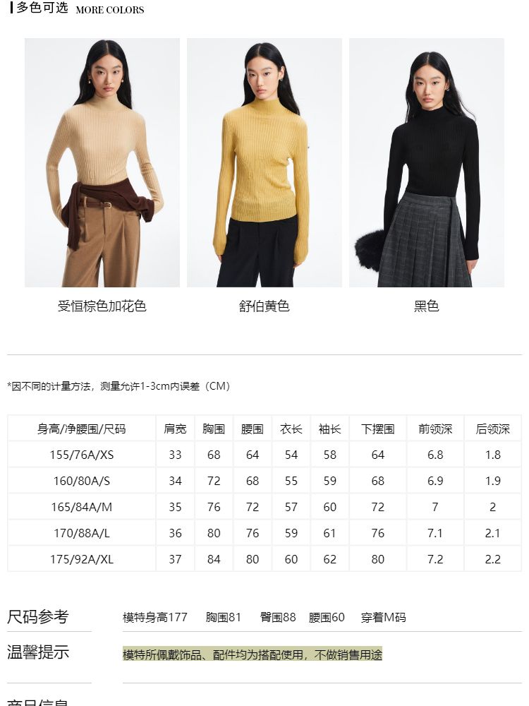 商品名称:【天丝柔软】春夏季优雅高领含羊毛打底针织衫毛衣气质百搭时尚 752081