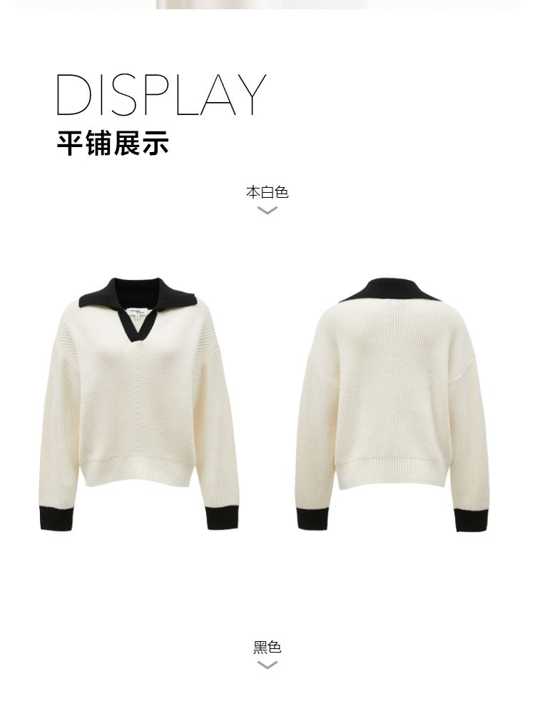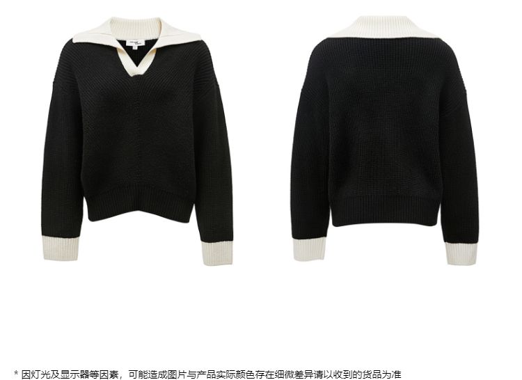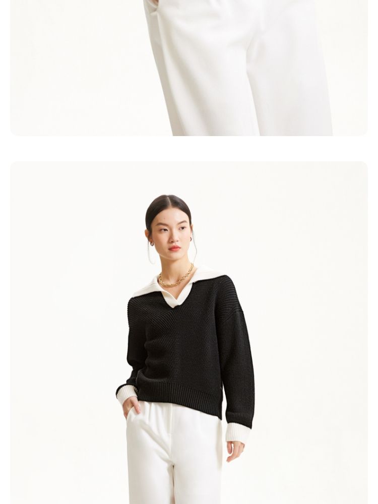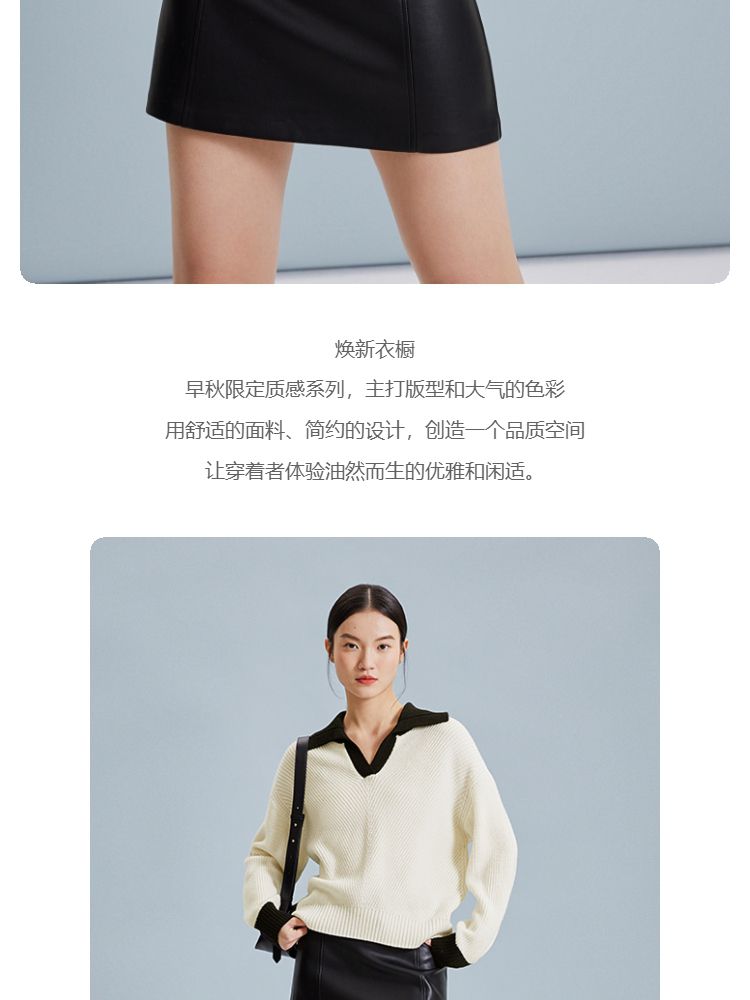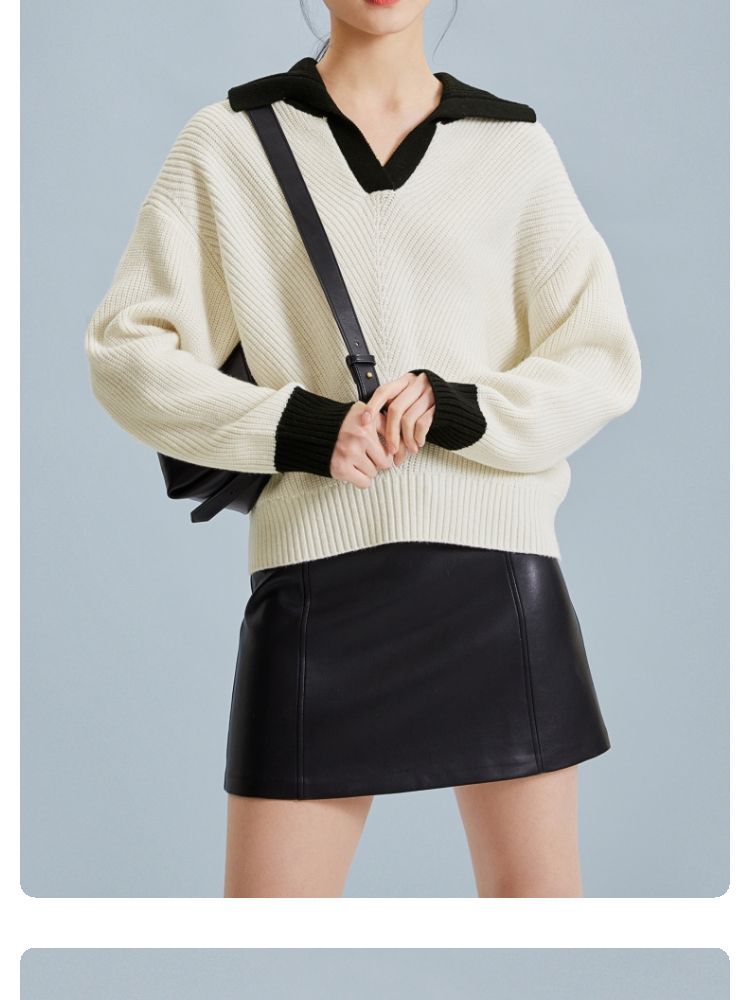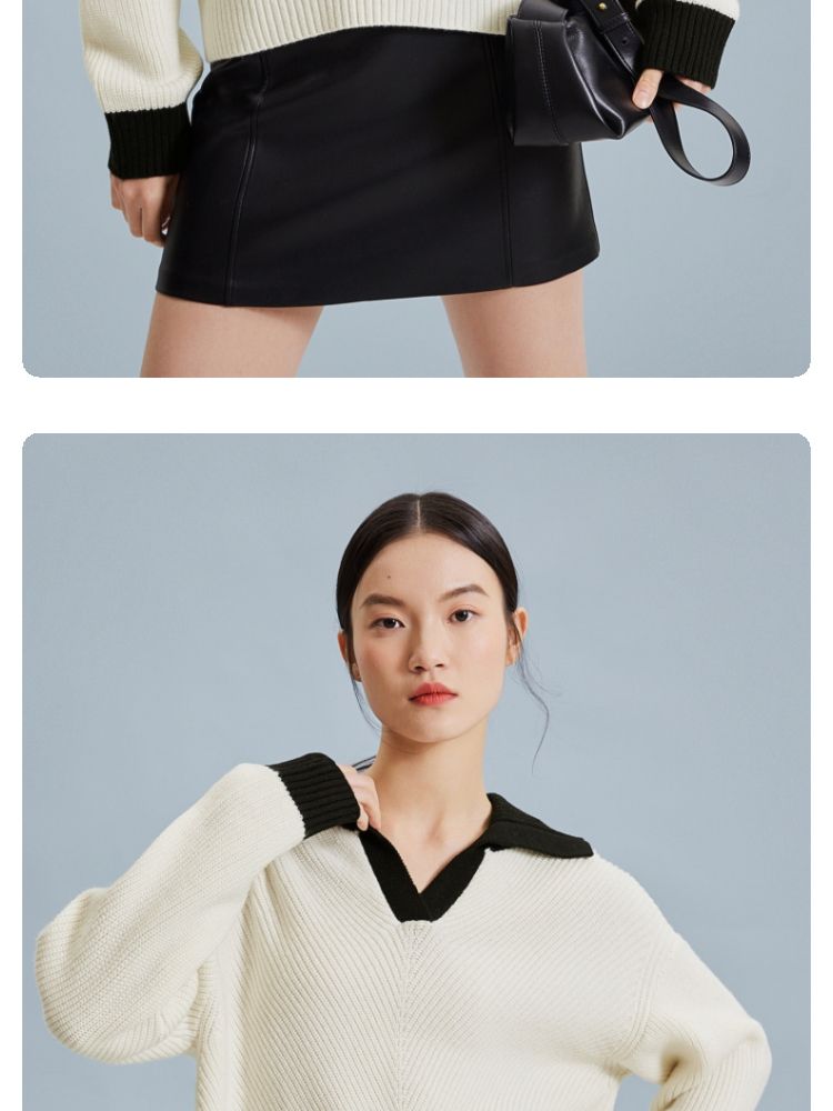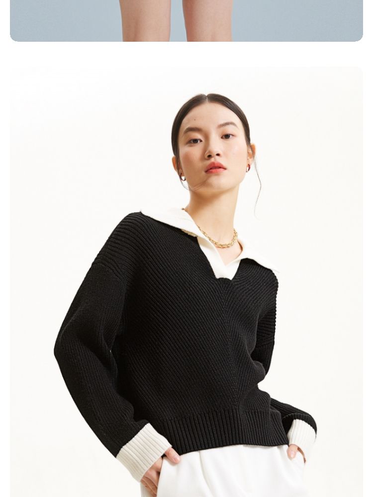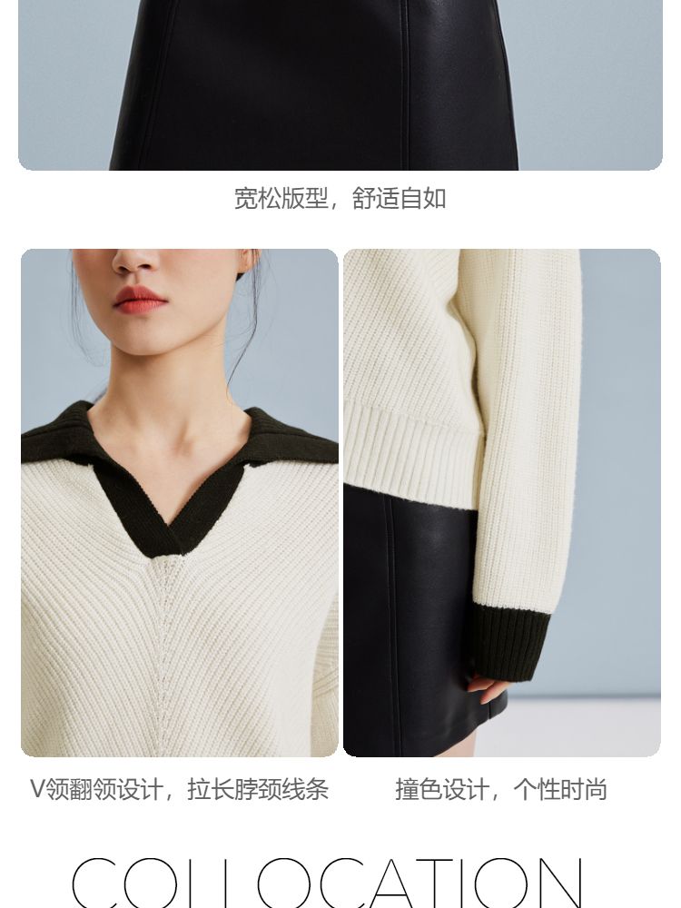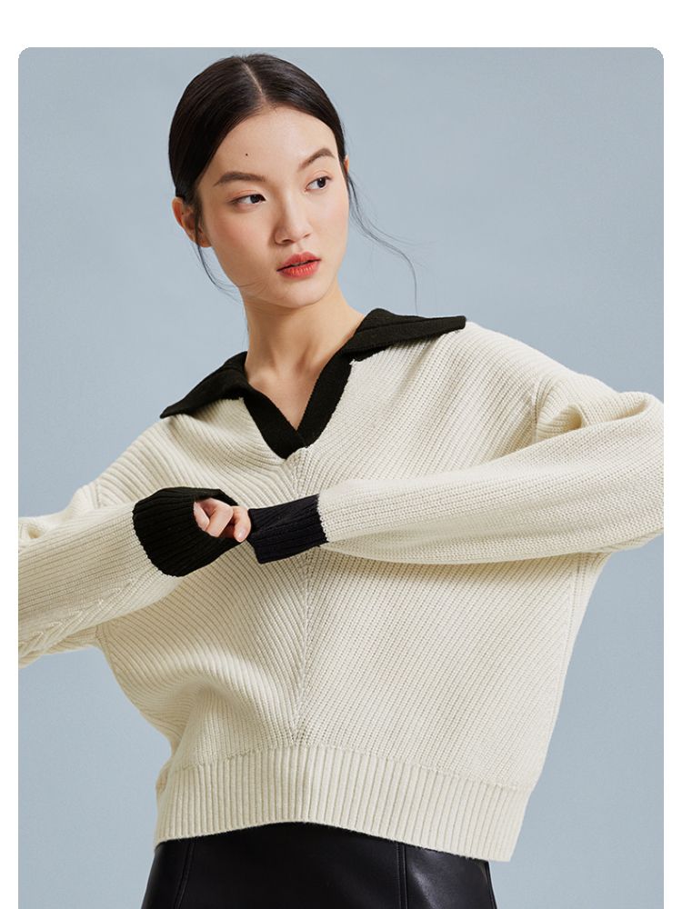 商品名称:【撞色设计】春秋针织衫简约气质宽松短款套头翻领针织衫毛衣女 819281