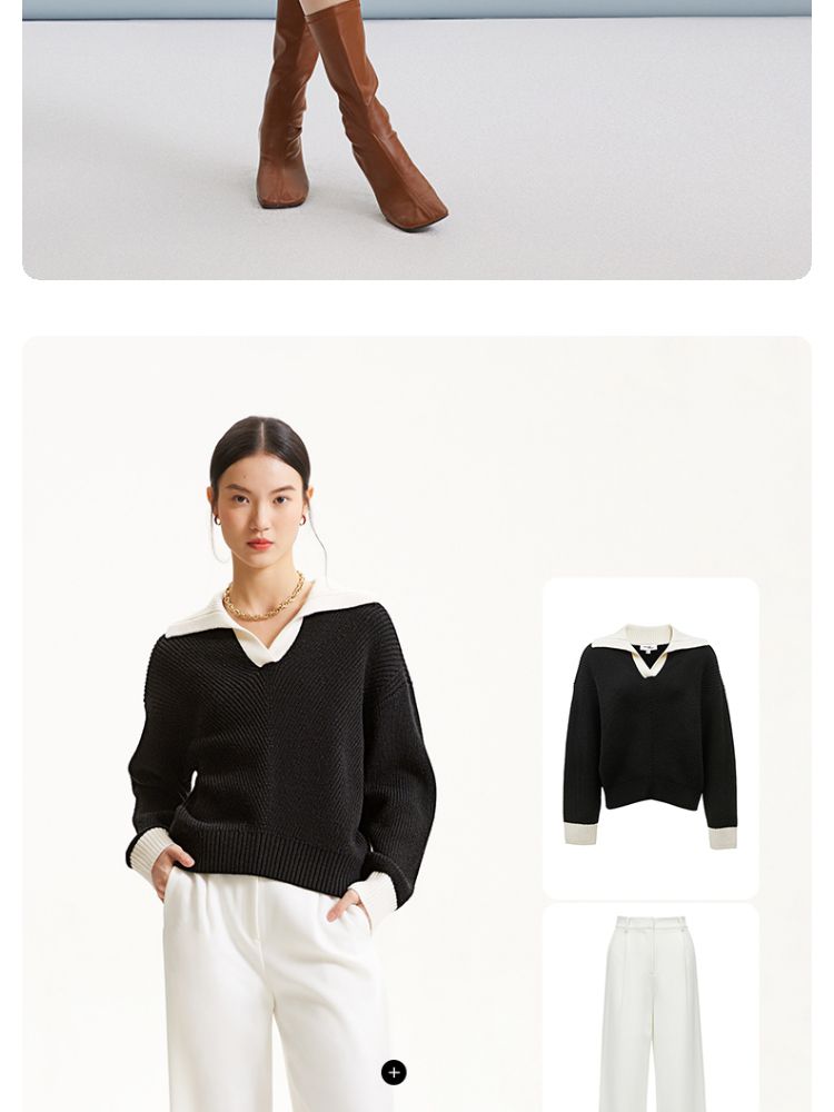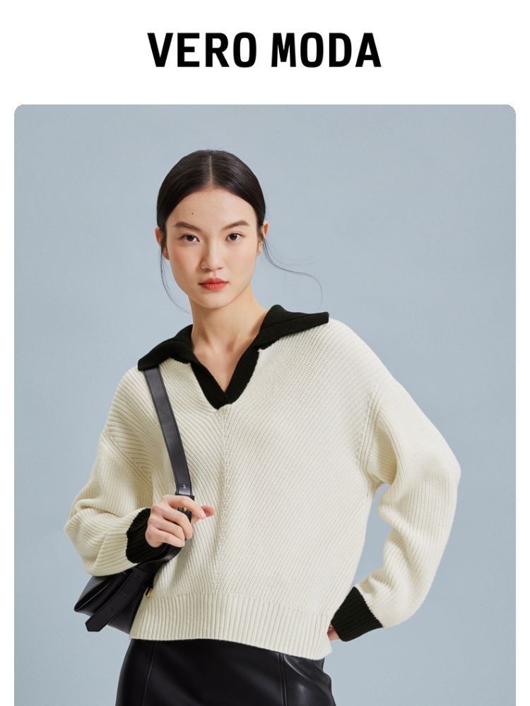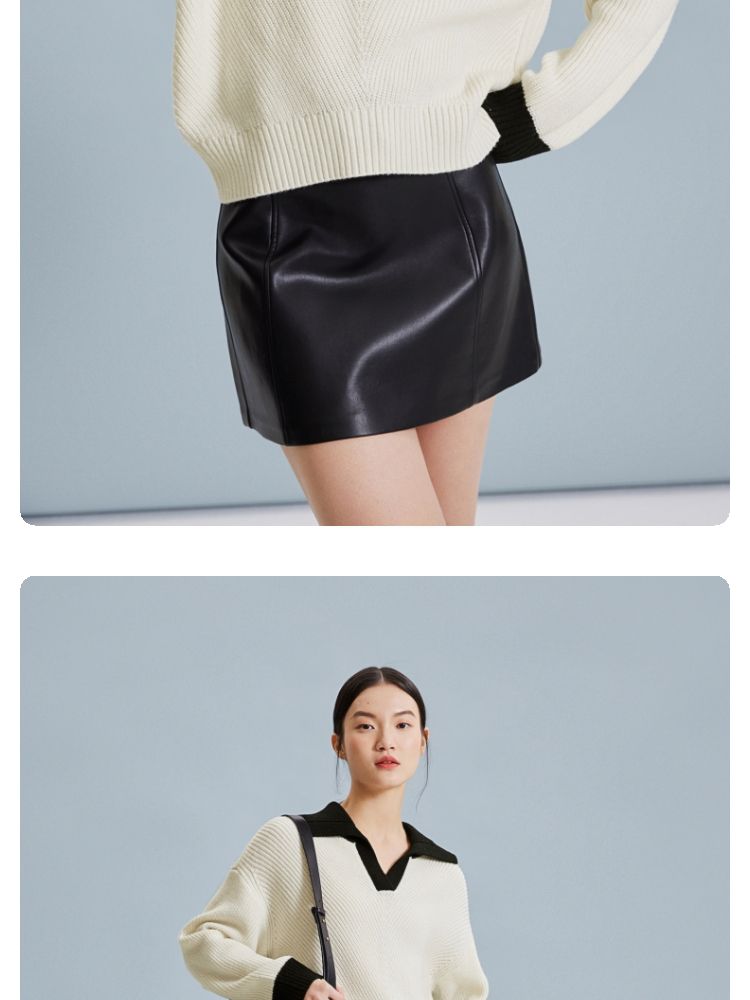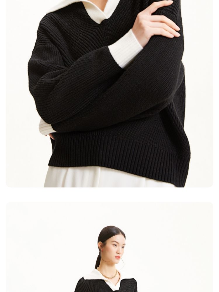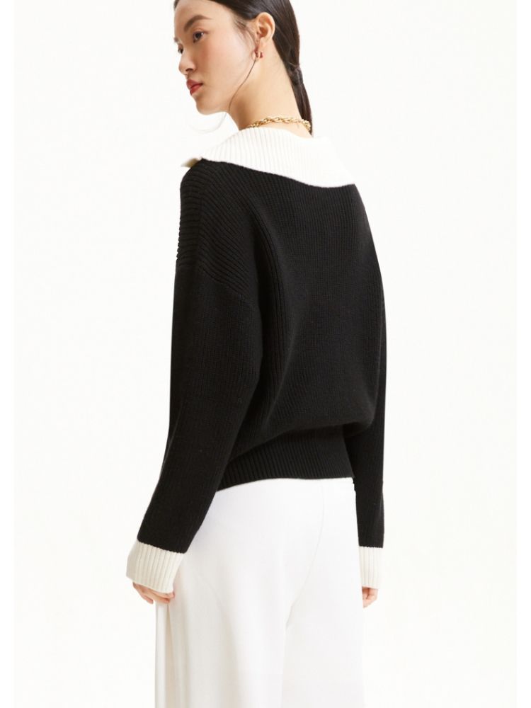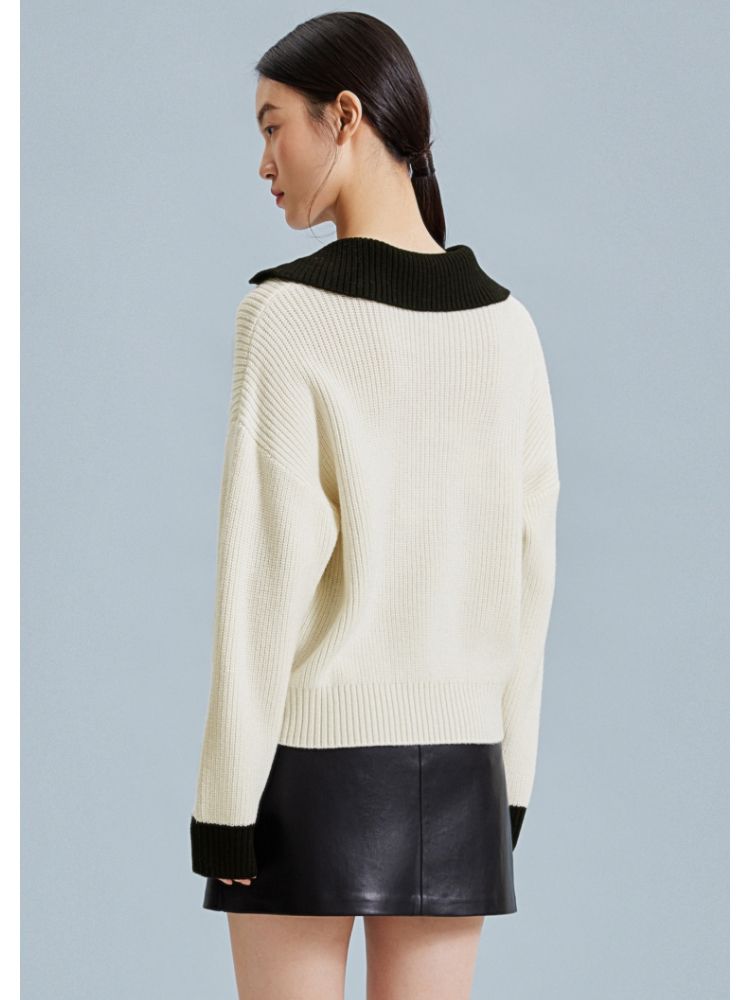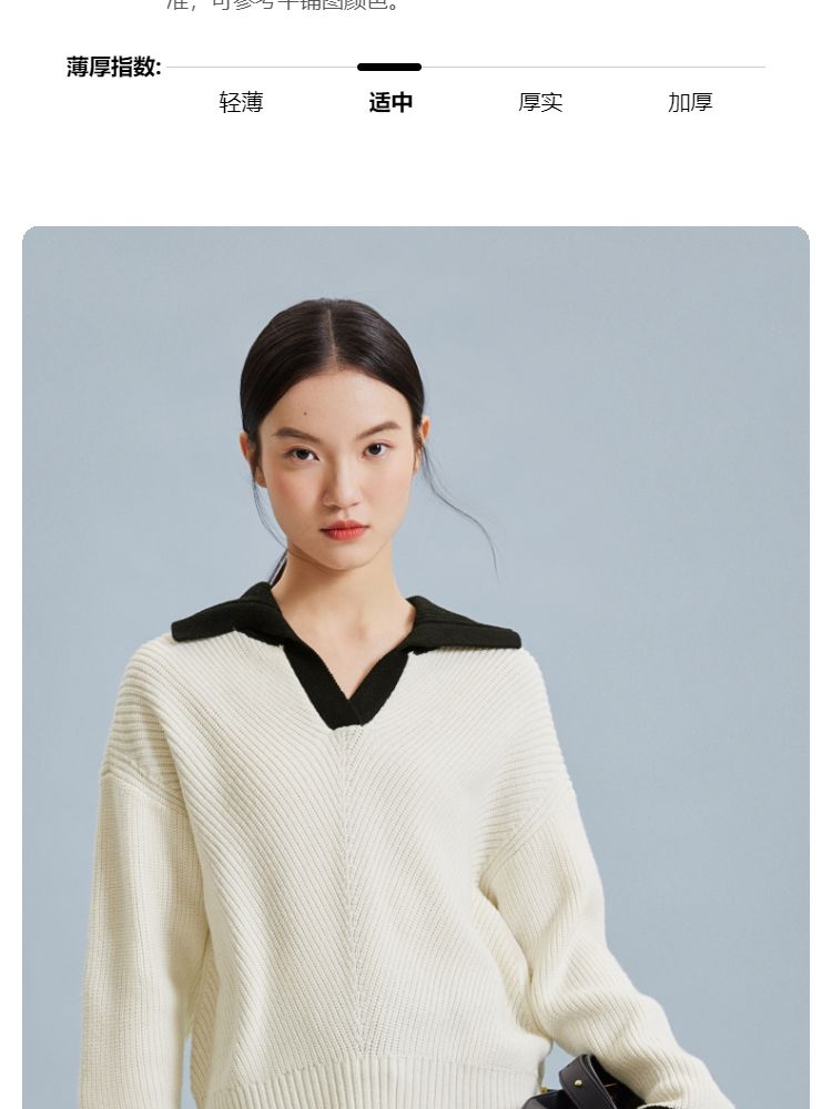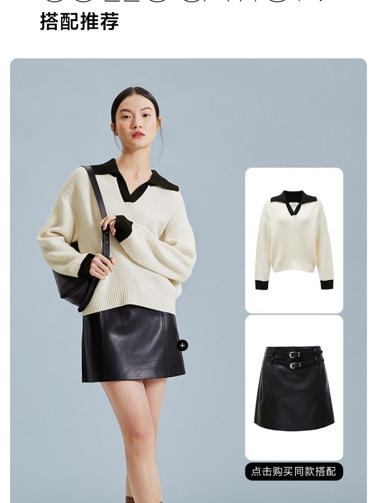 商品名称:【撞色设计】春秋针织衫简约气质宽松短款套头翻领针织衫毛衣女 819281