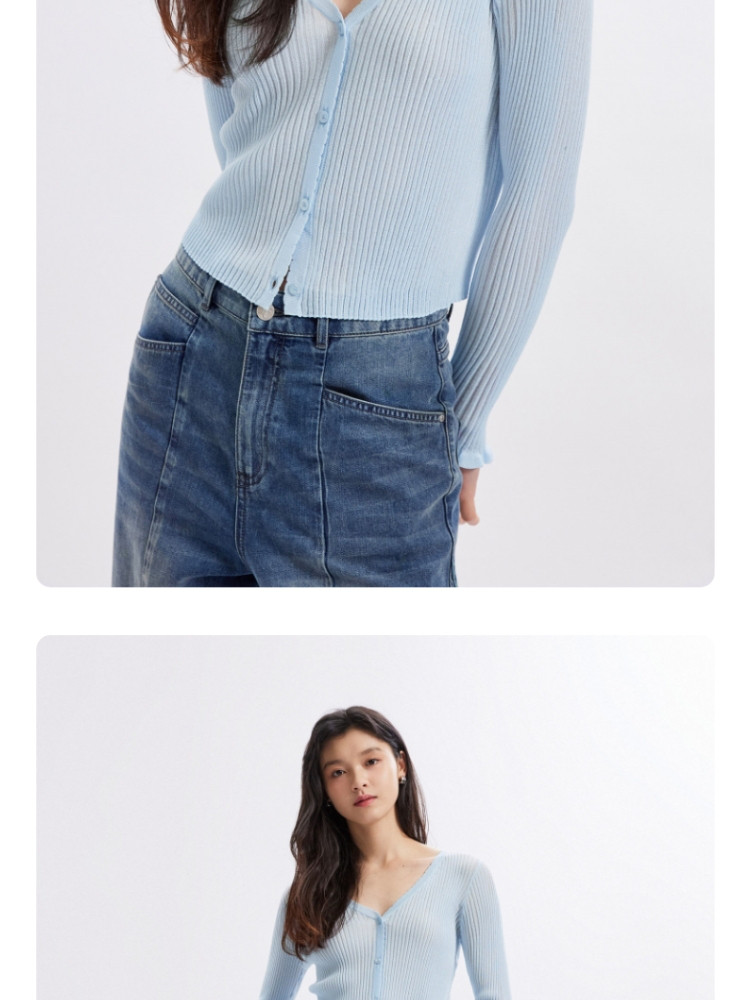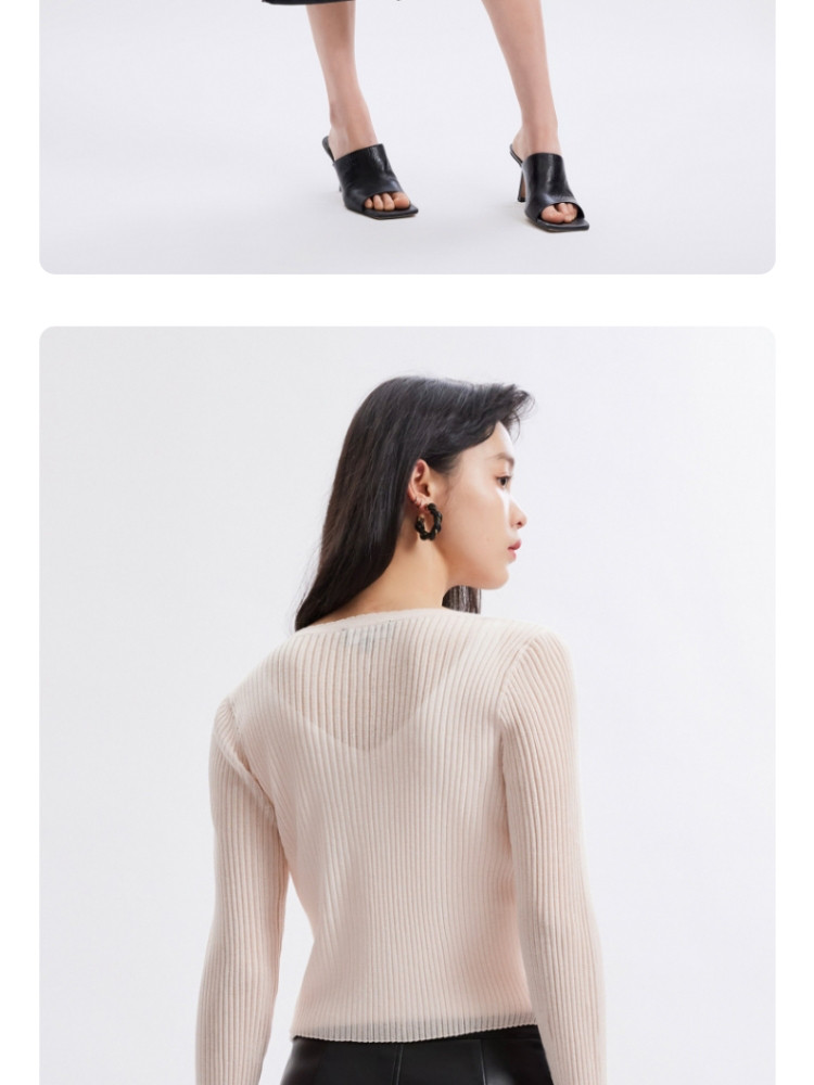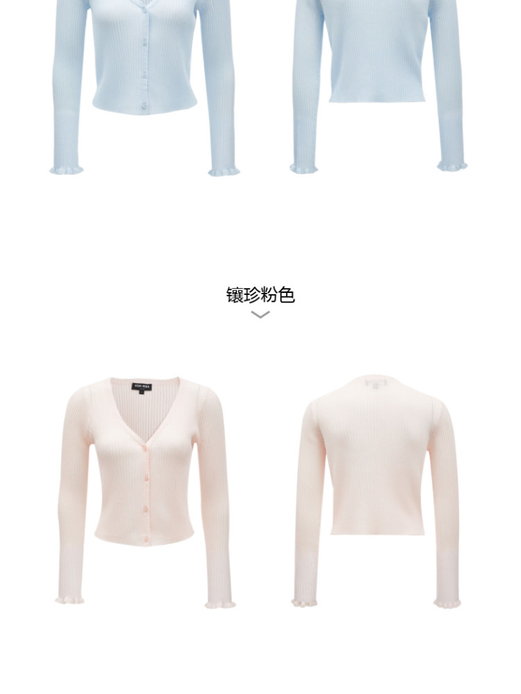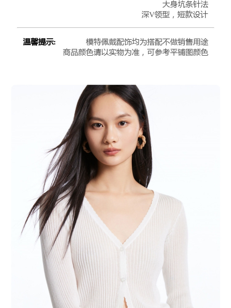 地素V领针织衫秋冬爱心钉珠修身开衫上衣女 228363