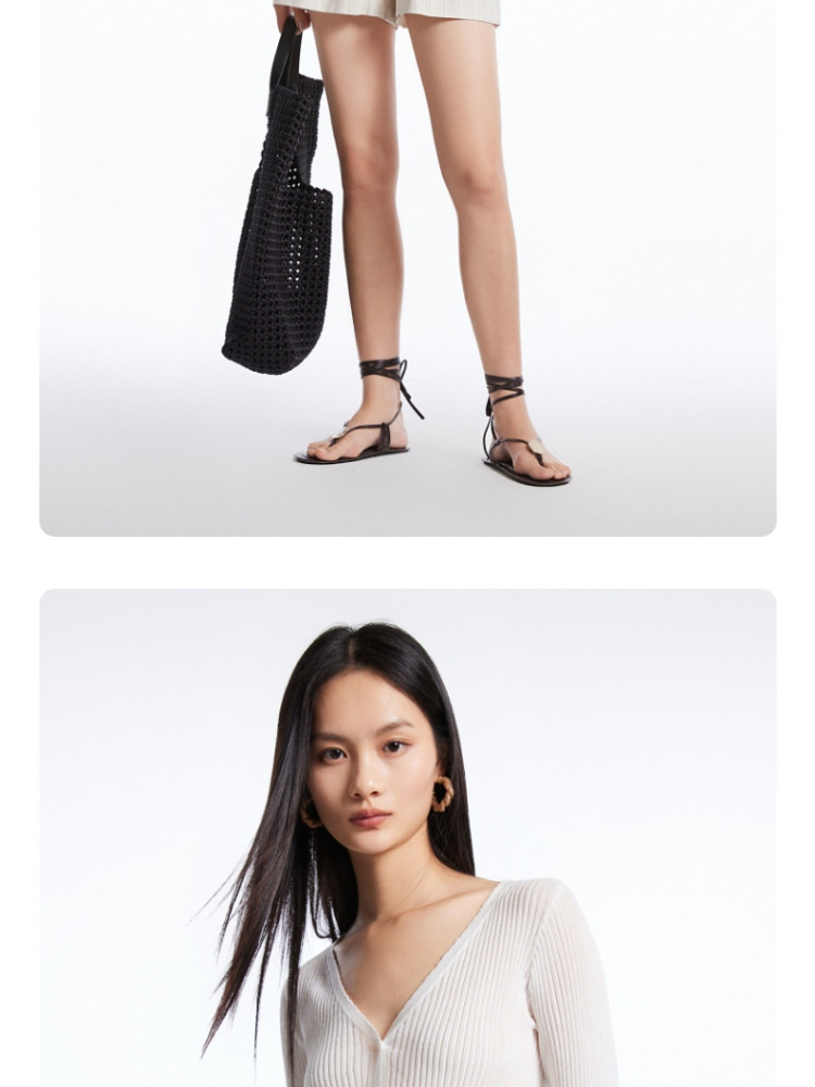 【福利钜惠】优雅气质针织衫简约小香风假口袋镂空短袖T恤针织衫 348169