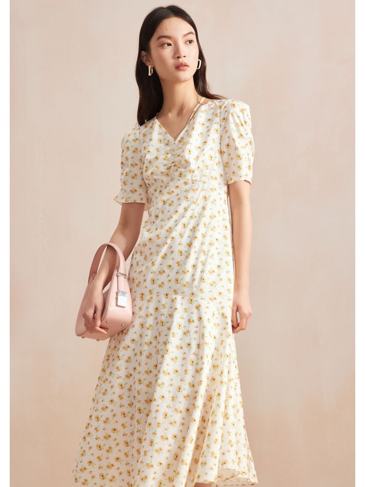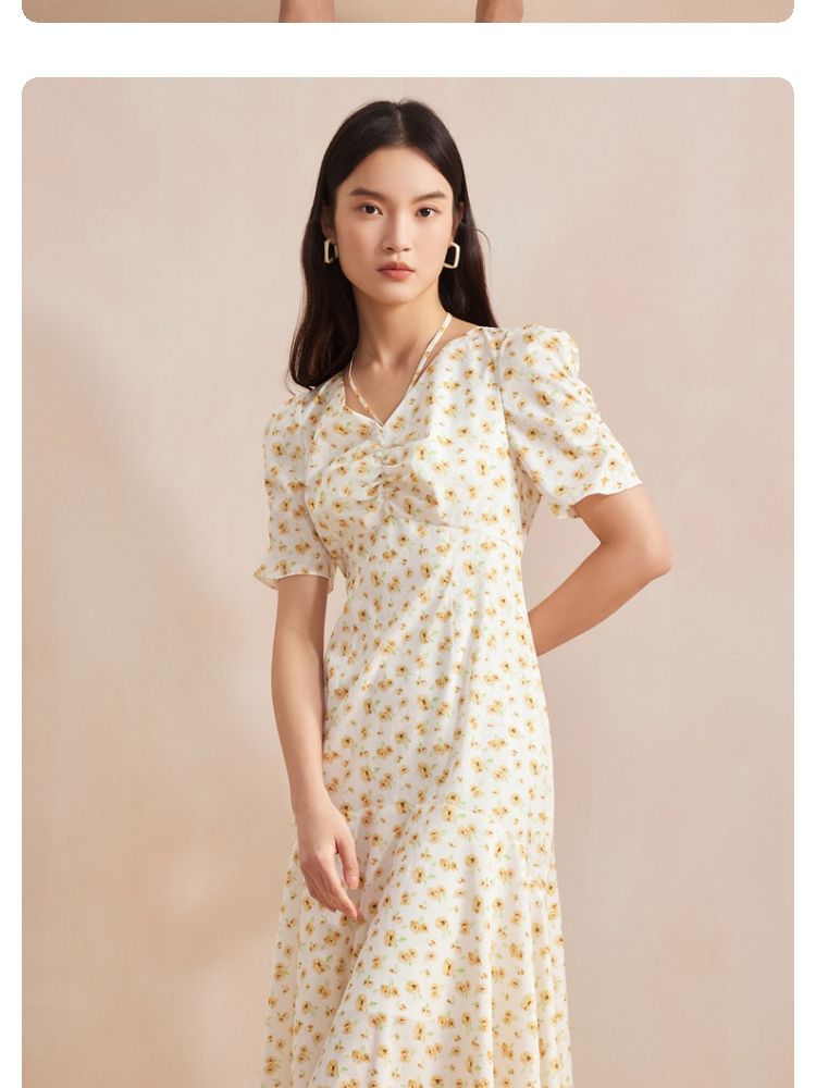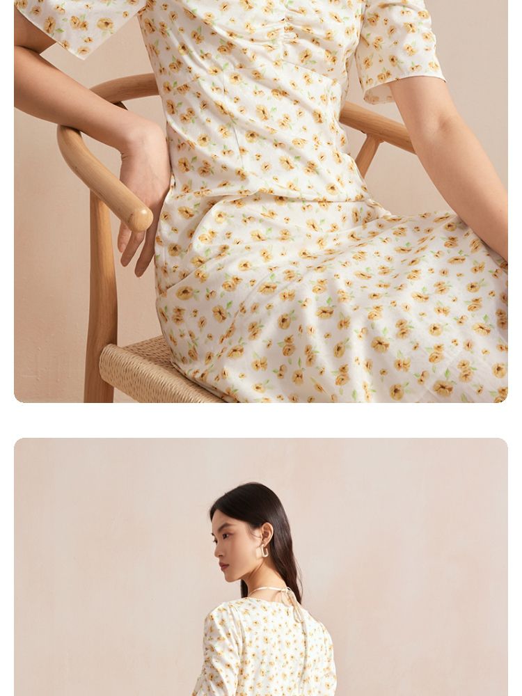 商品名称:【度假风】连衣裙五分袖甜美气质显瘦印花度假风高级感 001169