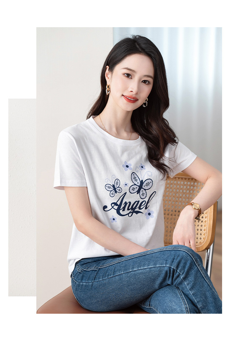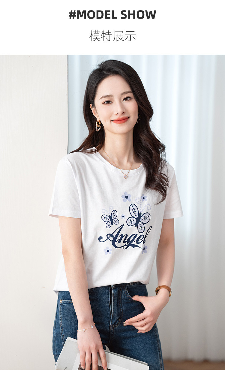 商品名称:【100%棉】夏季时尚前胸印花短袖t恤女宽松舒适百搭休闲打底衫 383256