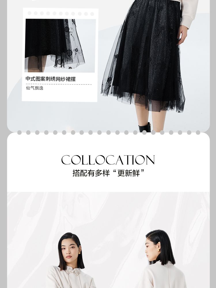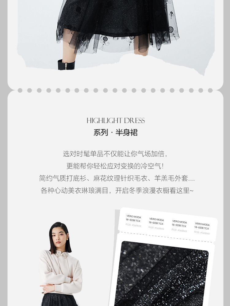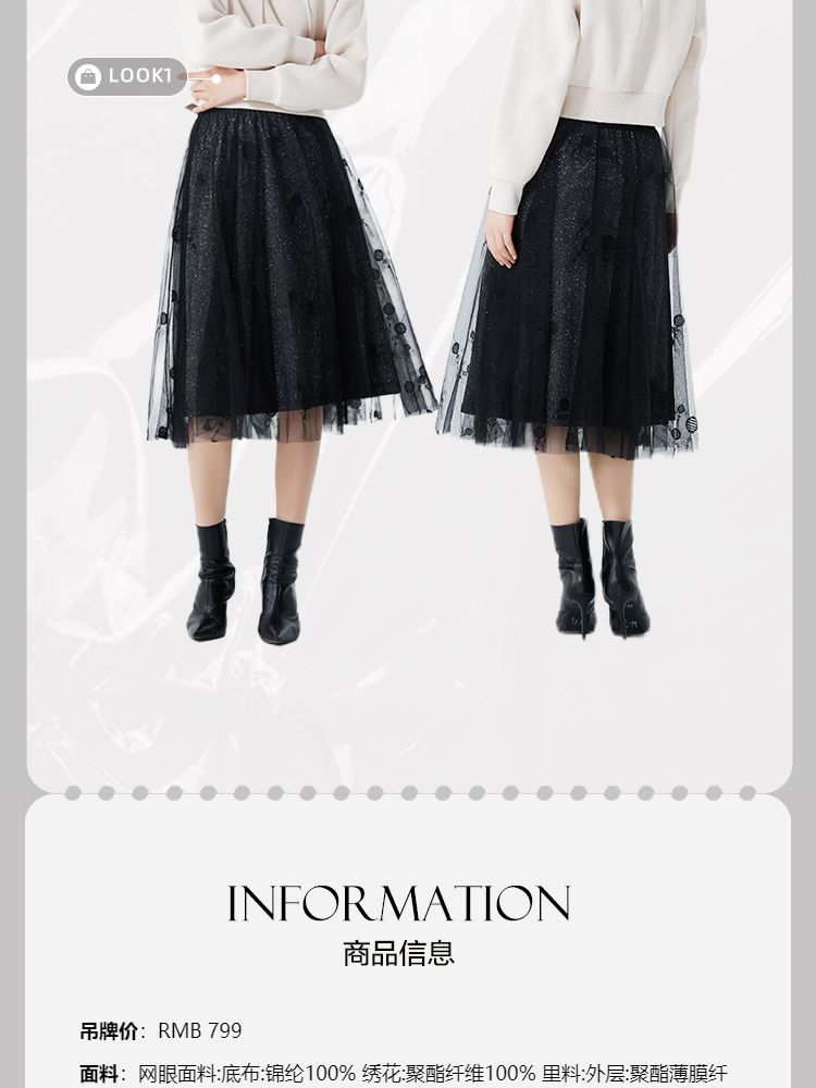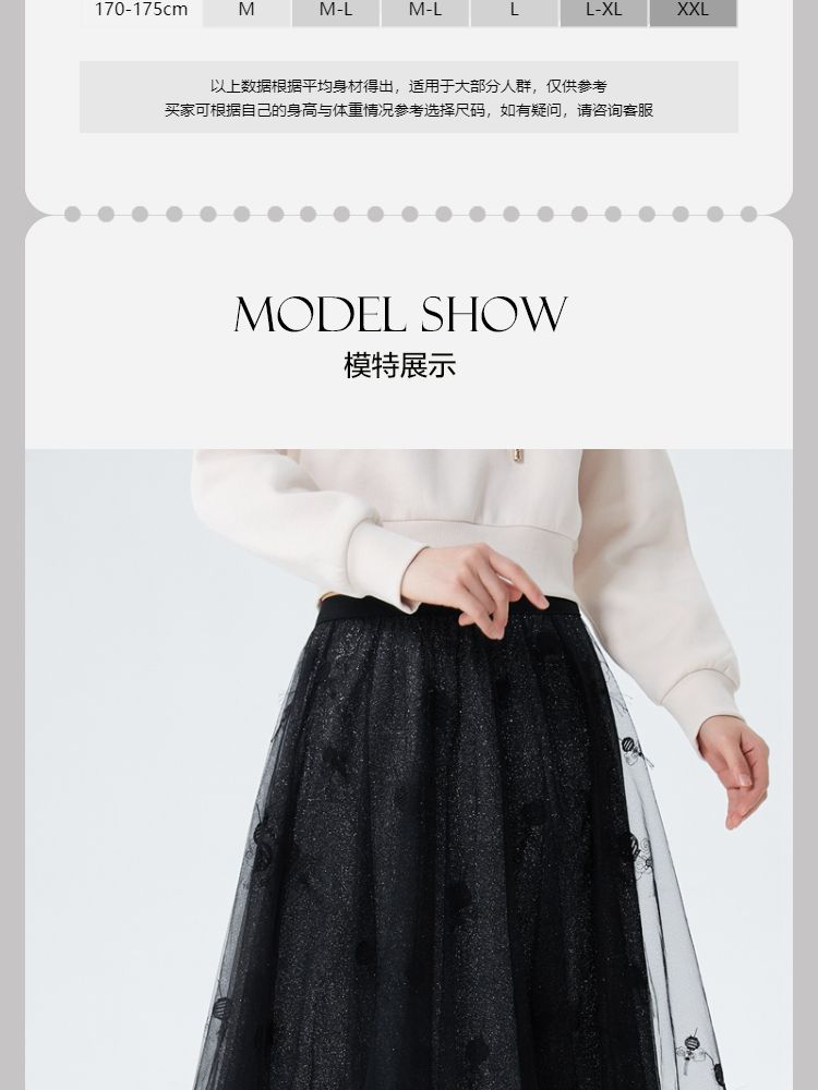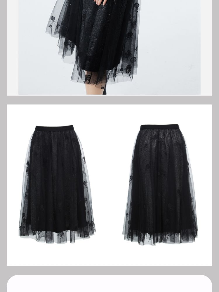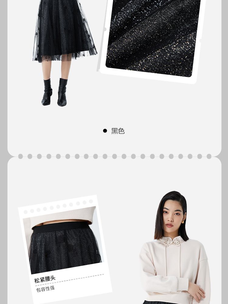 商品名称:半身裙黑色中腰A摆网纱细闪气质通勤仙女风 640529