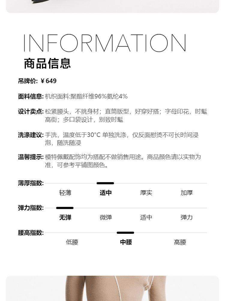 商品名称:【字母印花】多口袋休闲松紧腰直筒中腰休闲裤女 364305