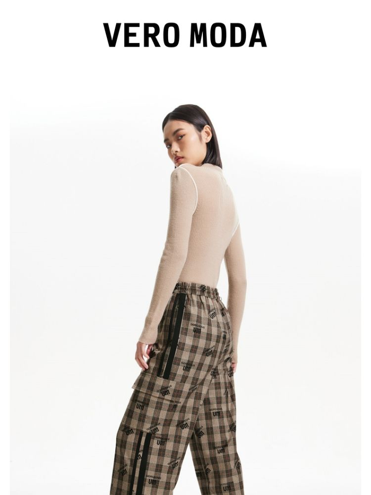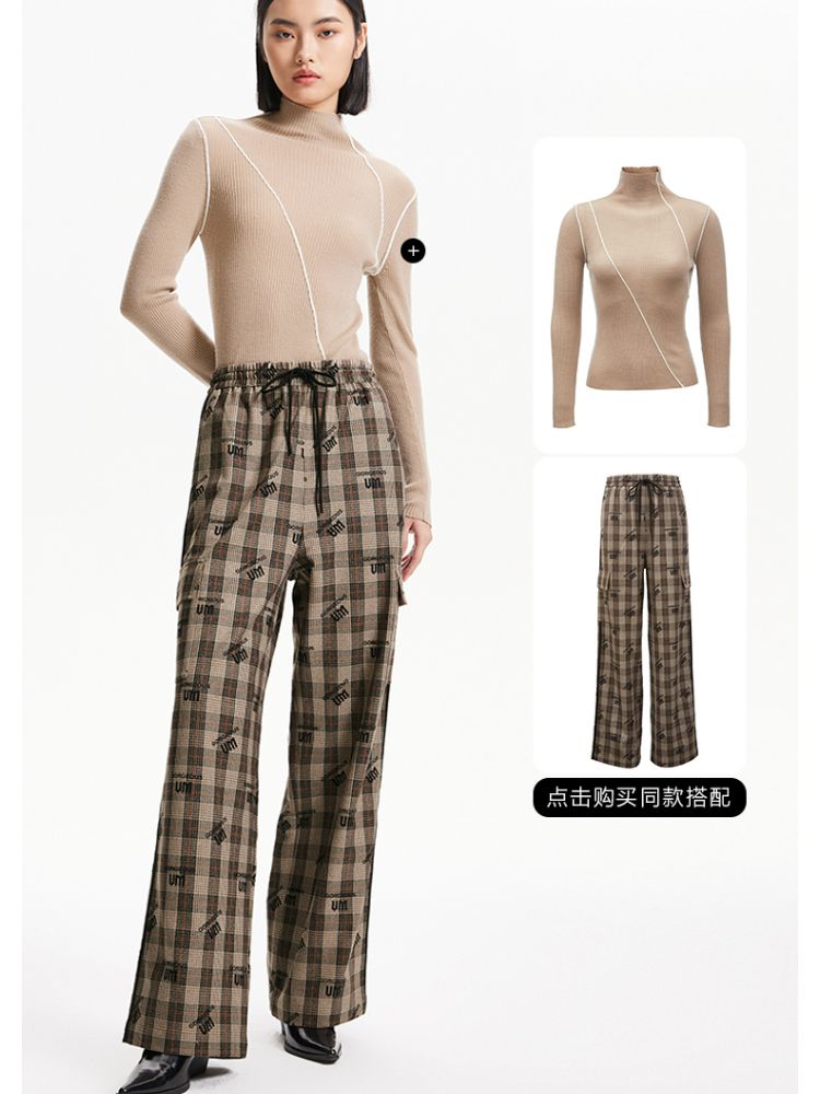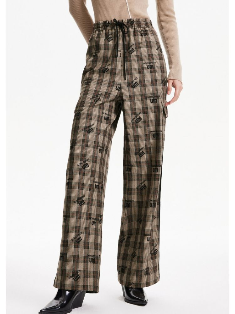 【字母印花】多口袋休闲松紧腰直筒中腰休闲裤女 364305