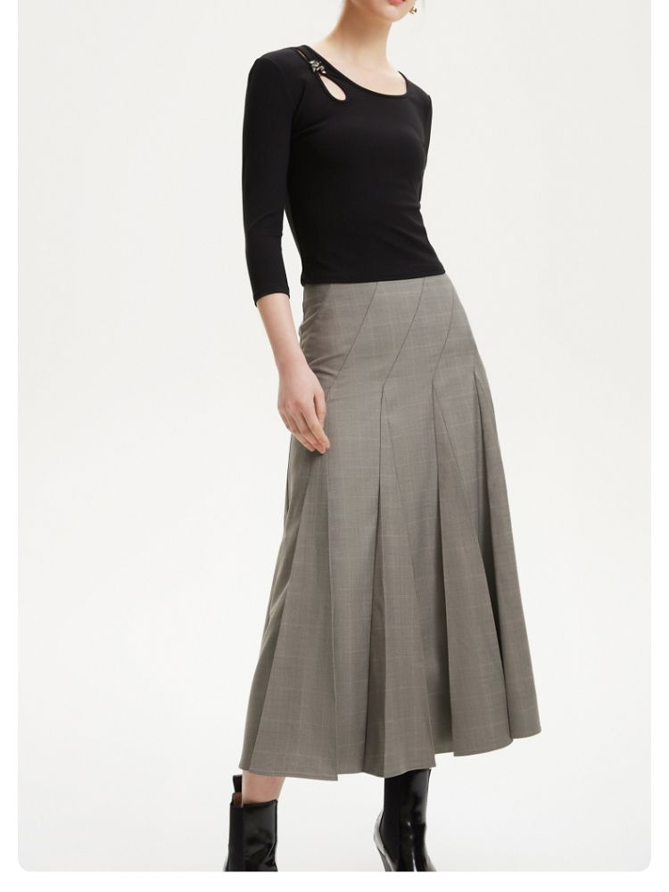 【高级质感】半身裙女中腰百褶格纹通勤优雅气质职场简约 357905