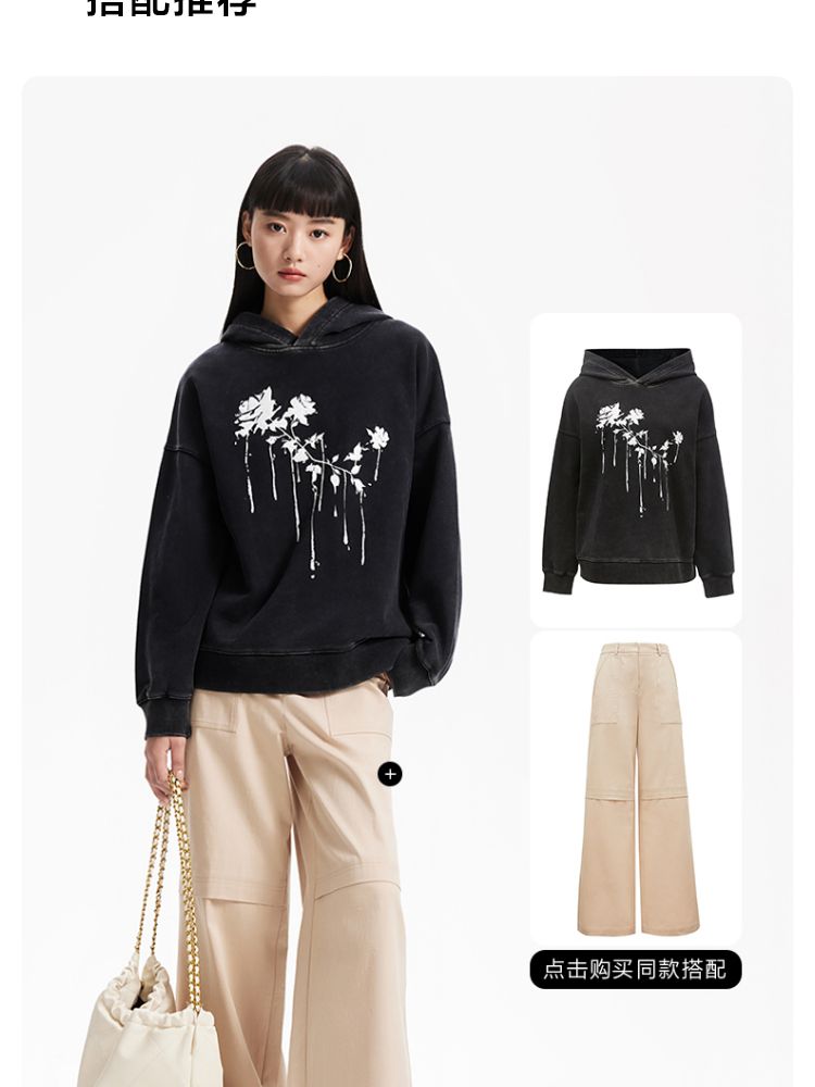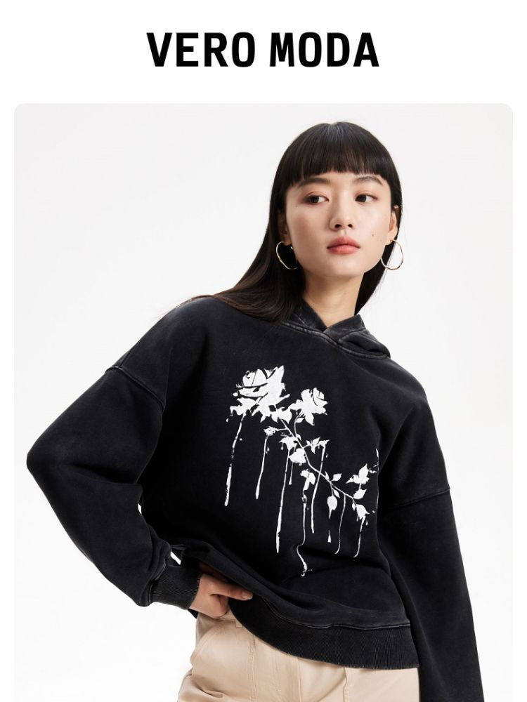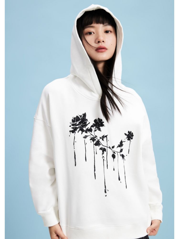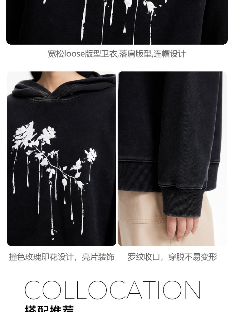 商品名称:【玫瑰印花】卫衣女休闲百搭时尚街头撞色玫瑰印花亮片上衣 558225