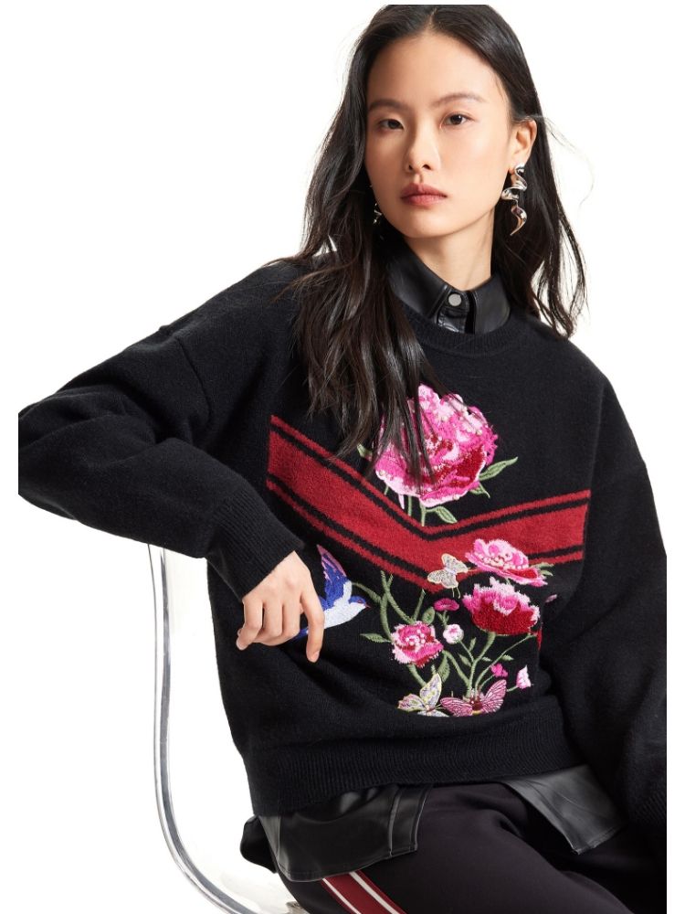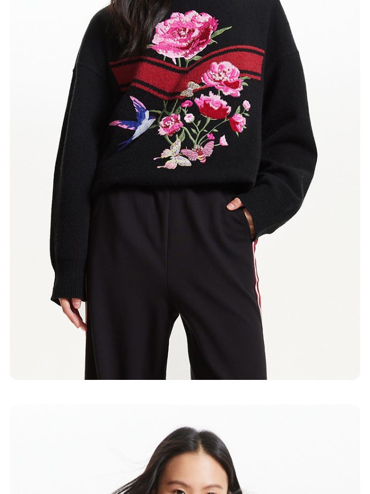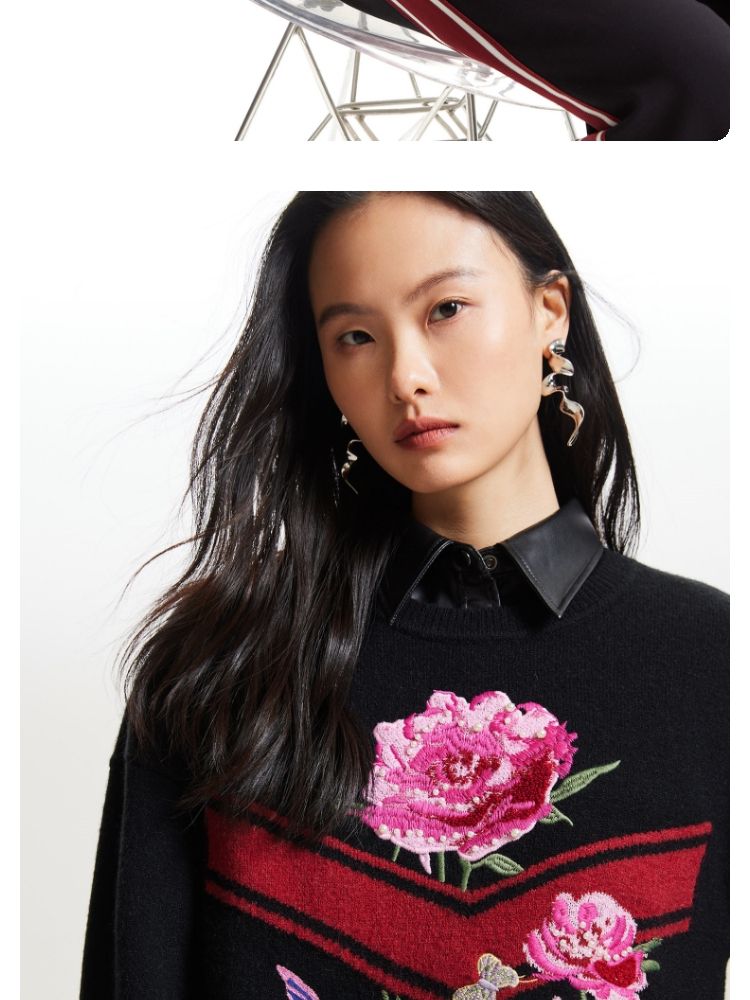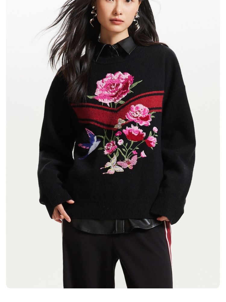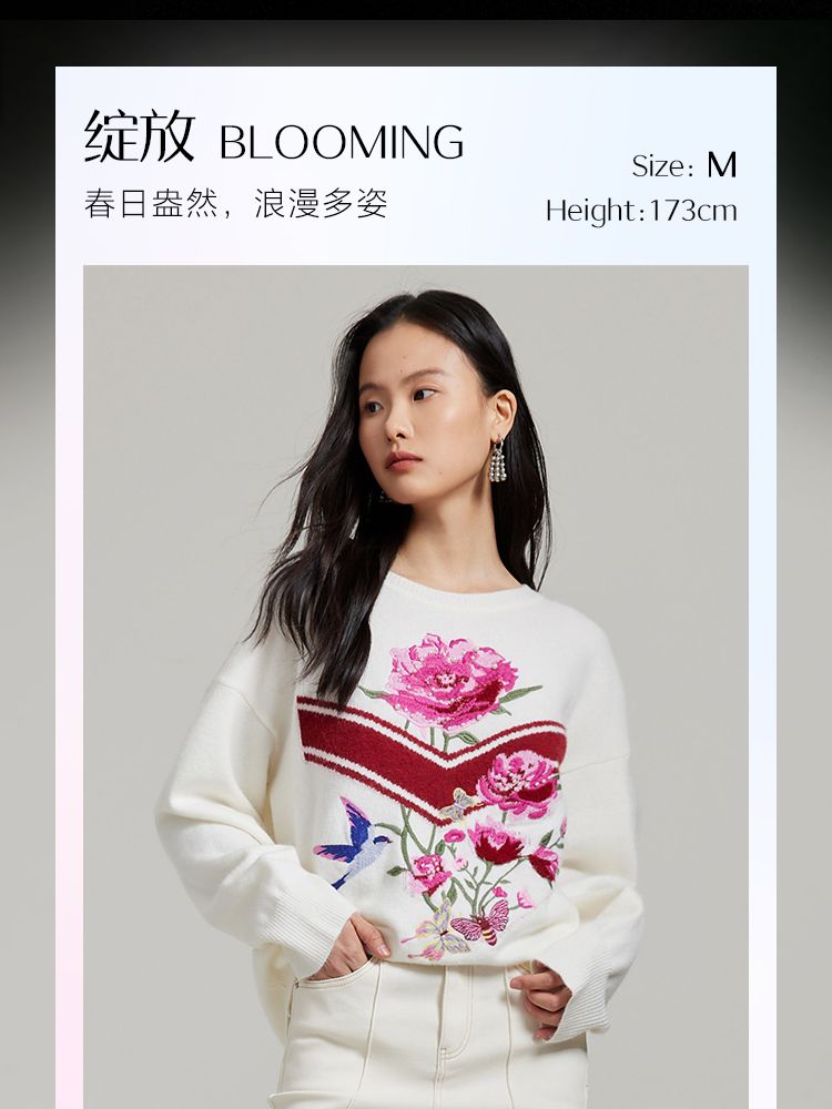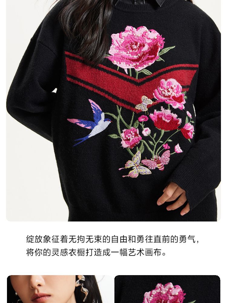 商品名称:【赵小黎艺术家联名系列】圆领花朵提花气质针织衫 493521