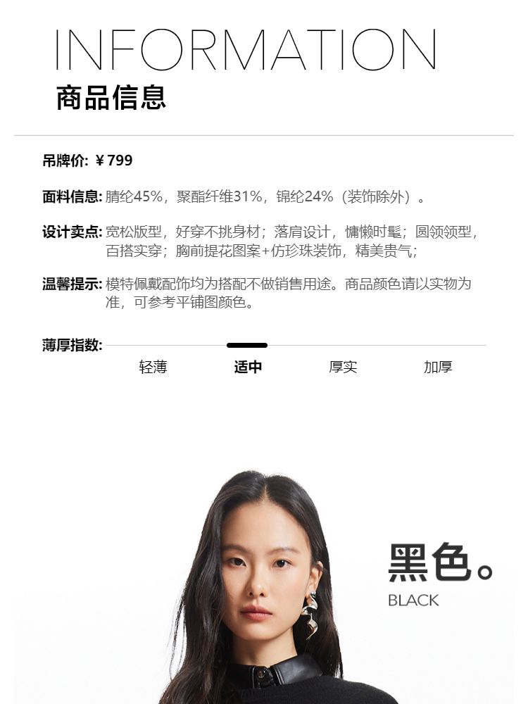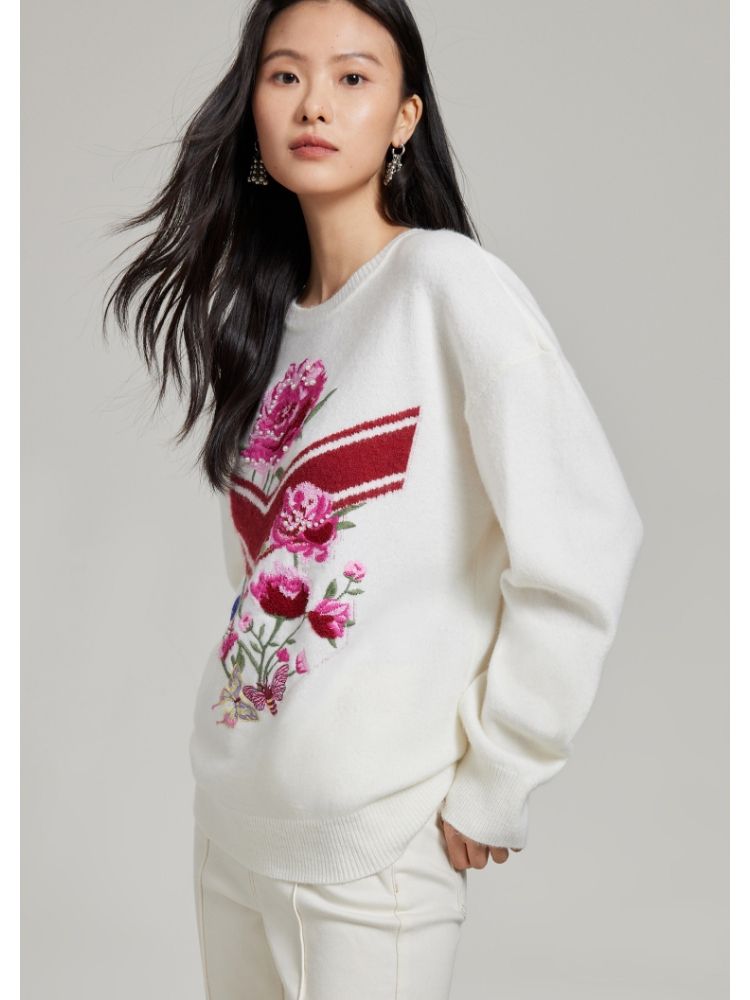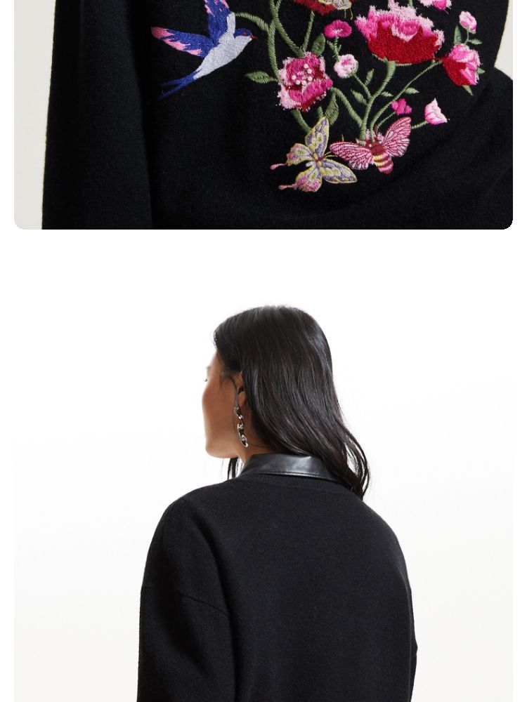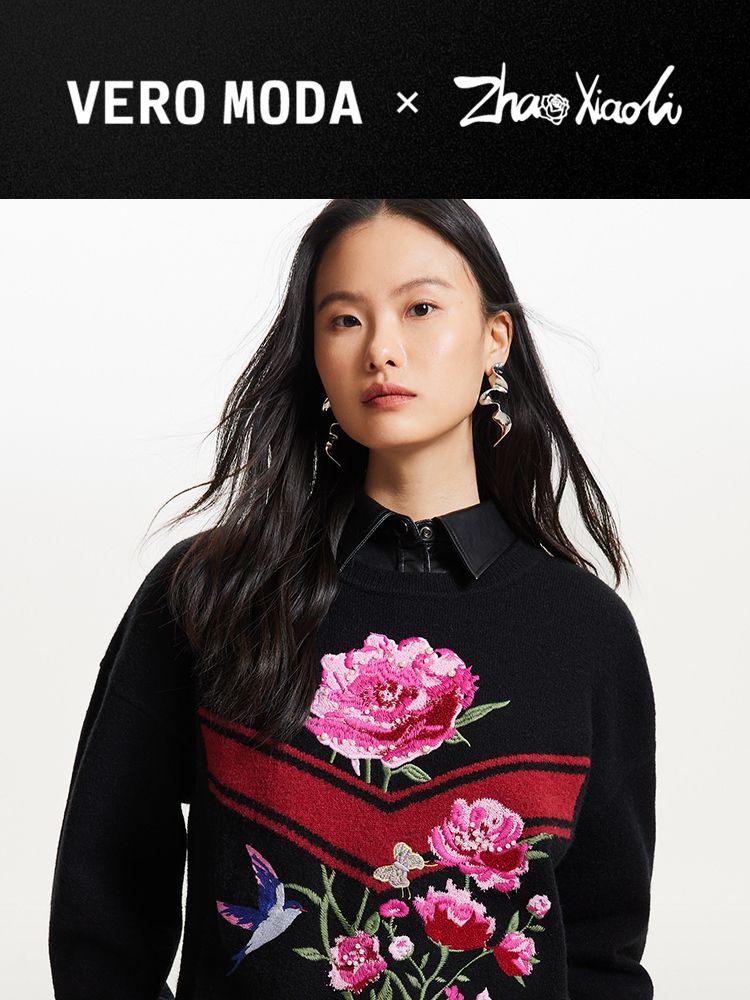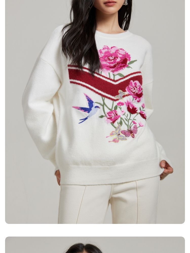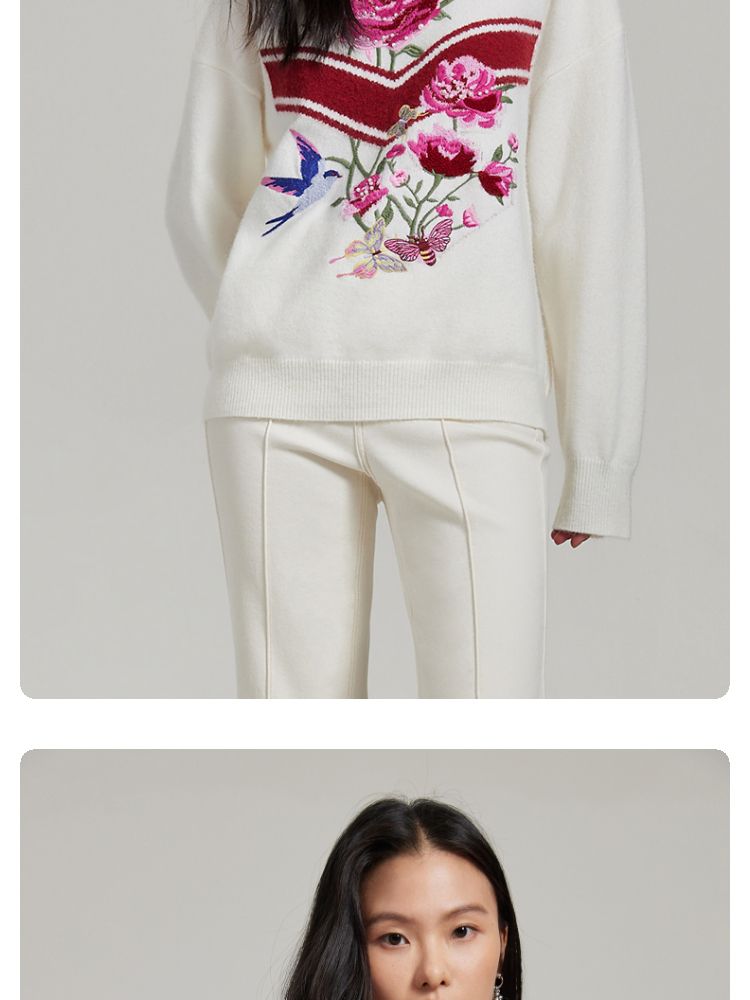 商品名称:【赵小黎艺术家联名系列】圆领花朵提花气质针织衫 493521