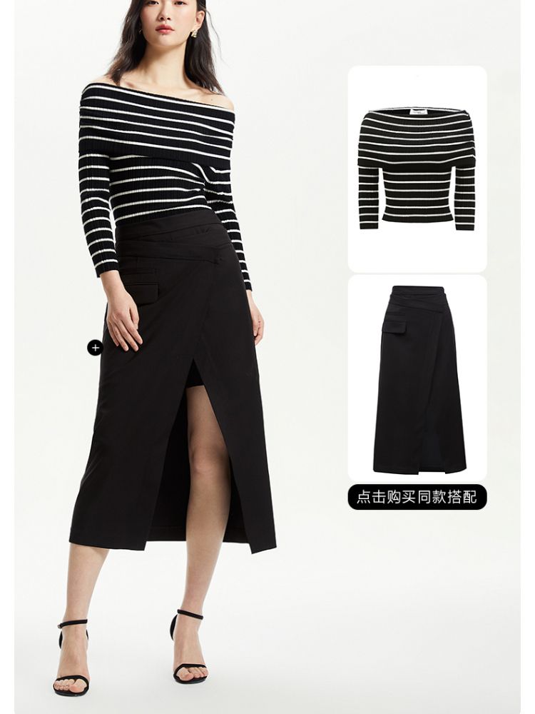 商品名称:针织衫女一字领条纹短款七分袖修身时尚 896273