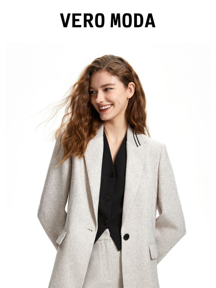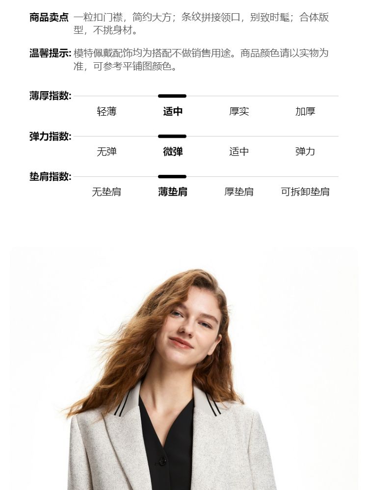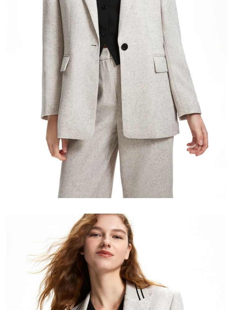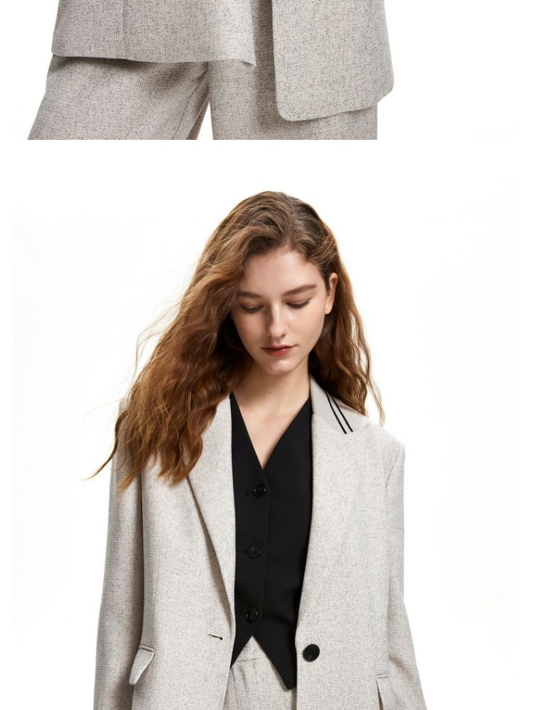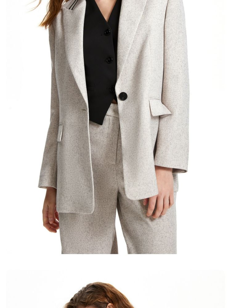 商品名称:西装休闲舒适一粒扣戗驳领九分袖外套女 493393