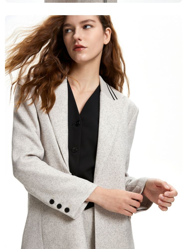 西装休闲舒适一粒扣戗驳领九分袖外套女 493393