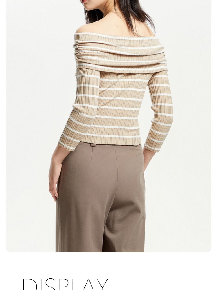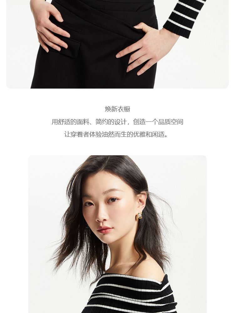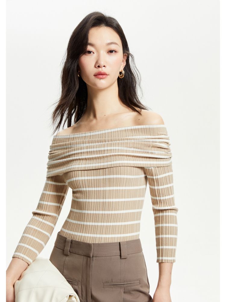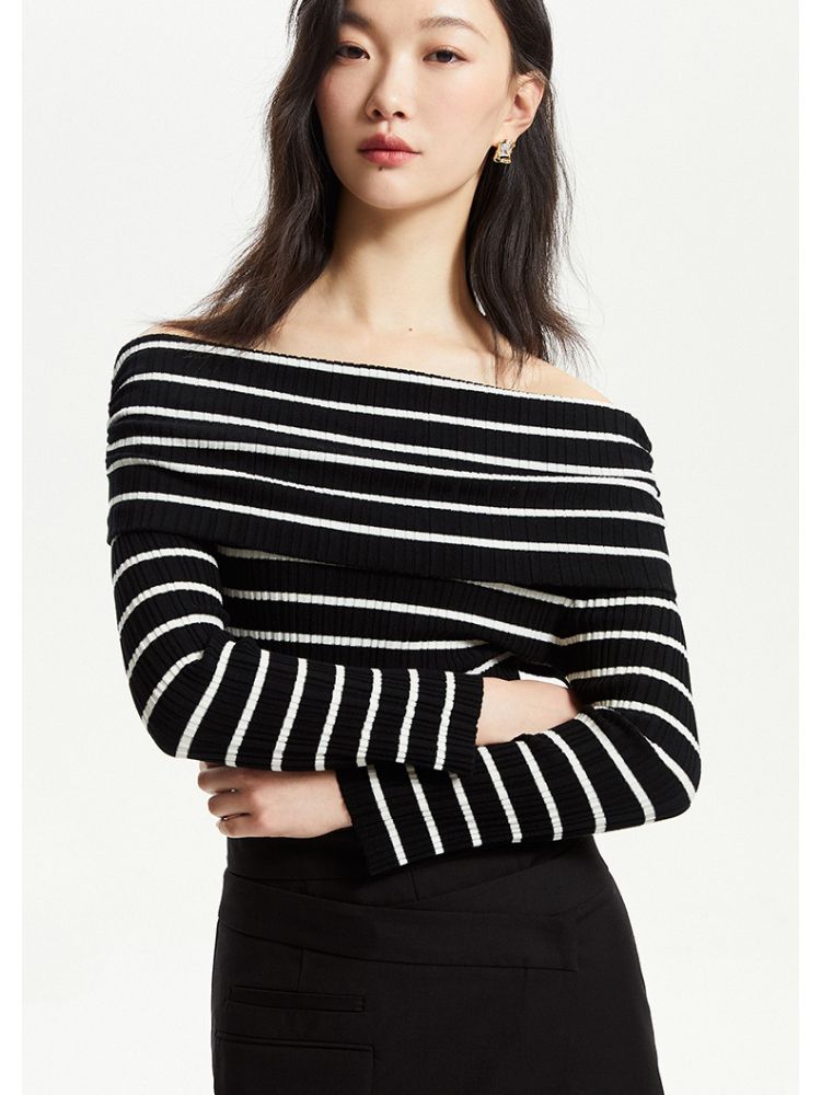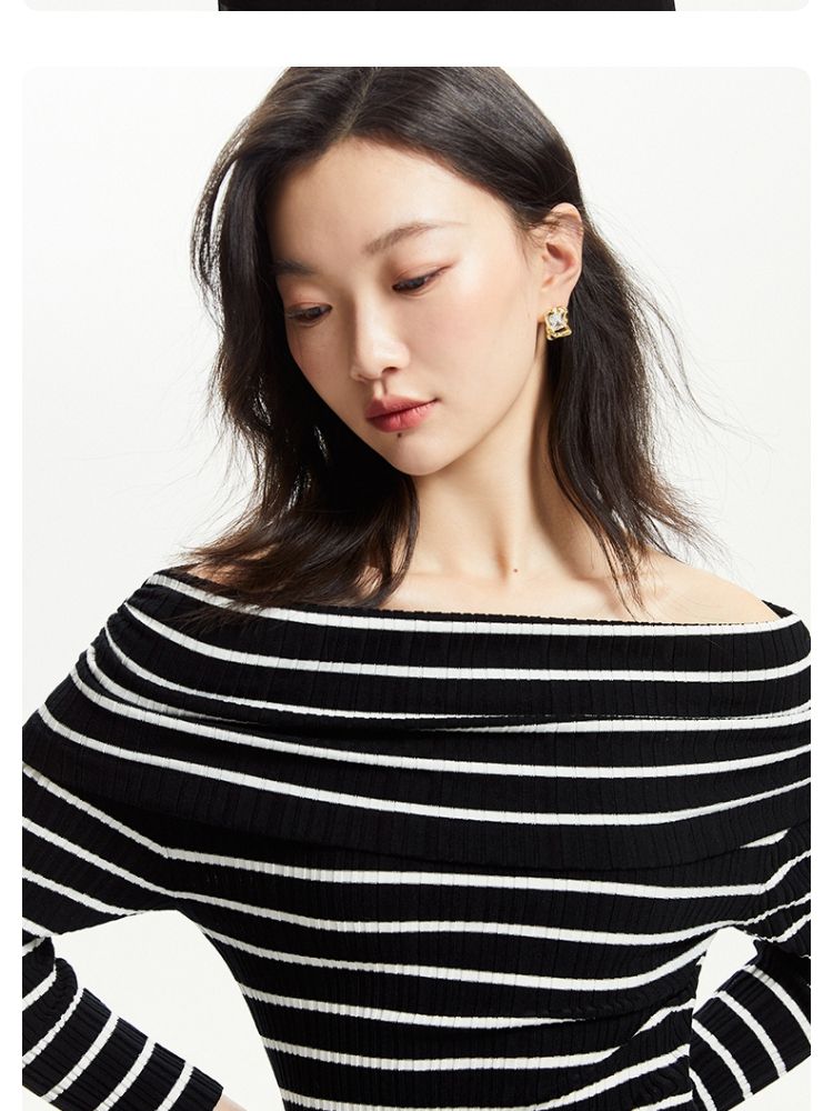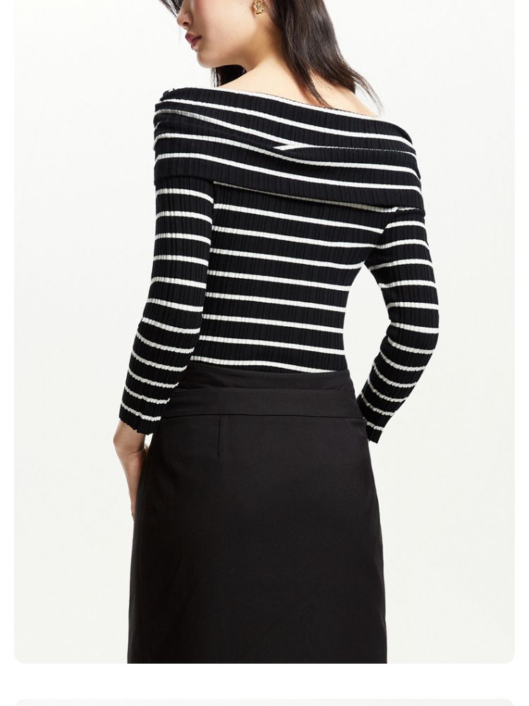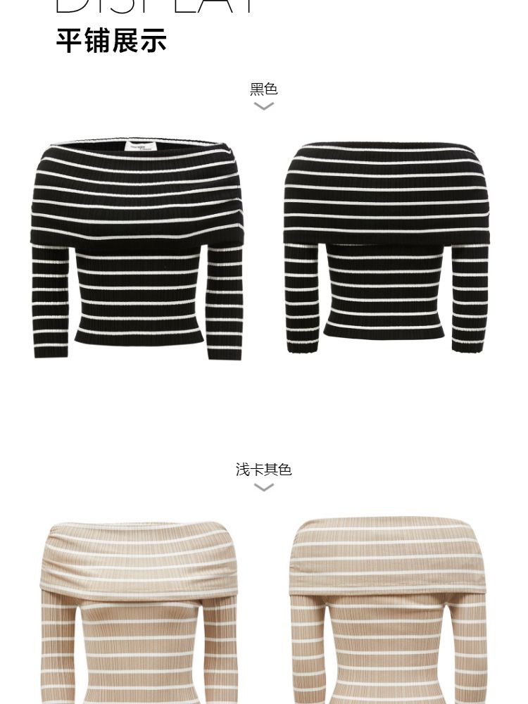 商品名称:针织衫女一字领条纹短款七分袖修身时尚 863505