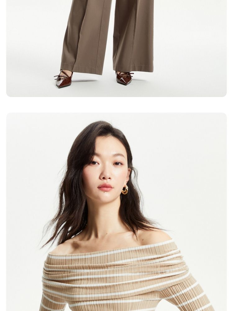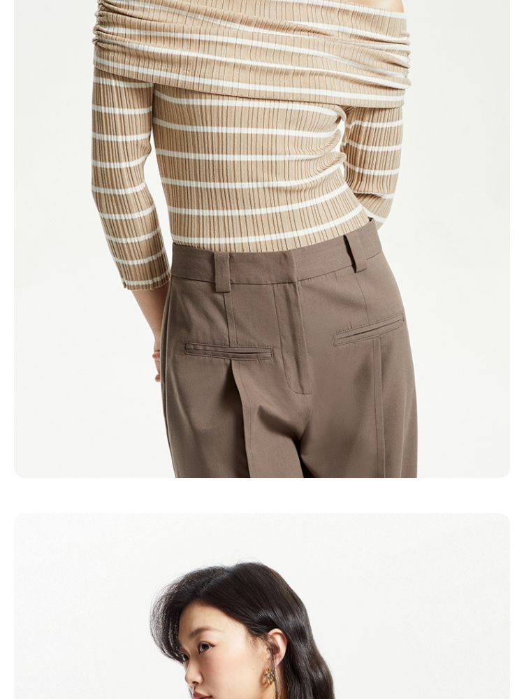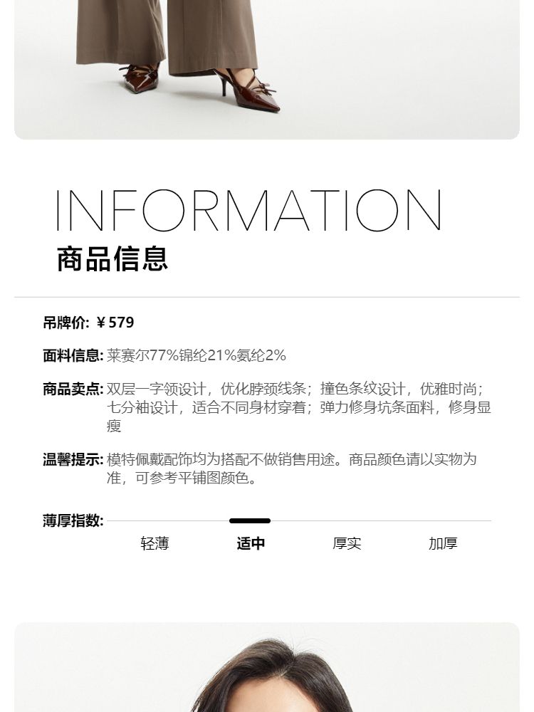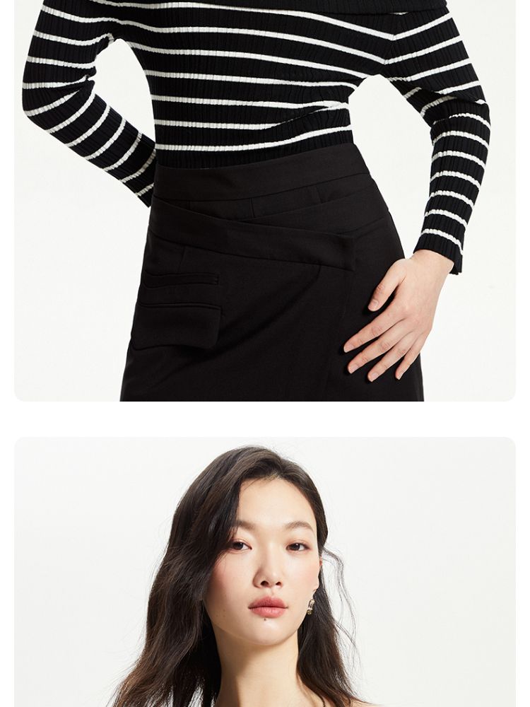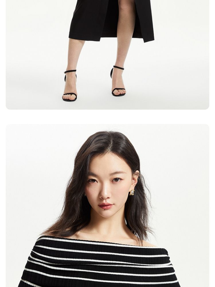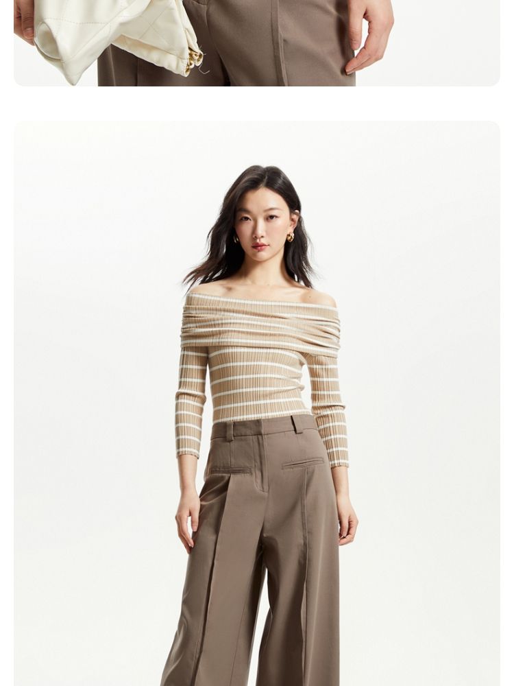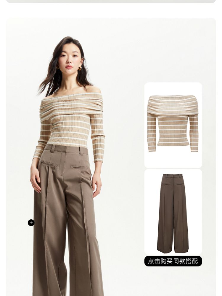 商品名称:针织衫女一字领条纹短款七分袖修身时尚 863505