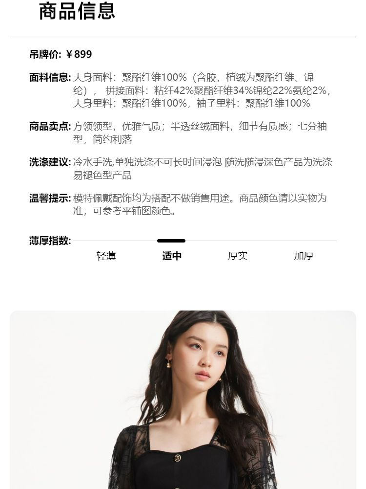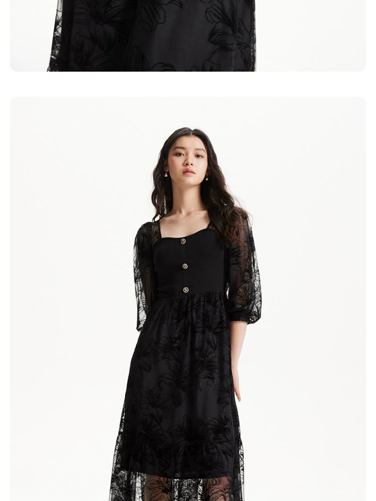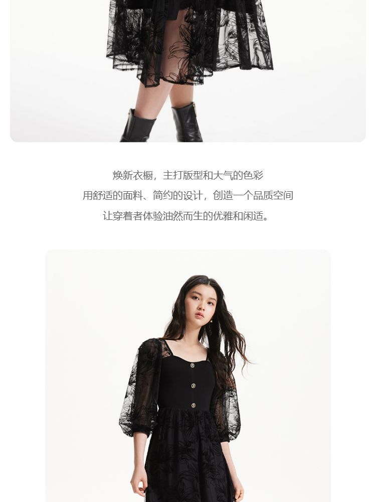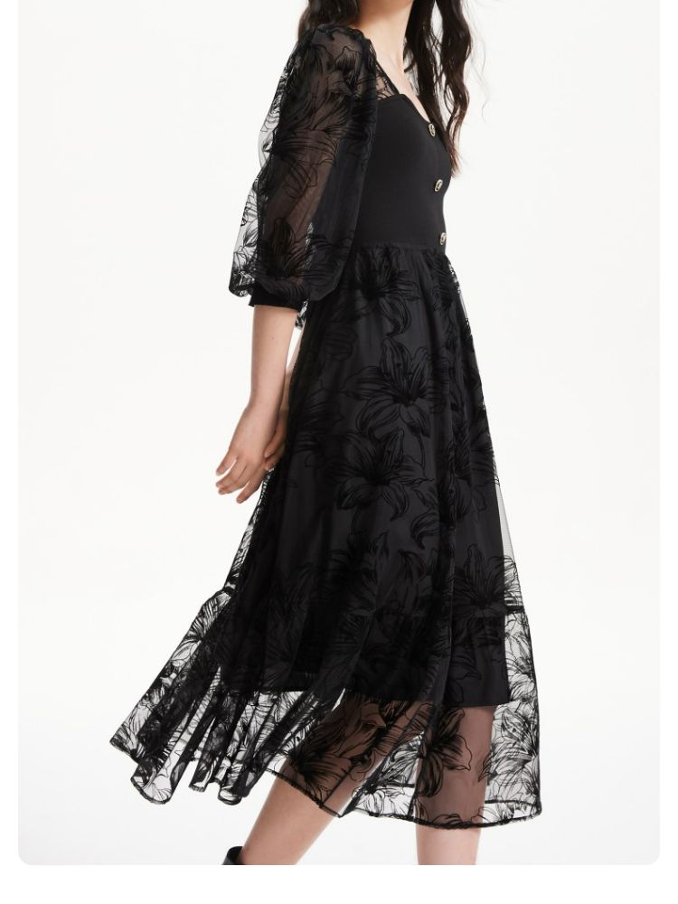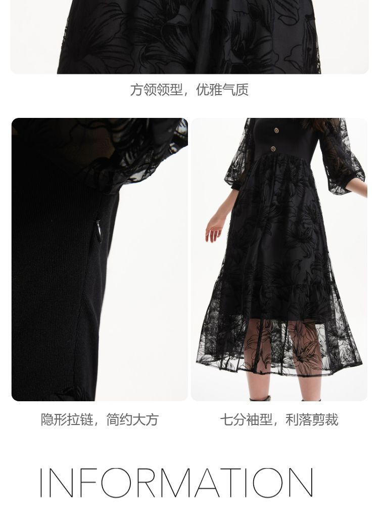 商品名称:连衣裙优雅气质长裙七分袖方领拼接黑色女 987345
