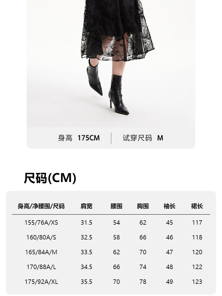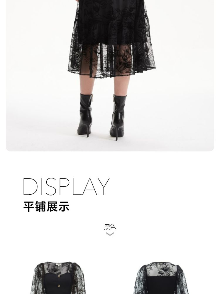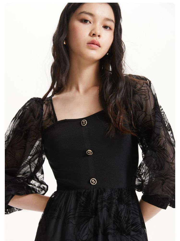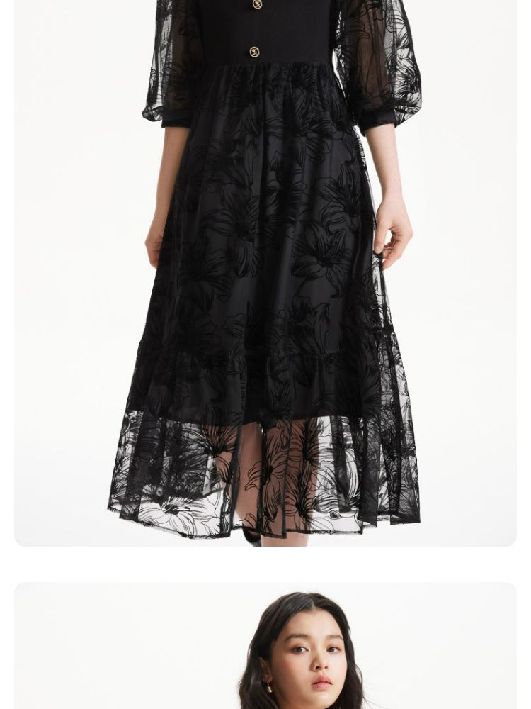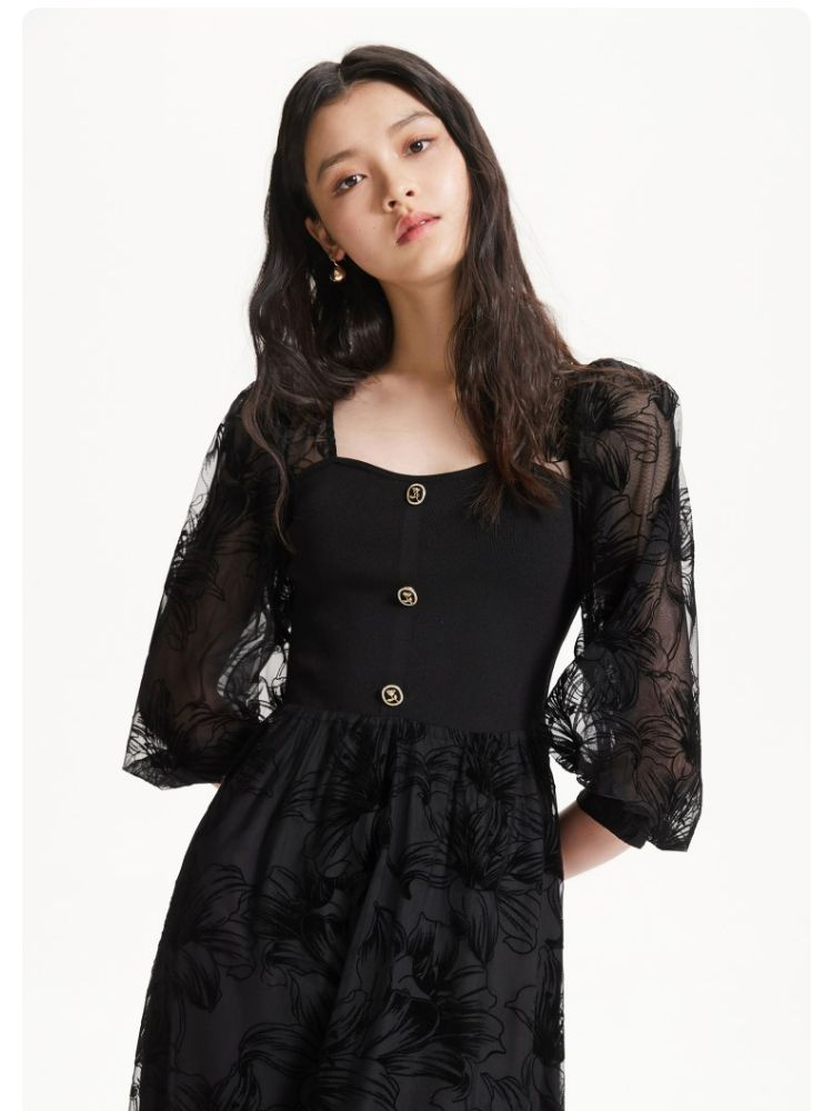 商品名称:连衣裙优雅气质长裙七分袖方领拼接黑色女 987345