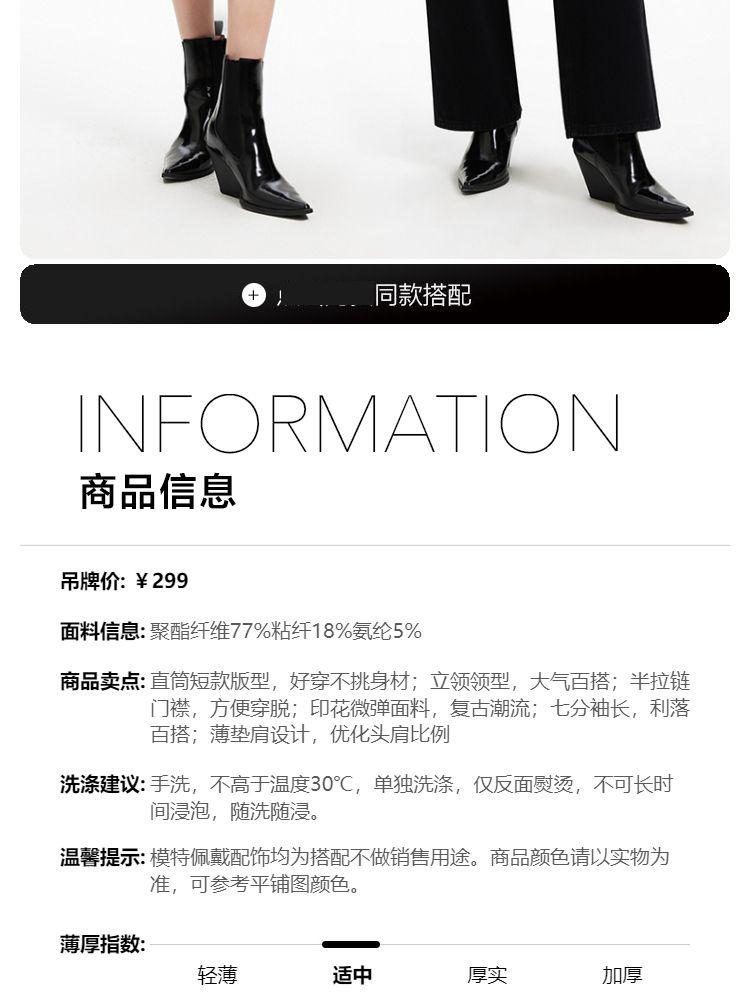 商品名称:上衣女H版型短款立领字母印花七分袖复古 433809