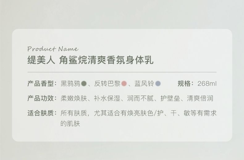 商品名称:缇美人 角鲨烷四季香氛身体乳