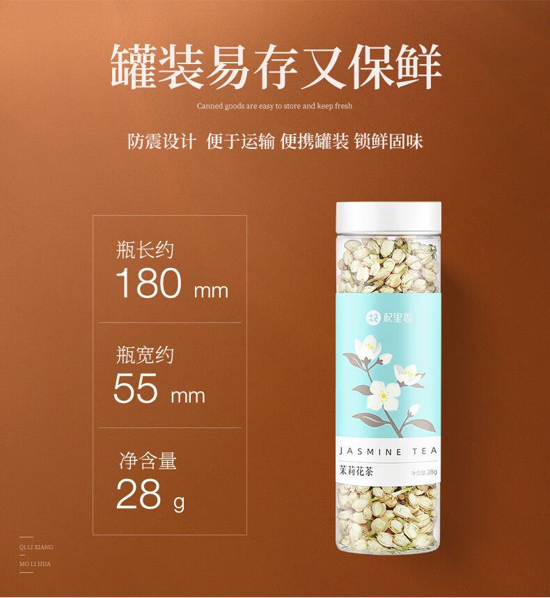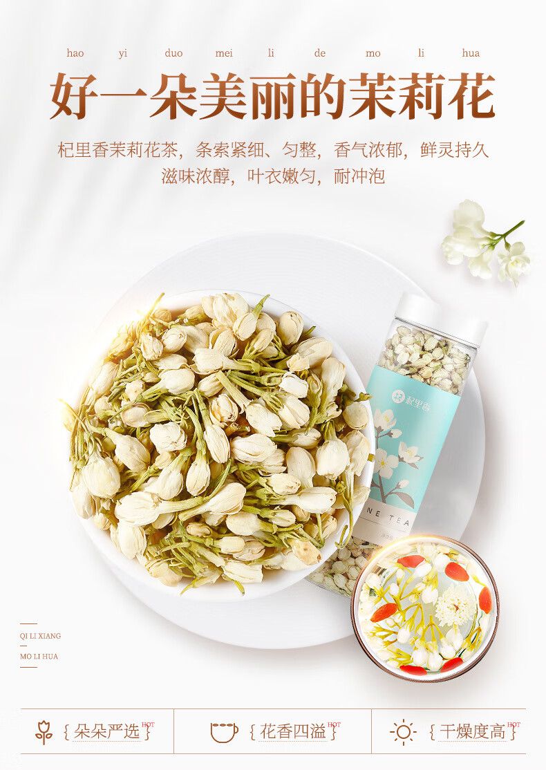 商品名称:3罐杞里香茉莉花茶新茶广西28g*1罐茉莉花苞茶鲜花干浓香型花草茶叶