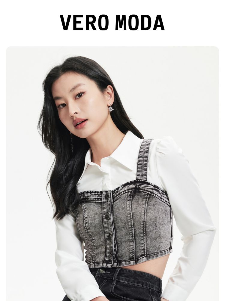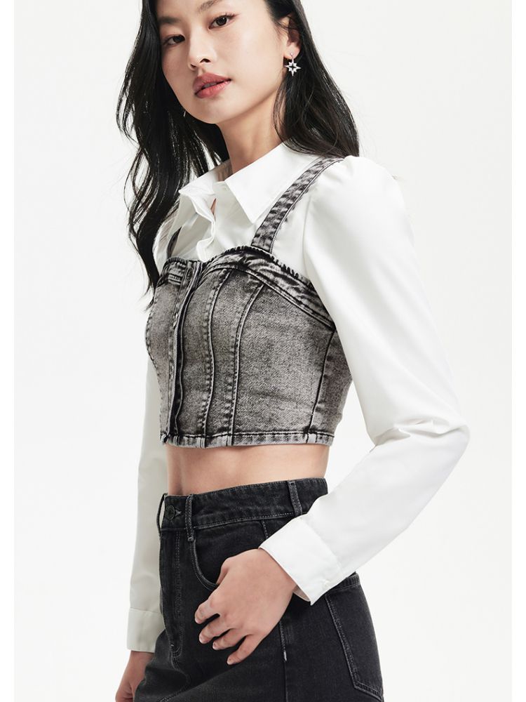 【牛仔拼接】衬衫女假两件拼接修身显瘦九分袖上衣 459601