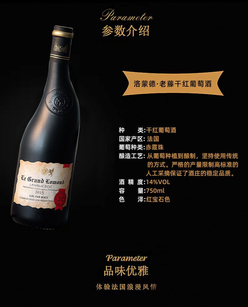 商品名称:法国进口洛蒙德歪脖子红酒750ml*4瓶装