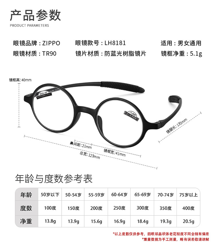 商品名称:圆框复古优雅老花镜男女防蓝光高清显年轻女式老花眼镜花镜女士 108510
