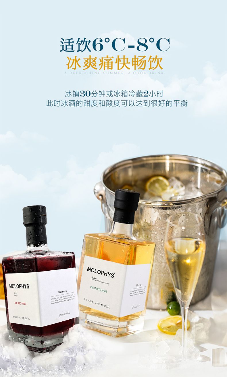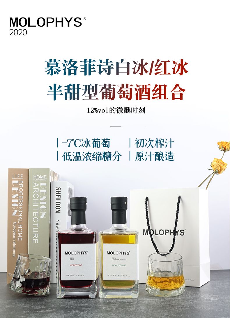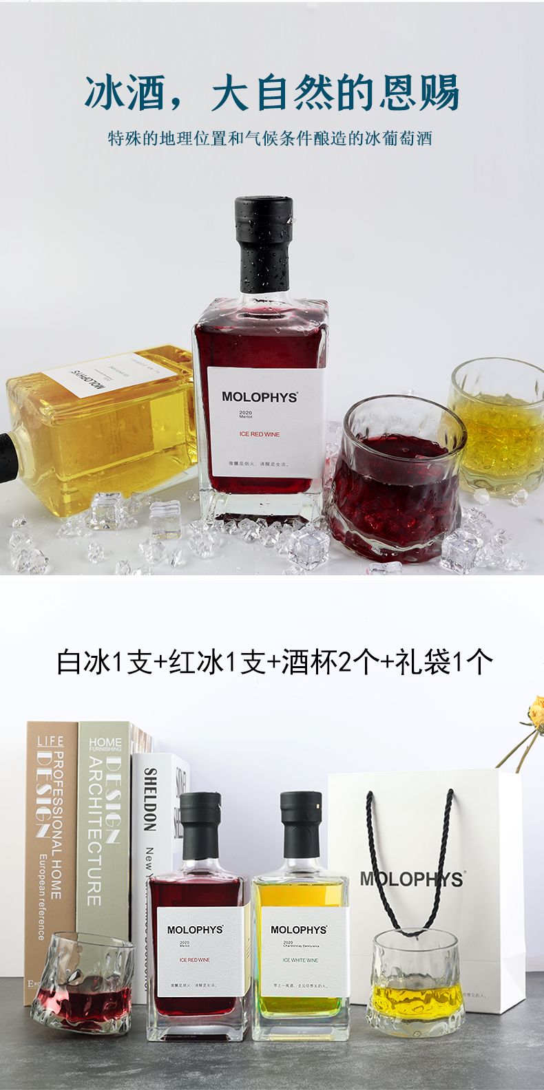 慕洛菲诗白冰/红冰12度 半甜型葡萄酒组合500ml*2瓶+2个杯子+礼品袋