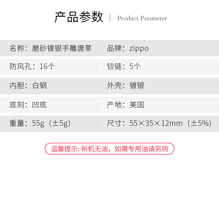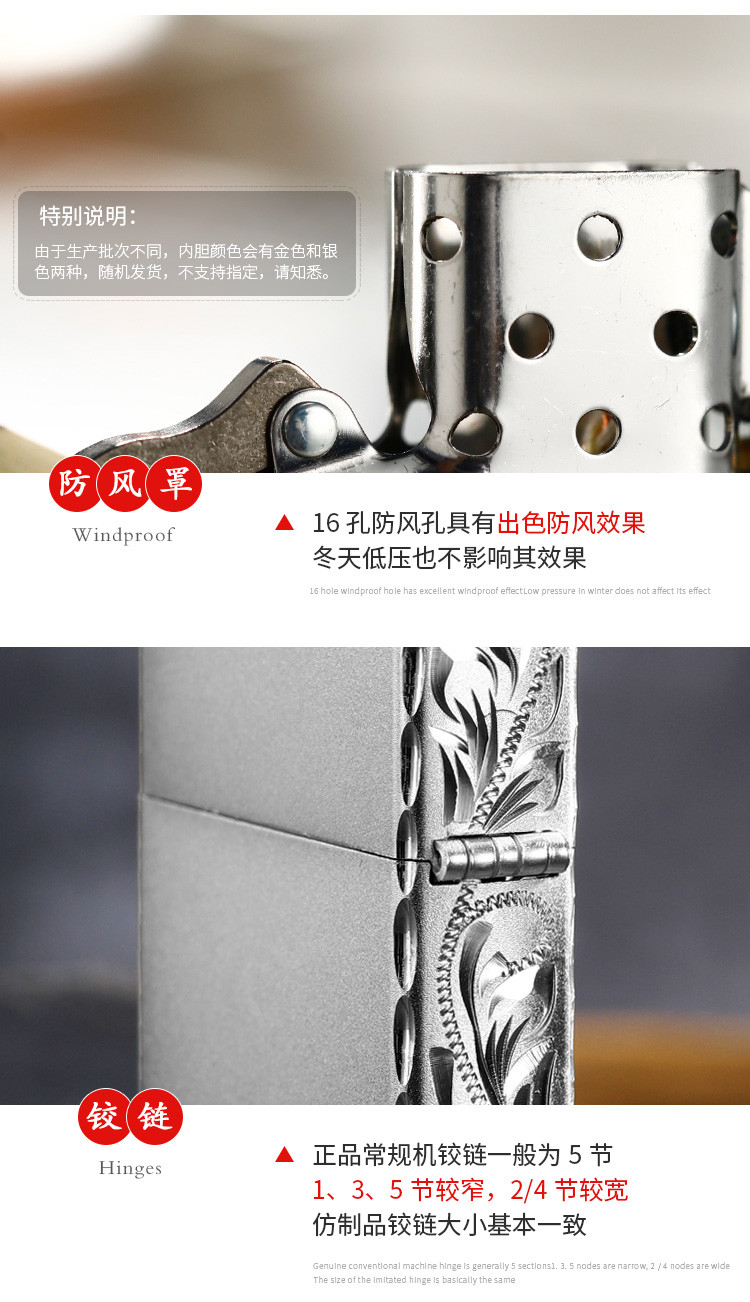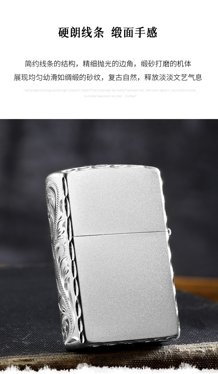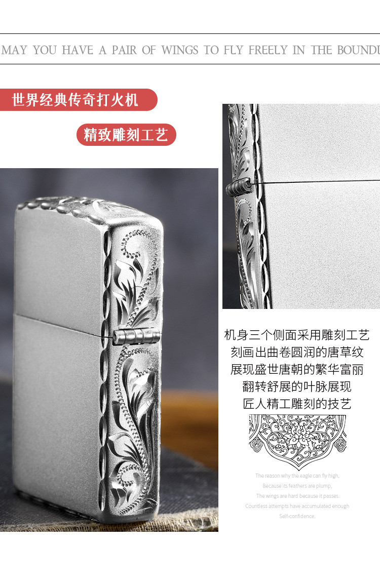 商品名称:【送礼好物】正版煤油打火机套装磨砂镀银咬边手雕唐草礼物礼品 846494