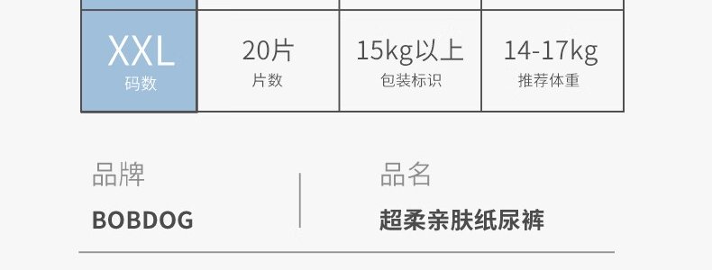 商品名称:巴布豆(BOBDOG)小波浪薄柔亲肤纸尿裤 L26(9-14kg)