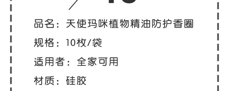 商品名称:天使玛咪 植物精油防护香圈10条/袋