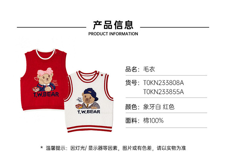 商品名称:小熊童装男女宝宝秋季可爱小熊针织背心 811009