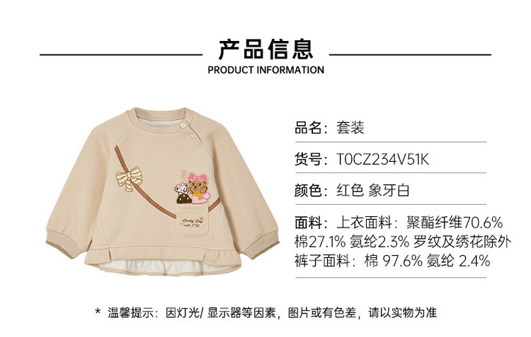 商品名称:小熊童装春季女宝宝银狐绒卫衣打底套装 892673