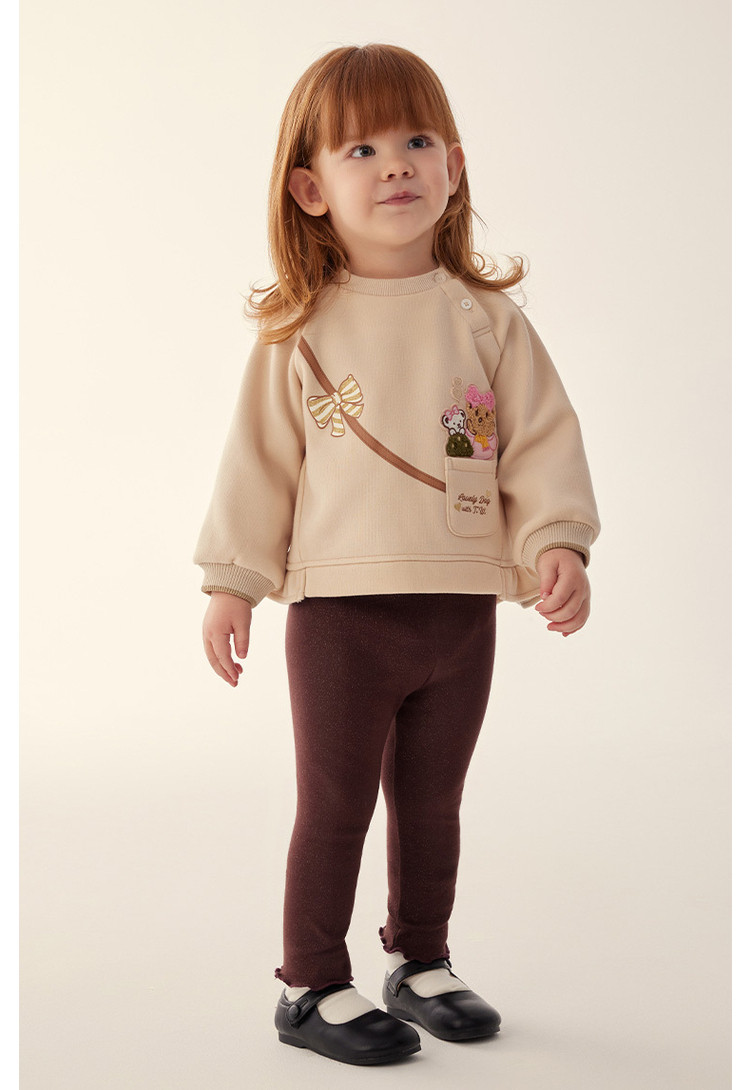 小熊童装春季女宝宝银狐绒卫衣打底套装 892673