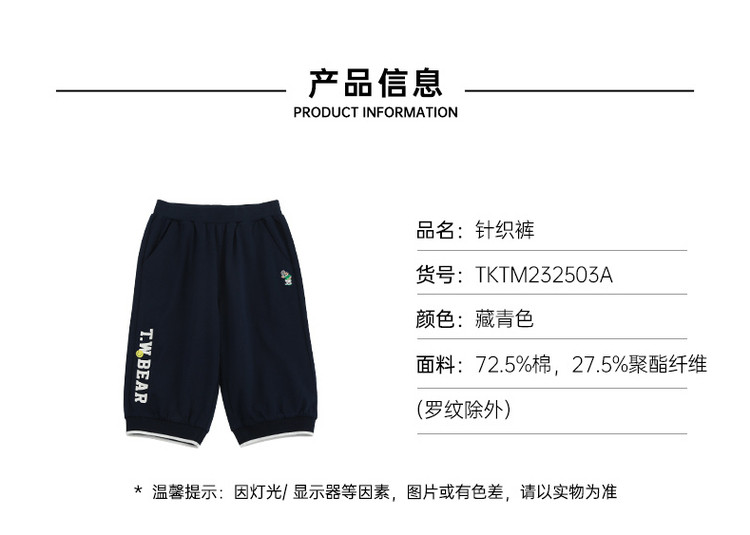 商品名称:小熊童装男童夏凉感冰感运动束脚针织裤 906945