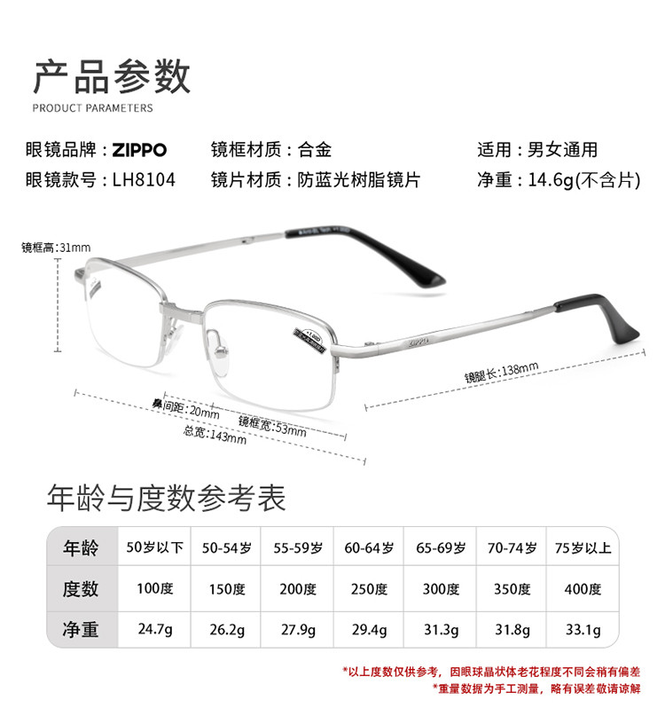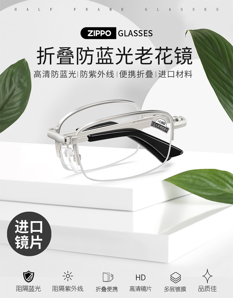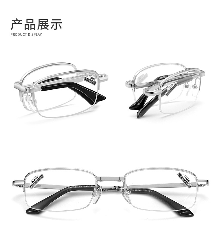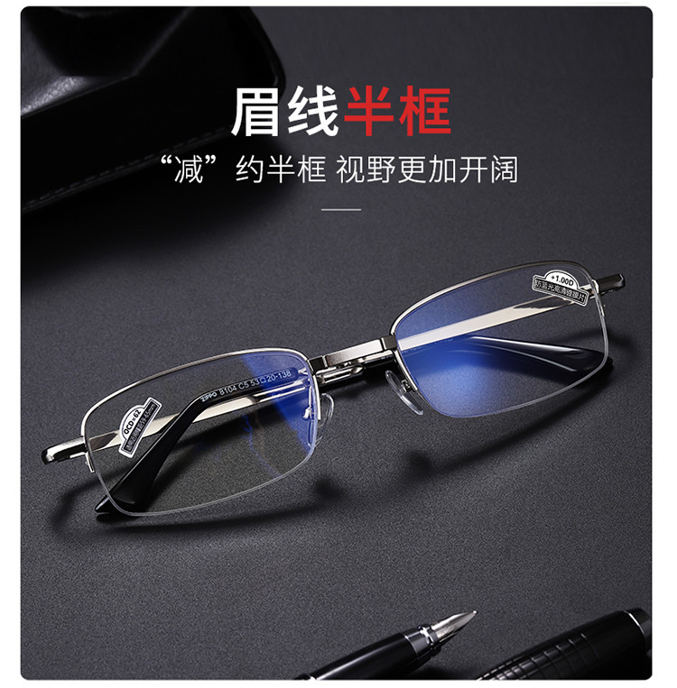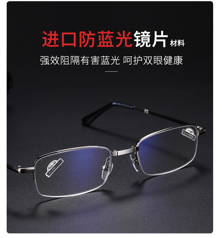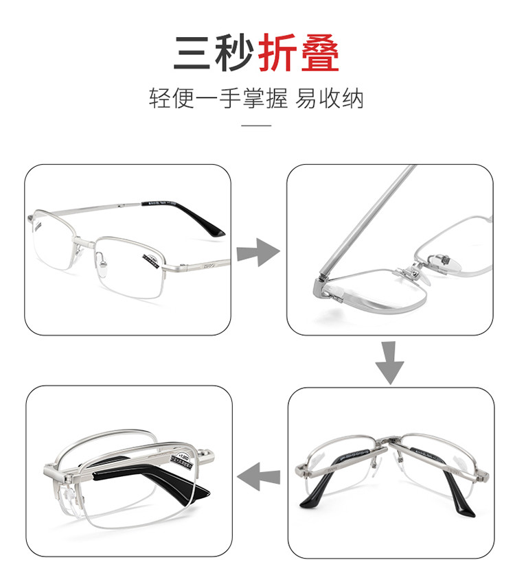 商品名称:便捷式折叠老花镜男女高清防蓝光超轻显年轻老人老花眼镜金属半框 577630