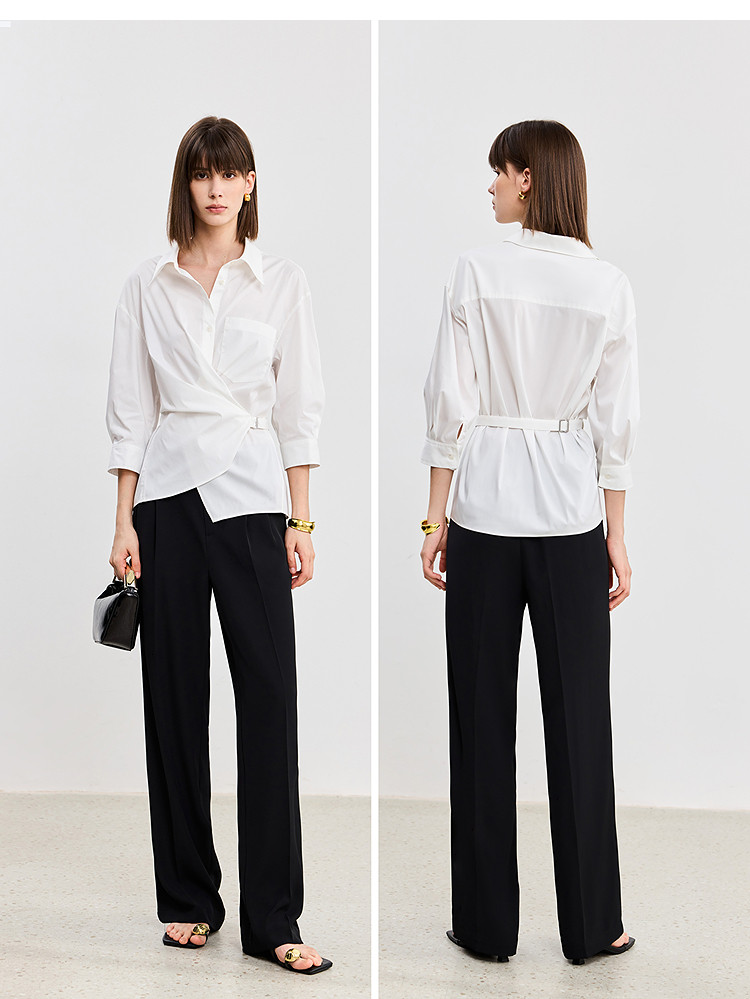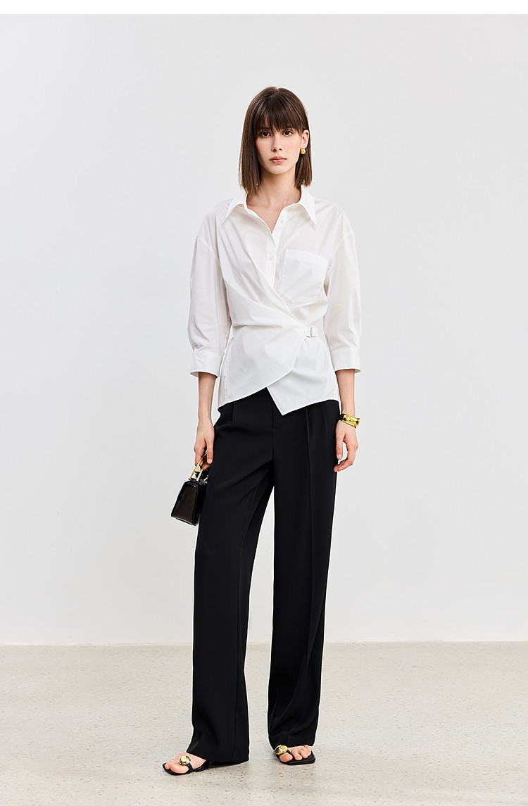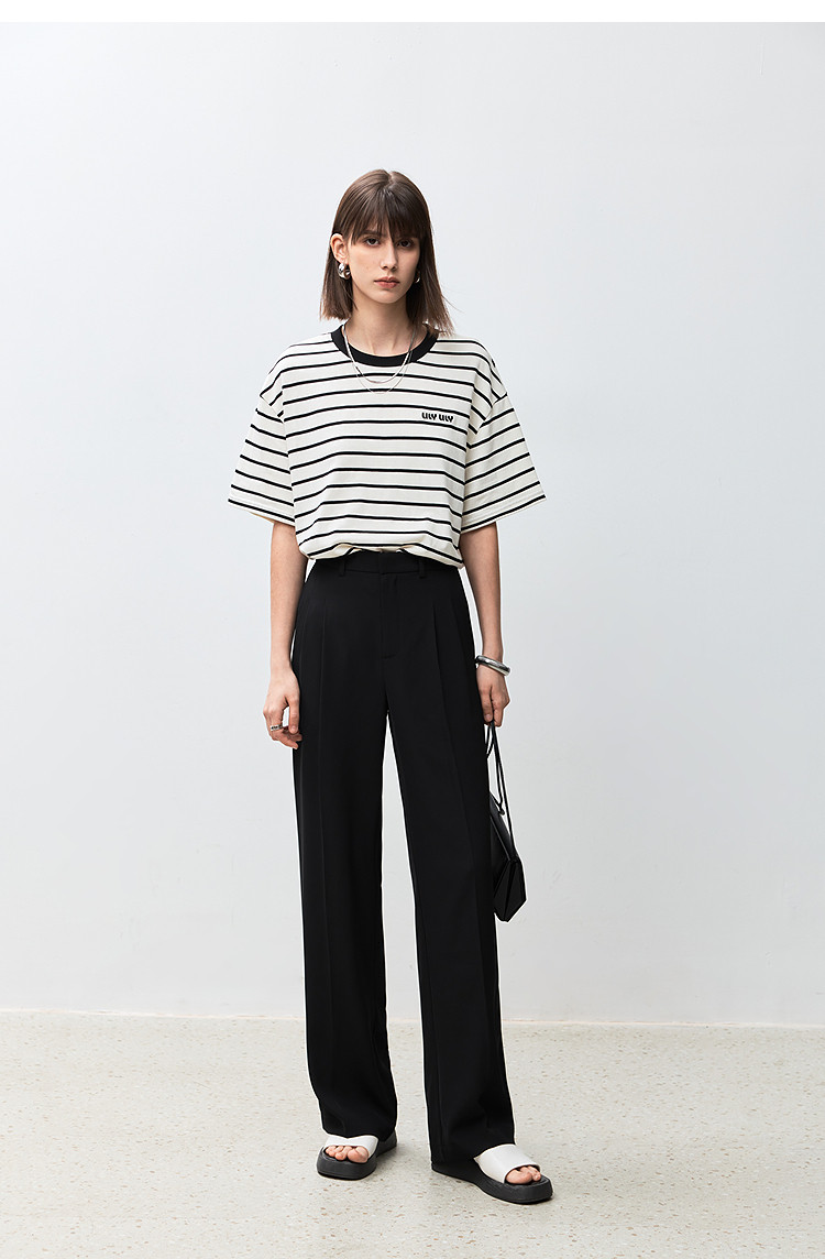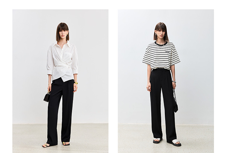 商品名称:【凉凉裤】春季款裤子女显瘦高腰垂感透气窄版阔腿休闲裤女 066651