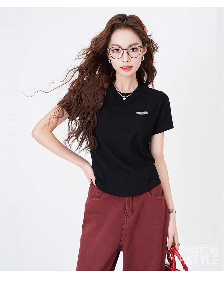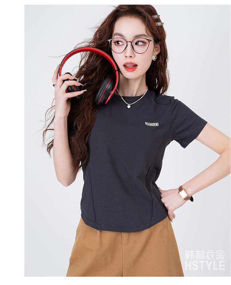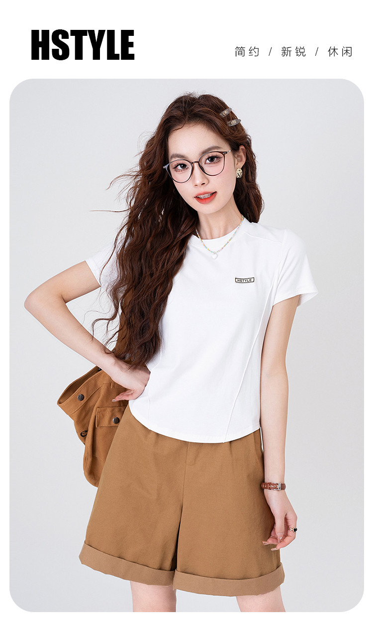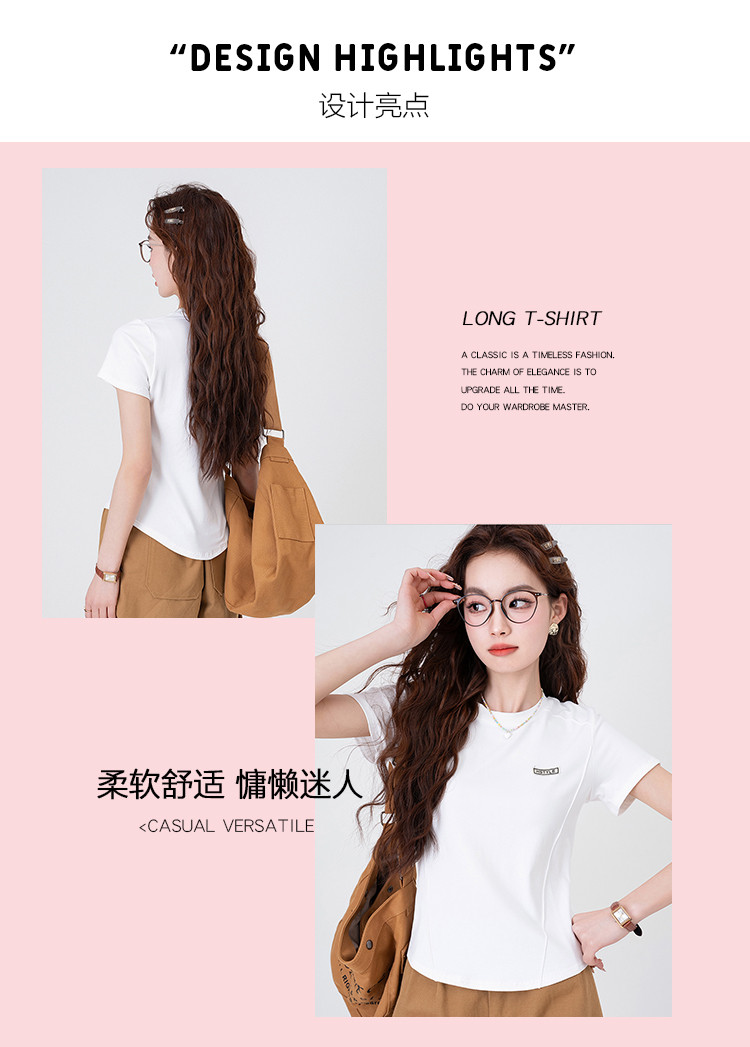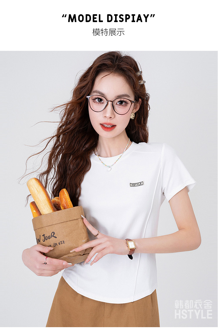 圆弧下摆女式t恤夏季纯色短袖女打底休闲圆领上衣女 169035