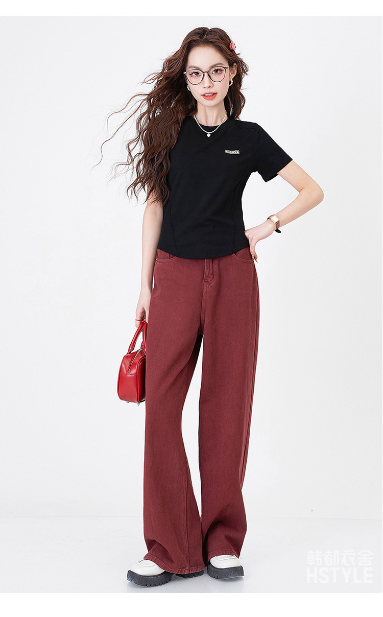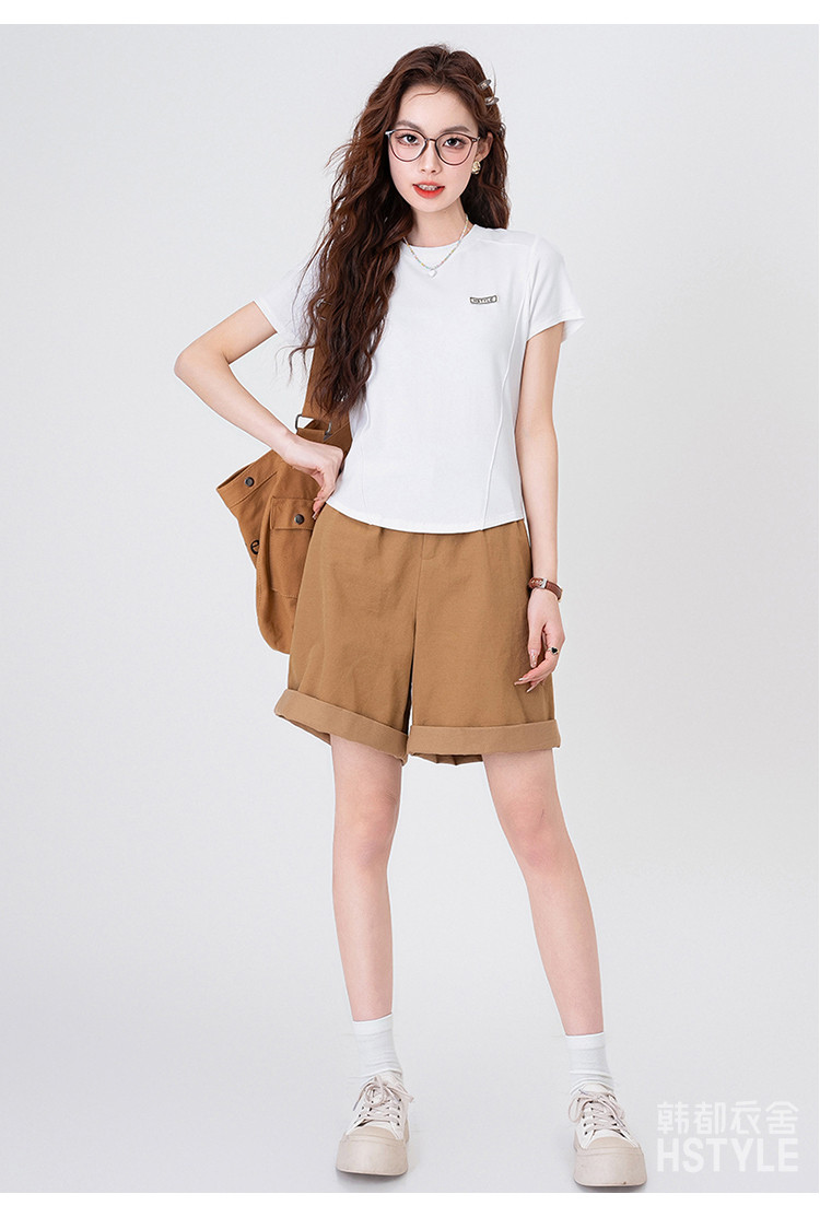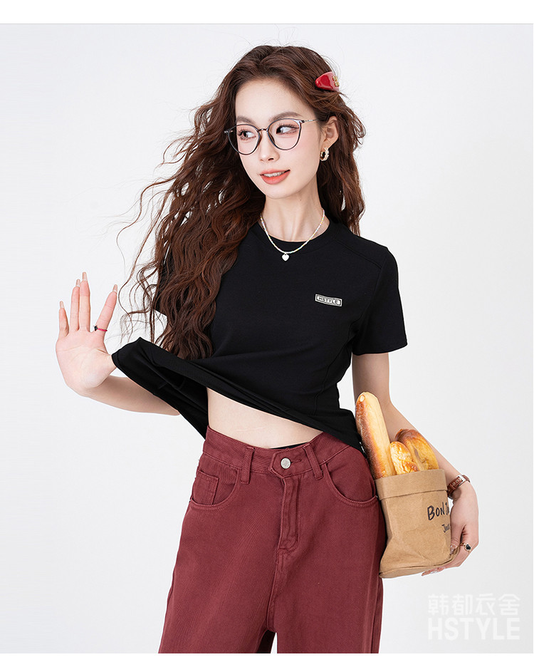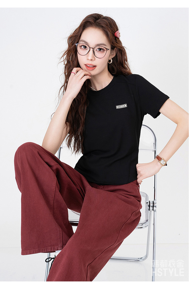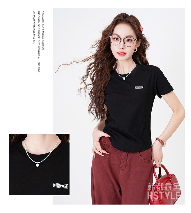 圆弧下摆女式t恤夏季纯色短袖女打底休闲圆领上衣女 169035