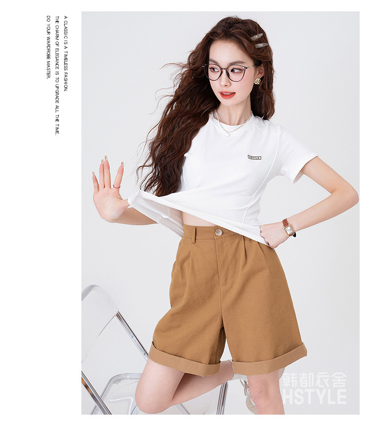 商品名称:圆弧下摆女式t恤夏季纯色短袖女打底休闲圆领上衣女 169035