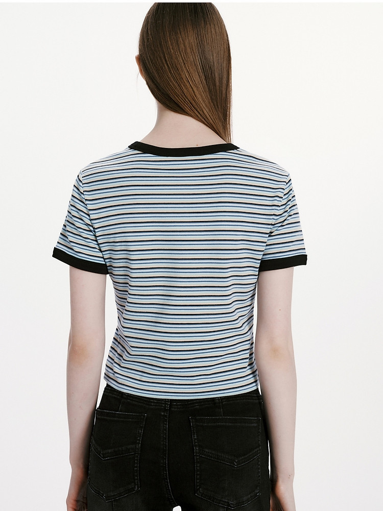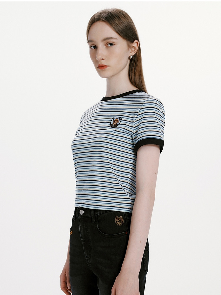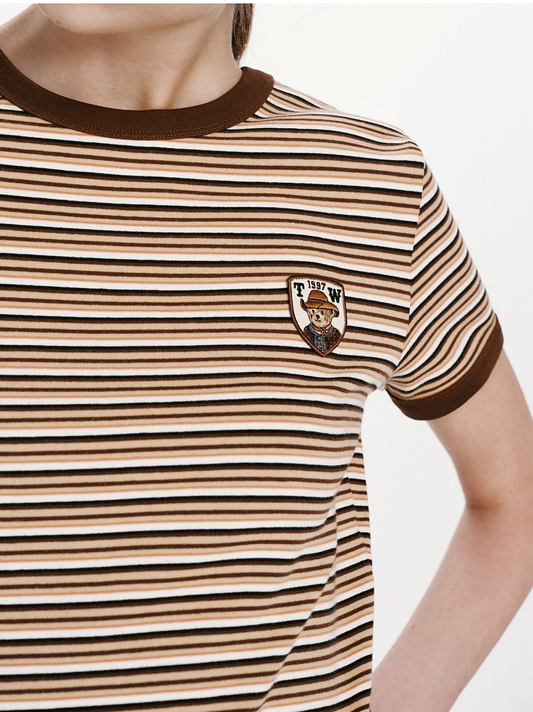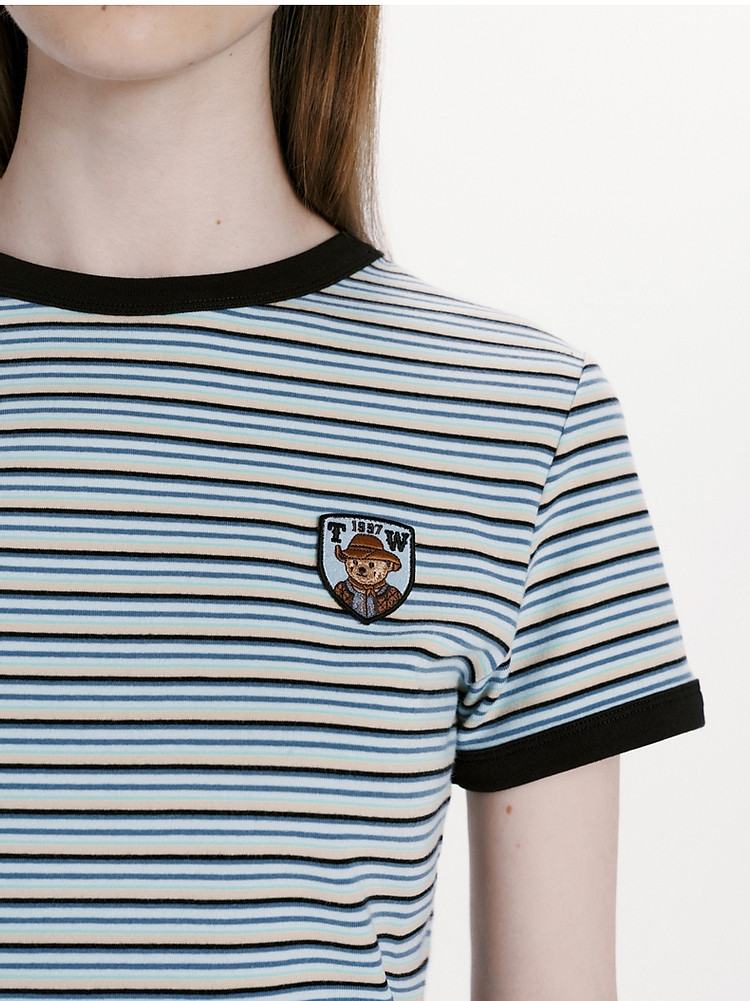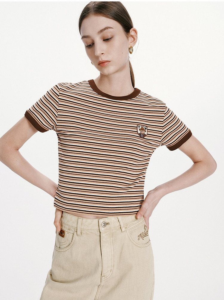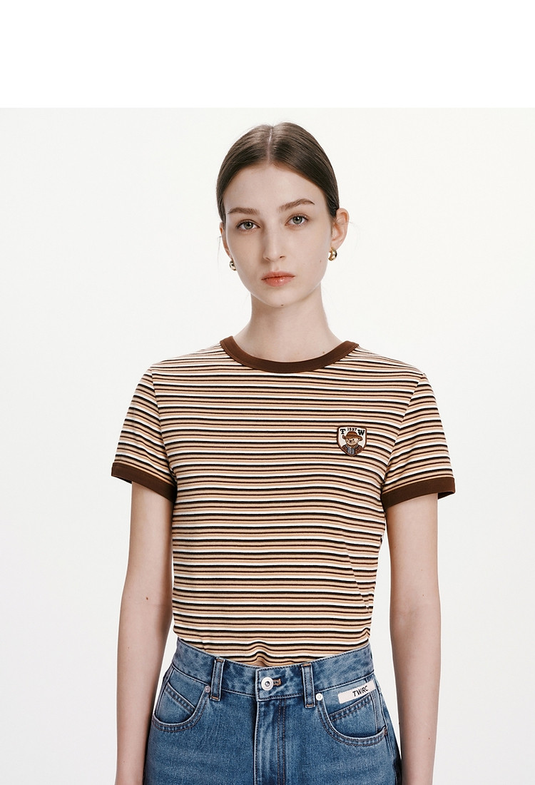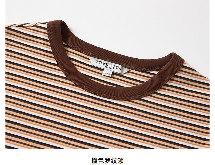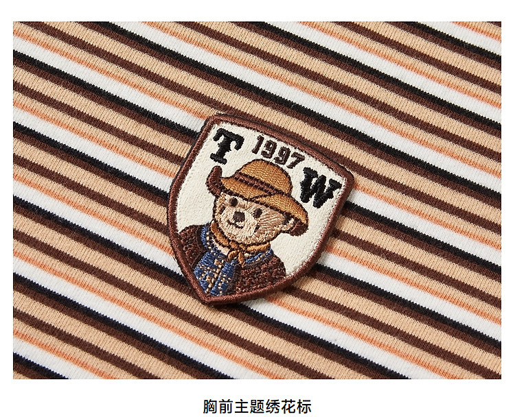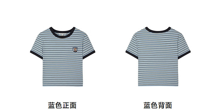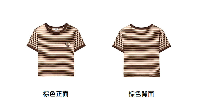 商品名称:小熊女装春款慵懒风美拉德条纹短款T恤上衣 769217
