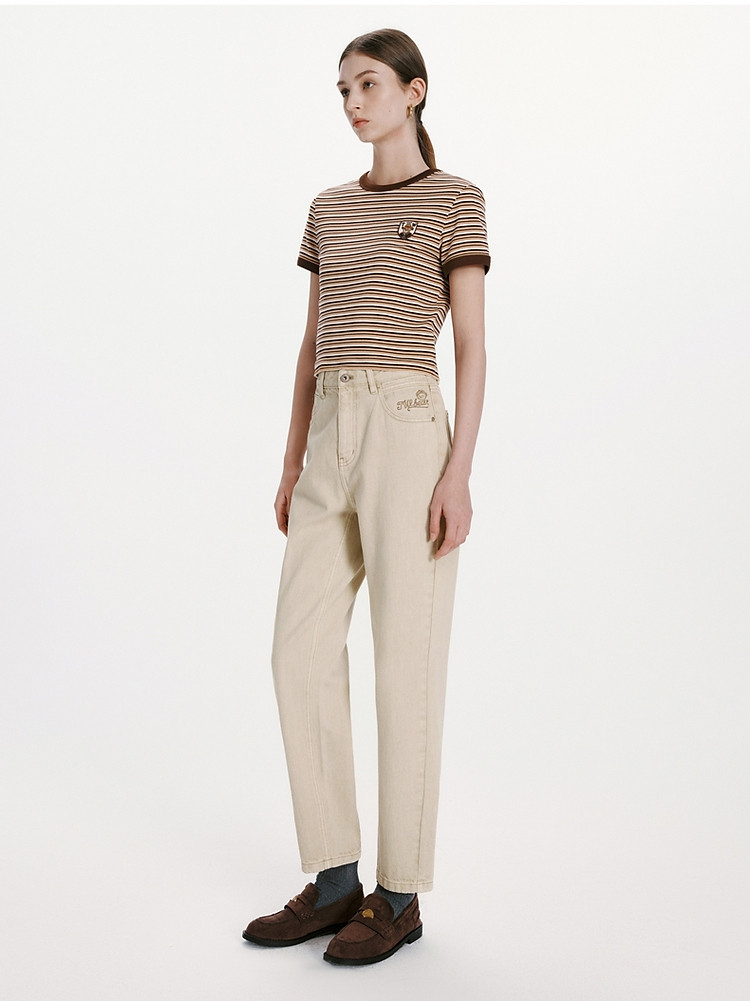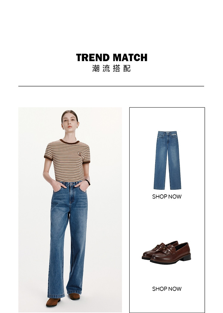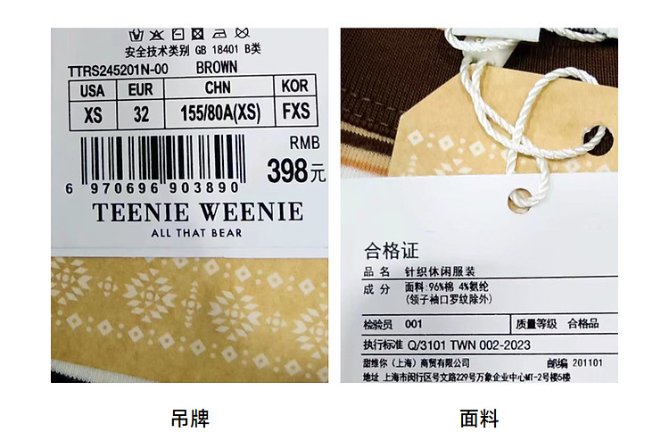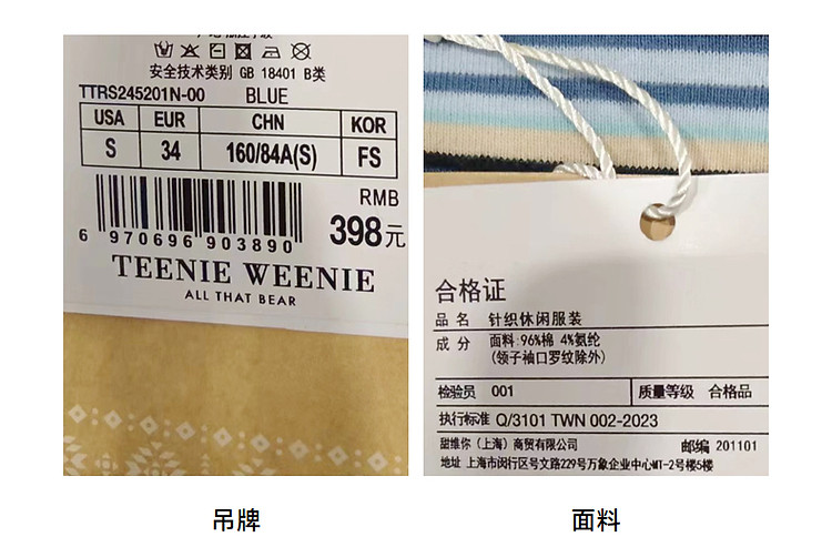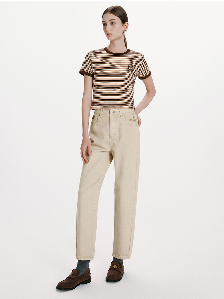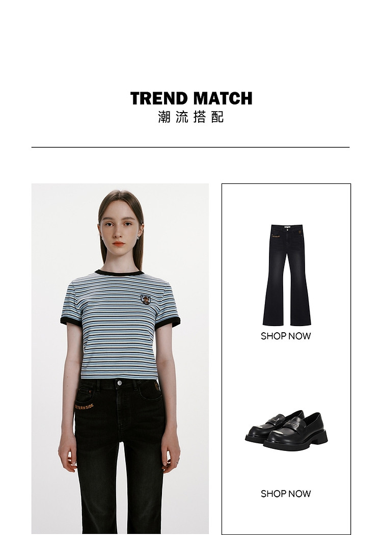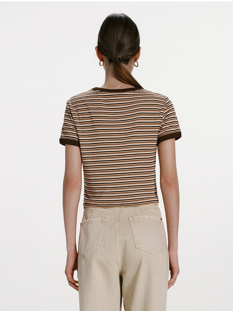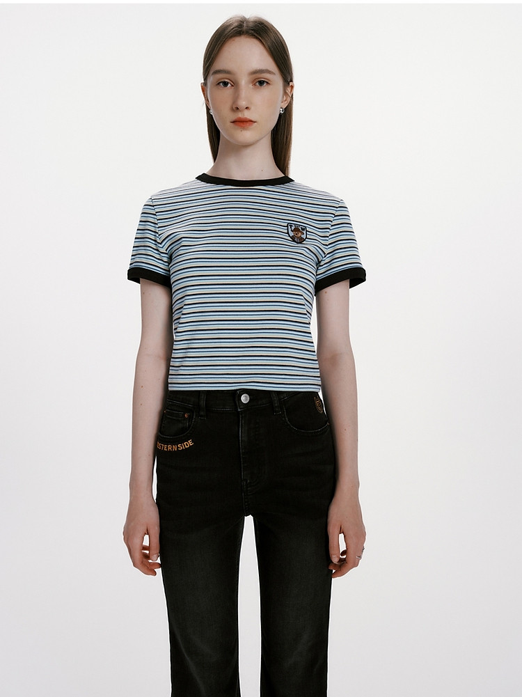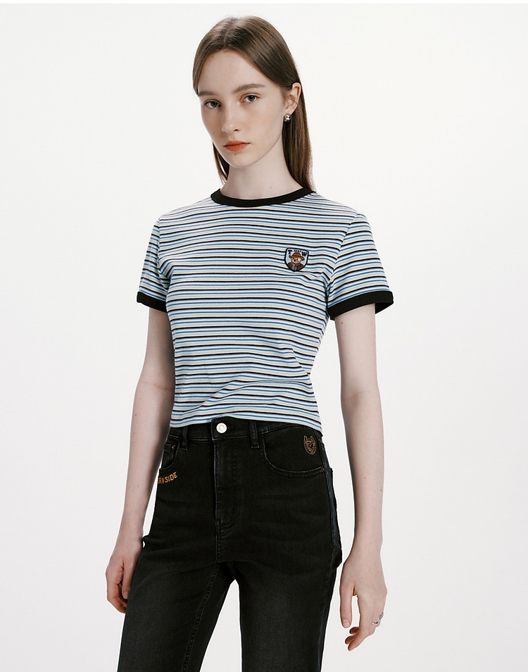 商品名称:小熊女装春款慵懒风美拉德条纹短款T恤上衣 769217
