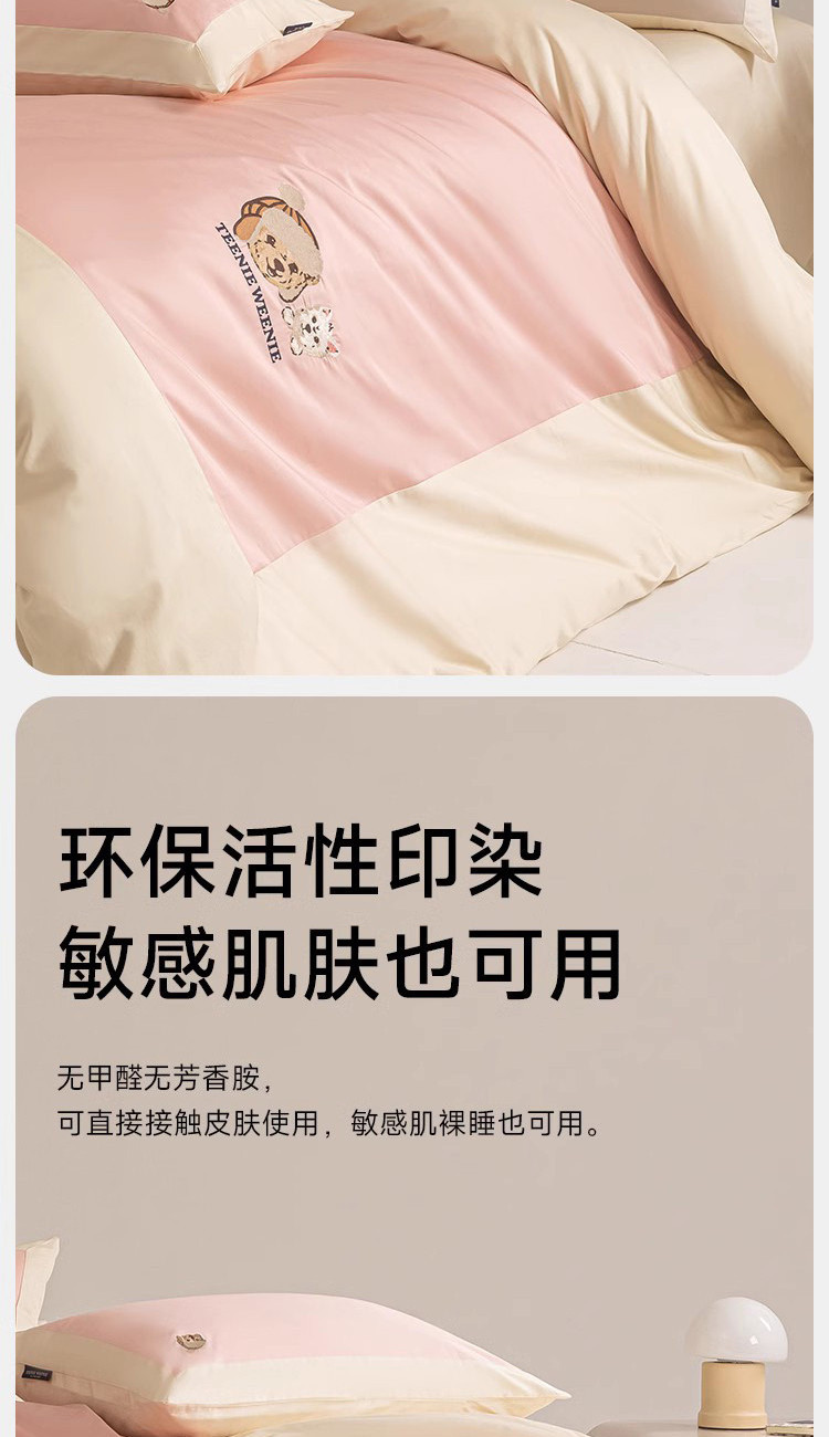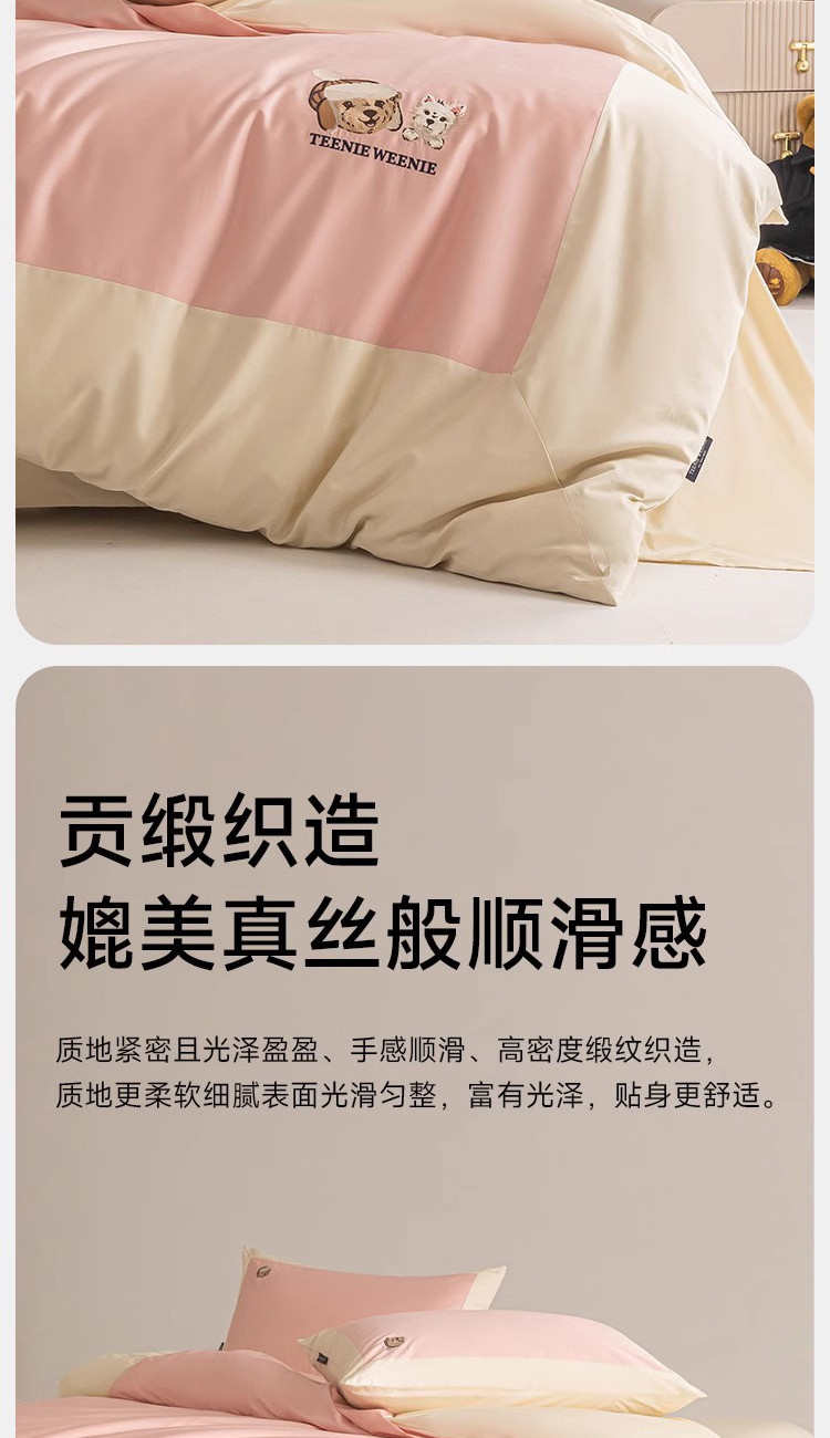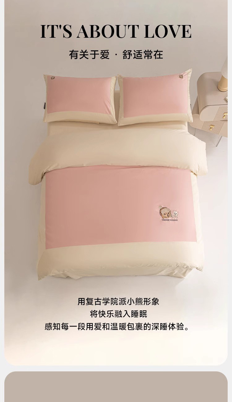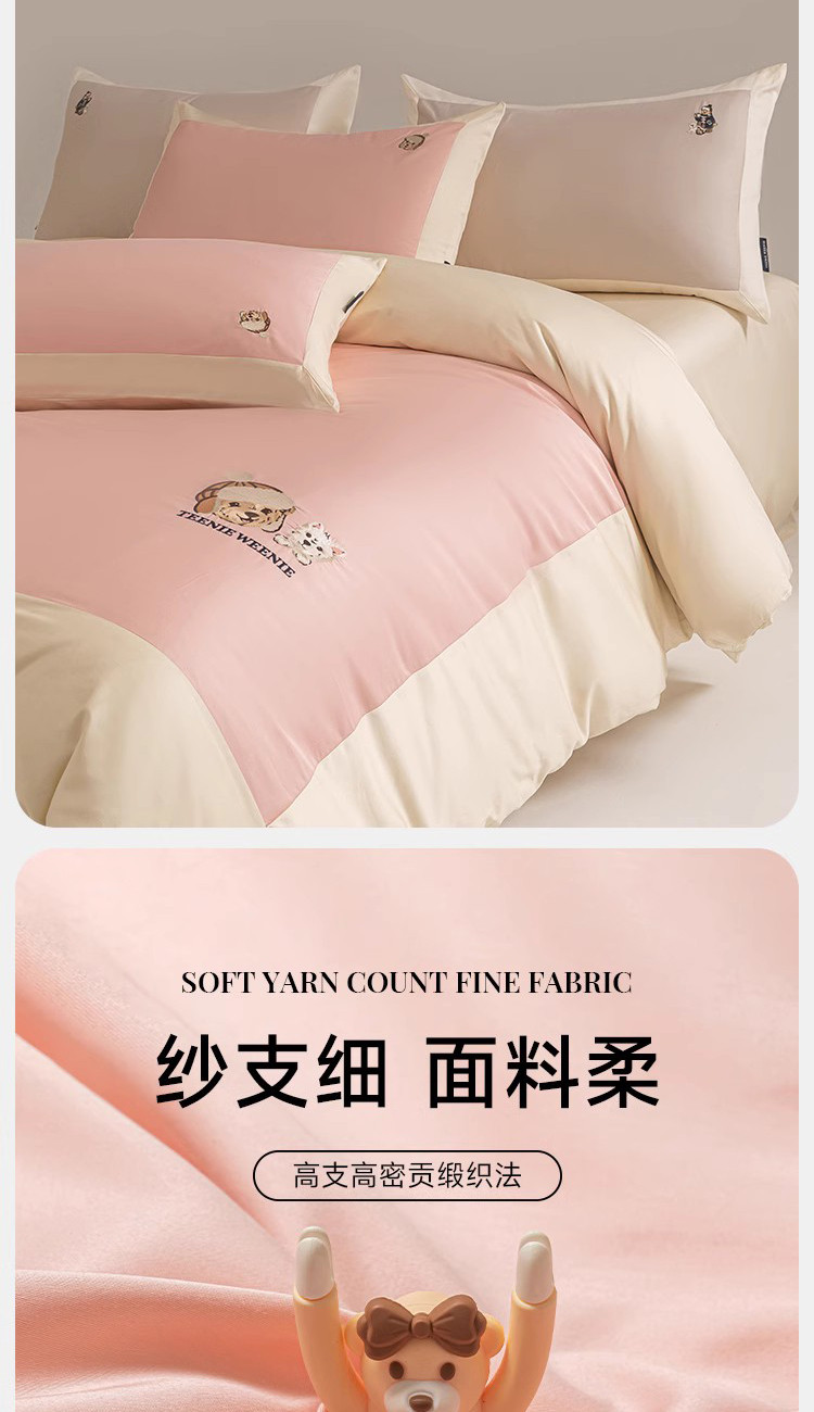 【轻奢贡缎】小熊100支长绒棉四件套春夏100棉被套床单送礼 221788