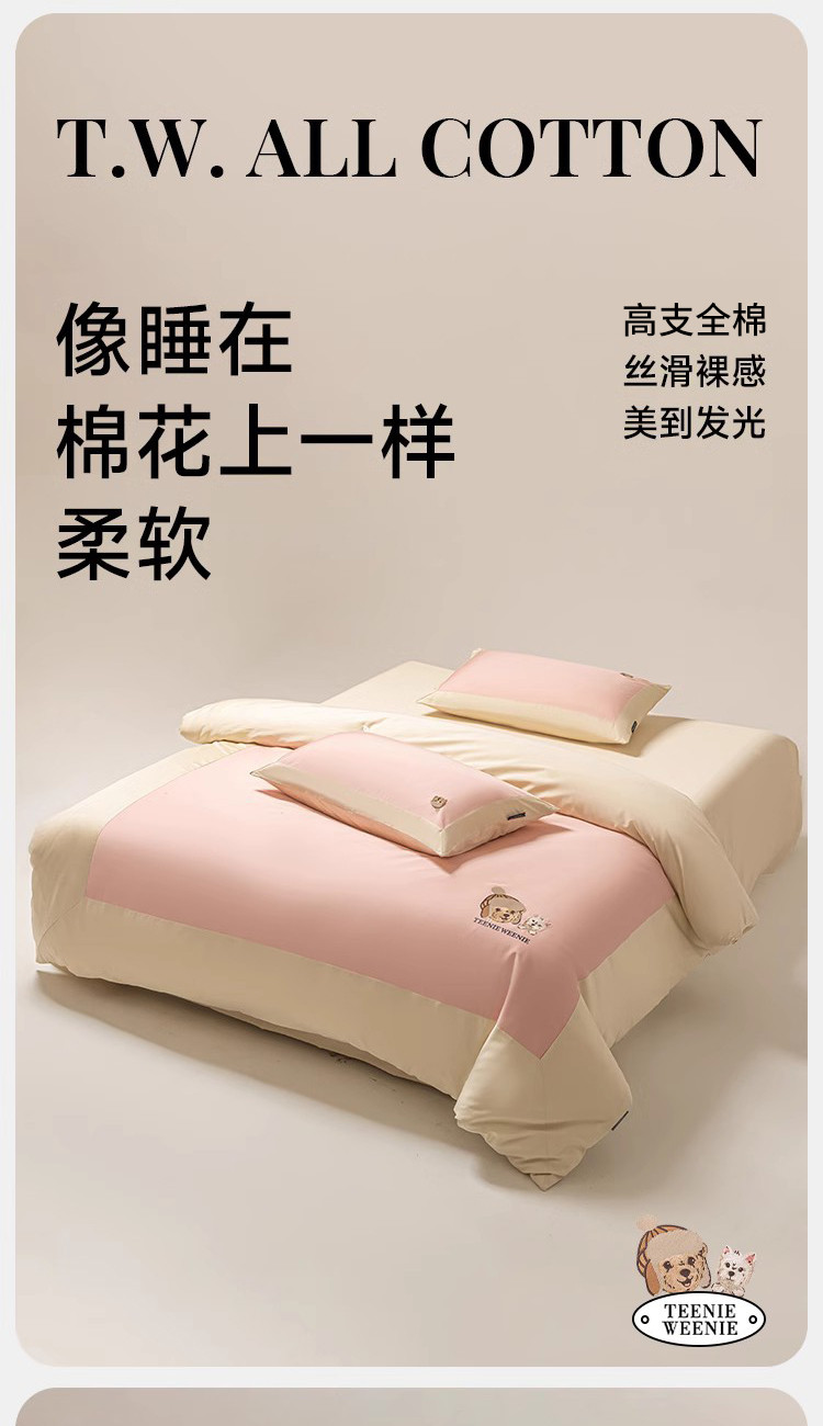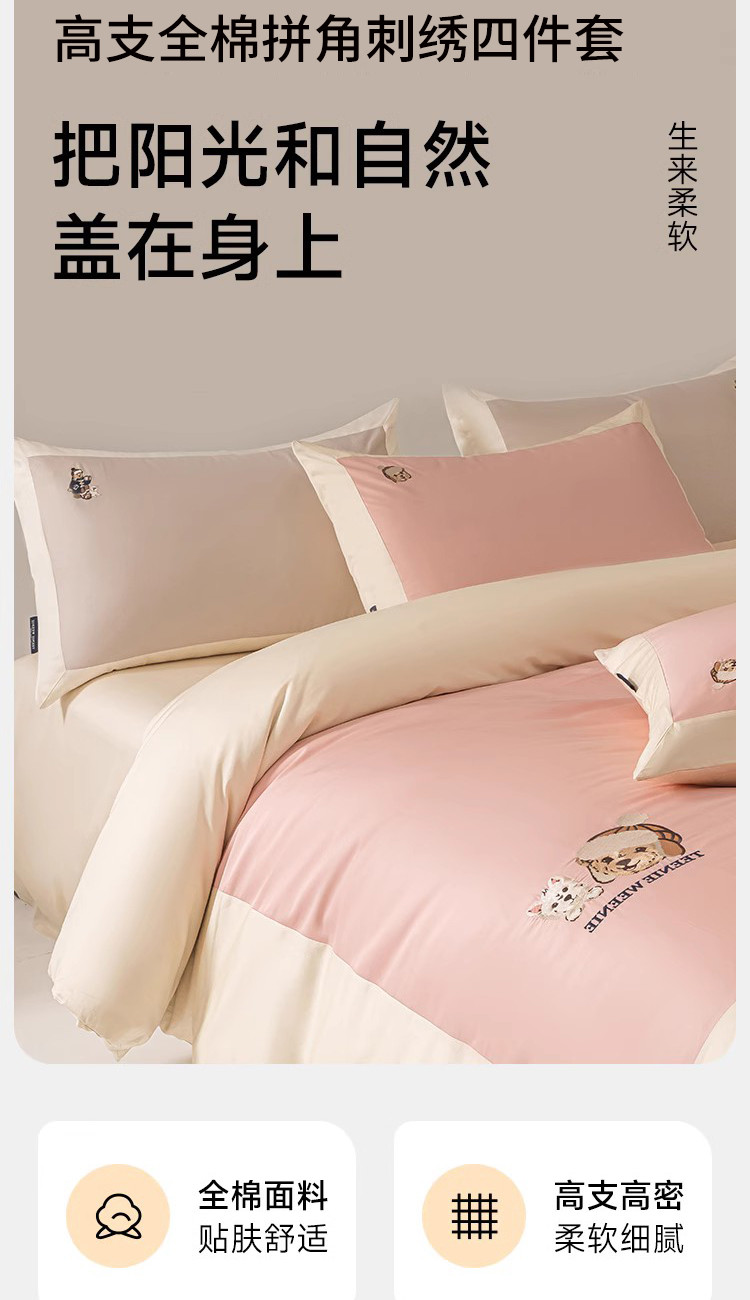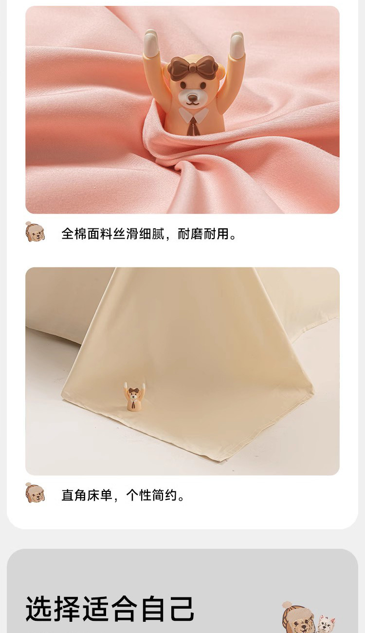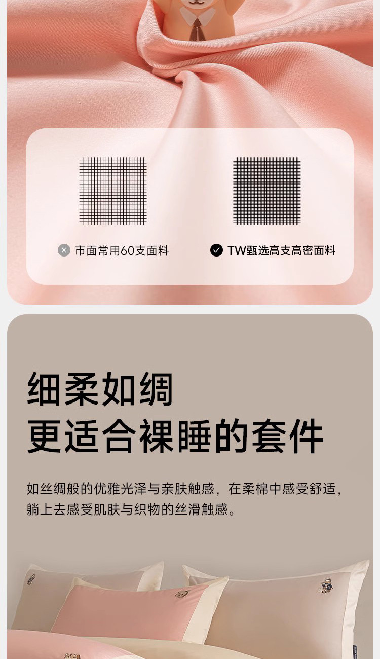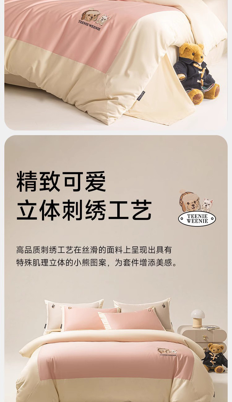 【轻奢贡缎】小熊100支长绒棉四件套春夏100棉被套床单送礼 221788