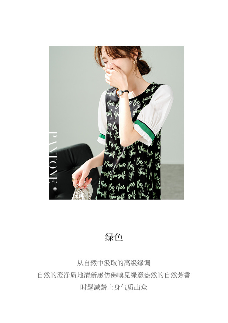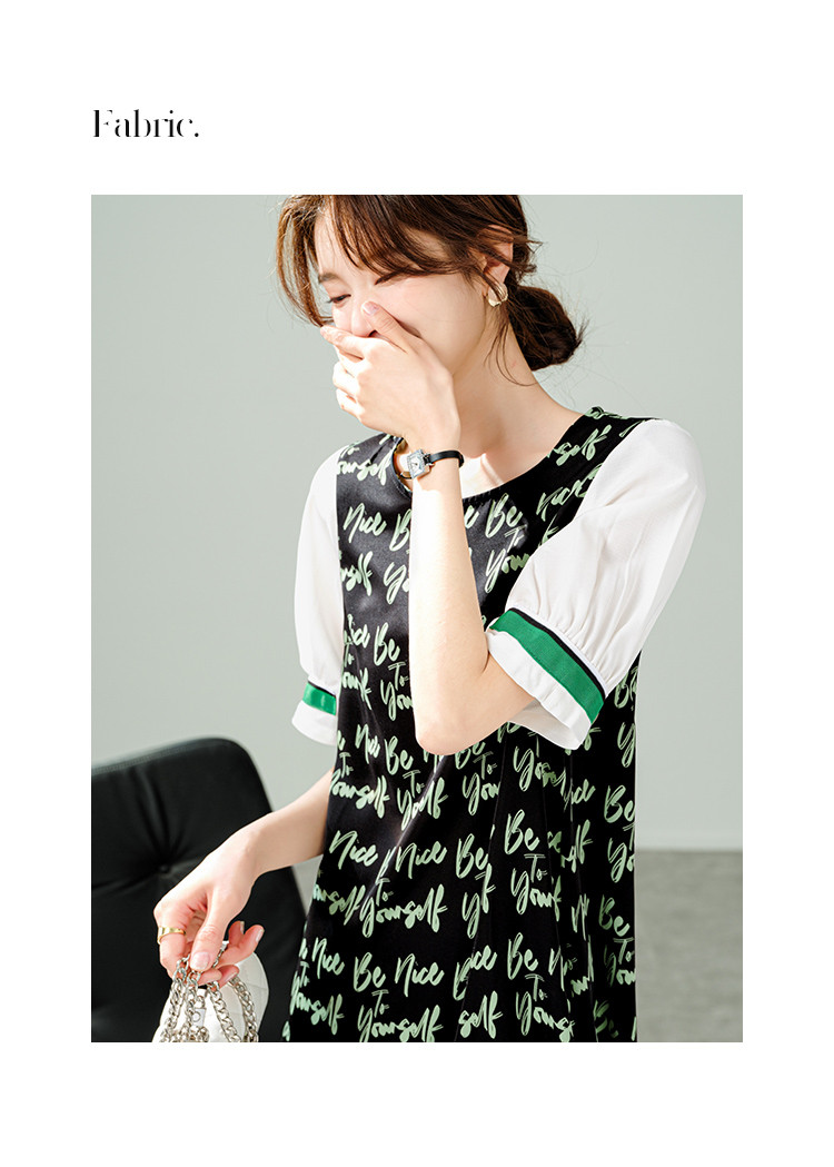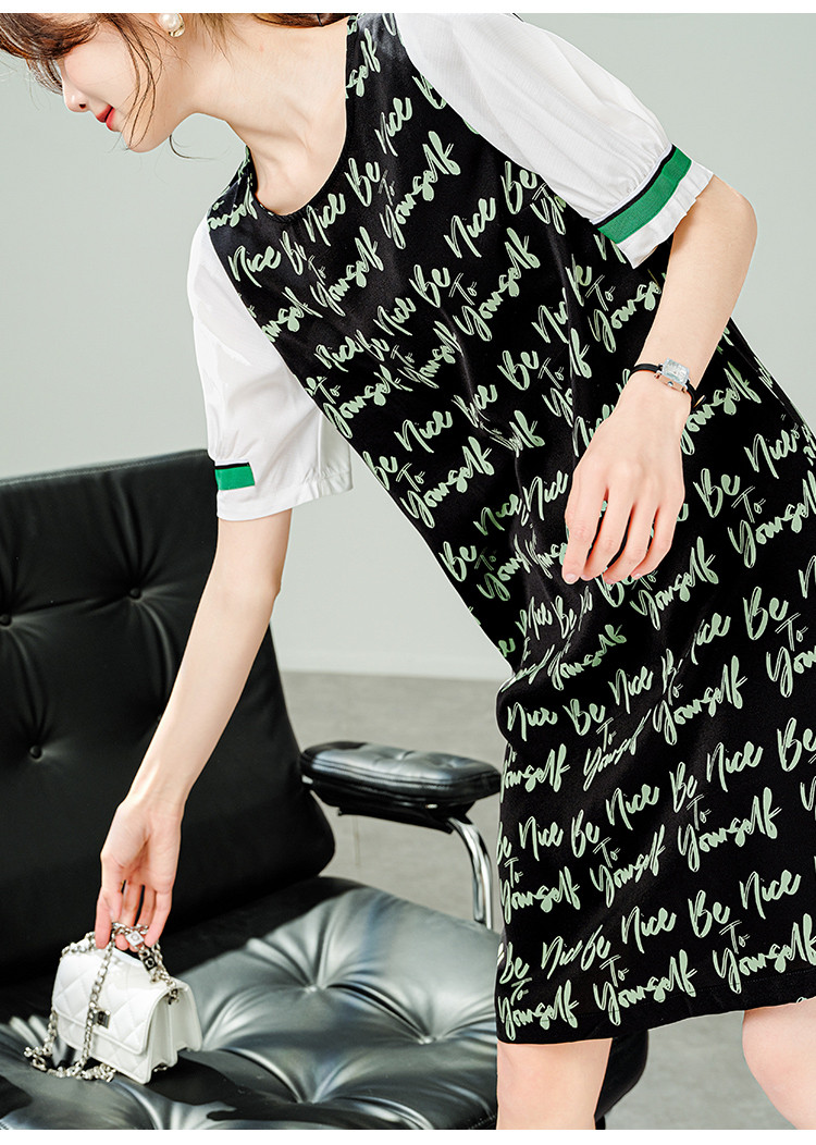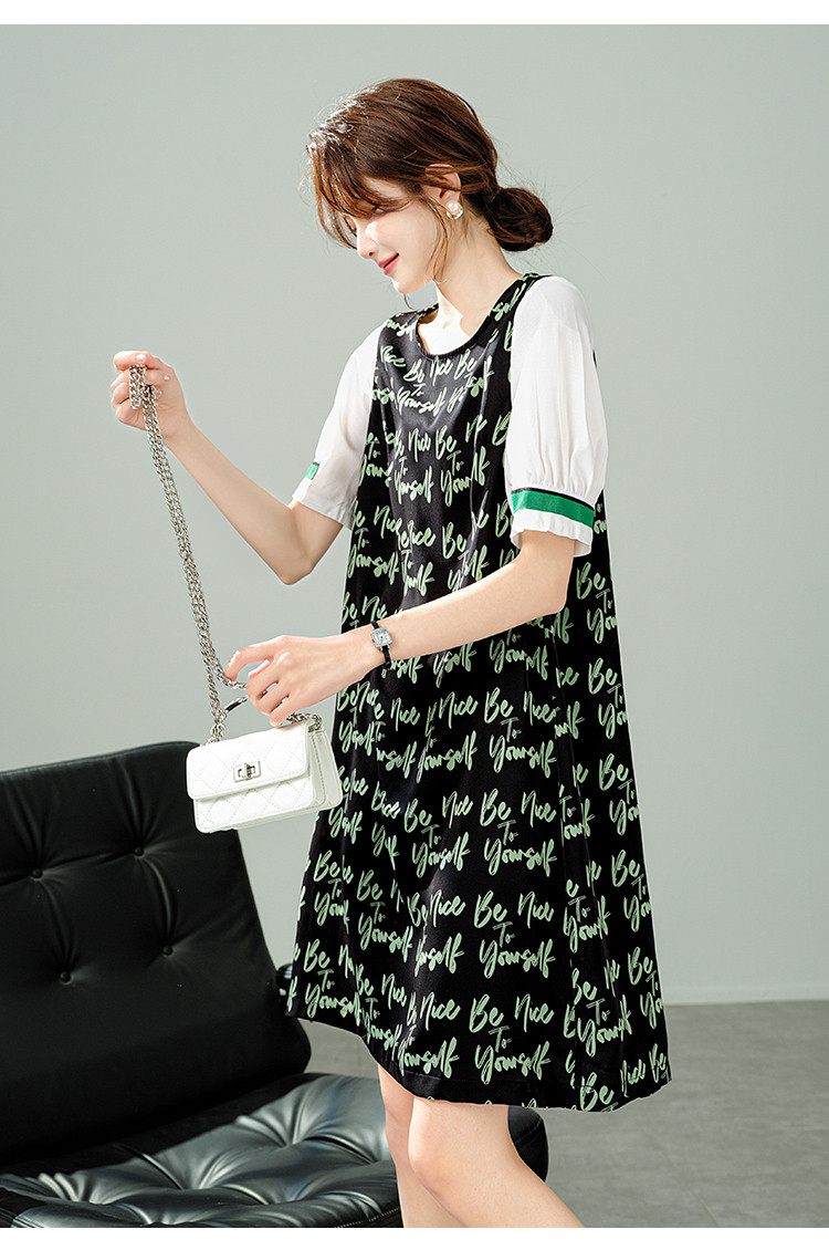 商品名称:2025夏季新款法式复古宽松显瘦高级感拼接小众字母印花连衣裙 421385